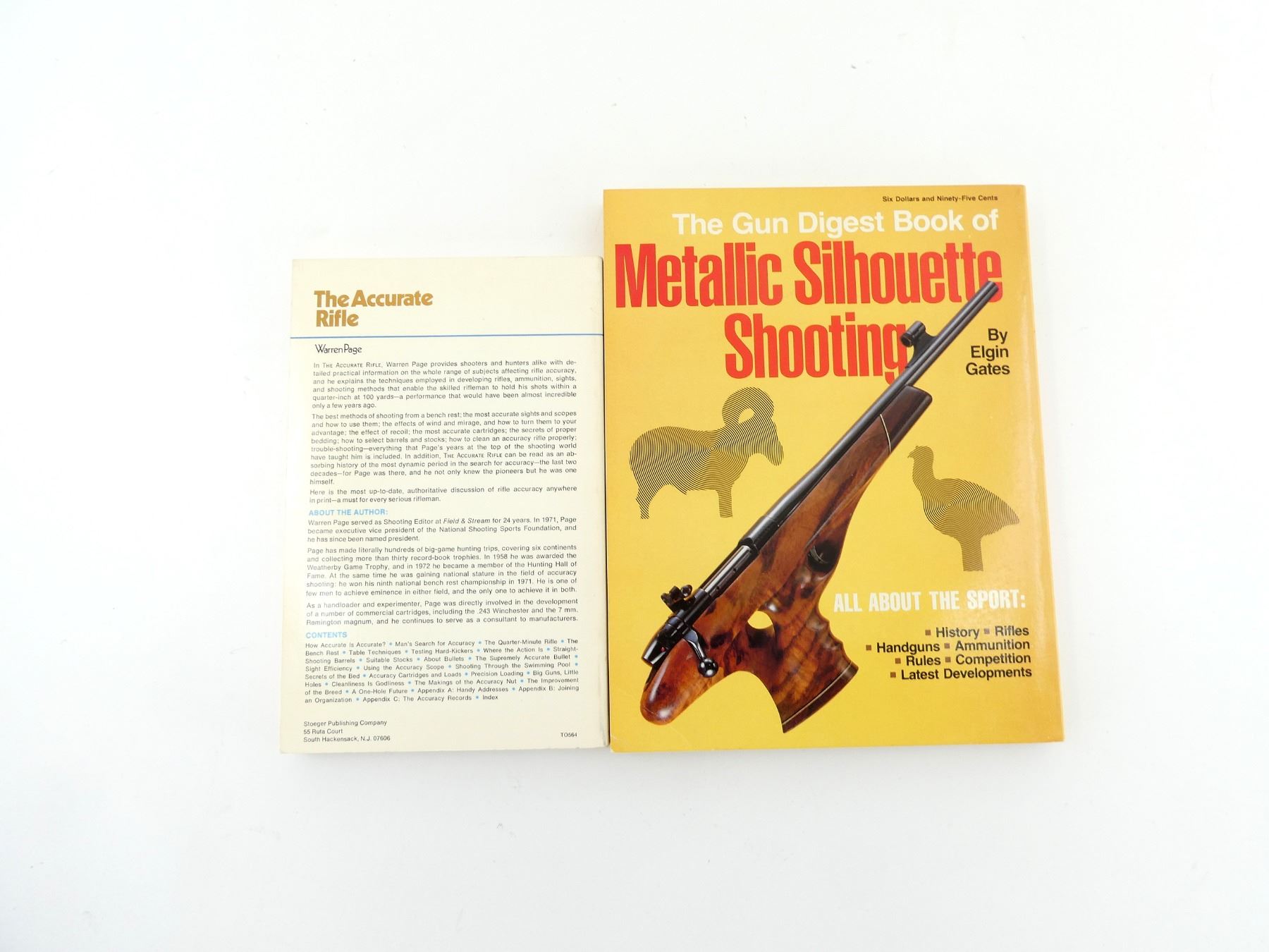 LOT INCLUDES; (1) "THE ACCURATE RIFLE", BY WARREN PAGE, SOFT COVER, ISBN: 0-88317-023-X & (1) "THE GUN DIGEST BOOK OF METALLIC SILHOUETTE SHOOTING", BY ELGIN GATES, SOFT COVER, ISBN: 0-695-81273-4. SEE PHOTOS.
