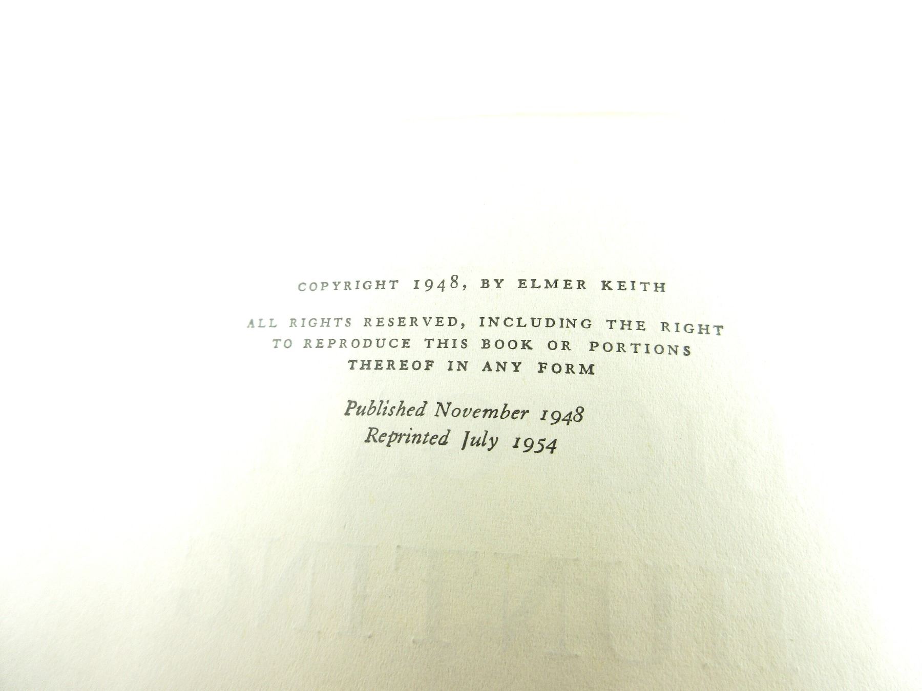 (1) BY ELMER KEITH, HARD COVER WITH DUST COVER, COPYRIGHT 1948. SEE PHOTOS.