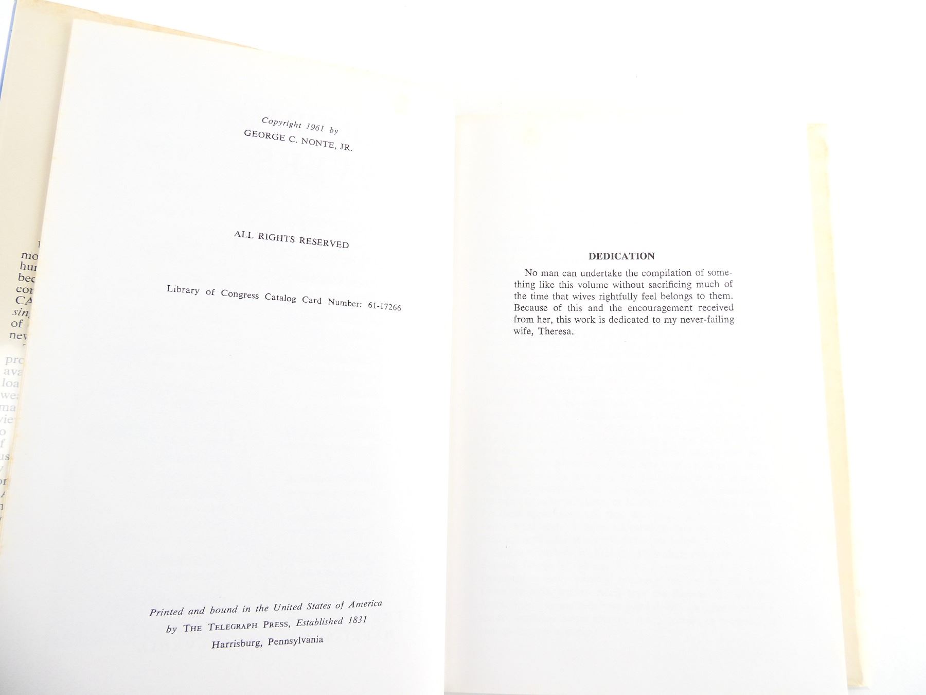 (1) BY GEORGE C. NONTE, JR., HARD COVER WITH DUST COVER, COPYRIGHT 1961. SEE PHOTOS.