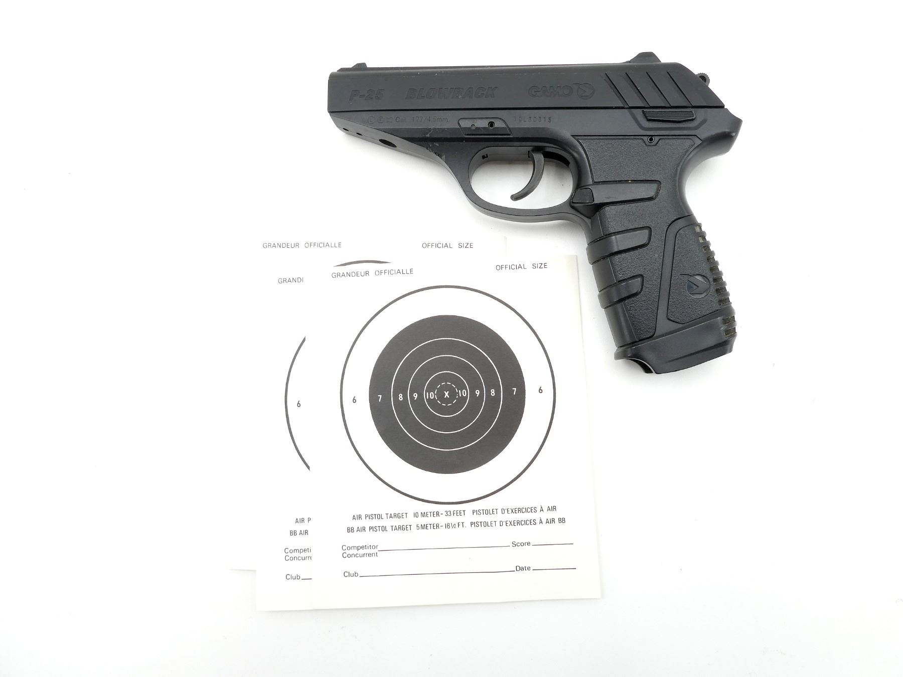 Lot 21015 GAMO P-25 BLOWBACK .177 CAL CO2 PISTOL AND TARGETS LOT