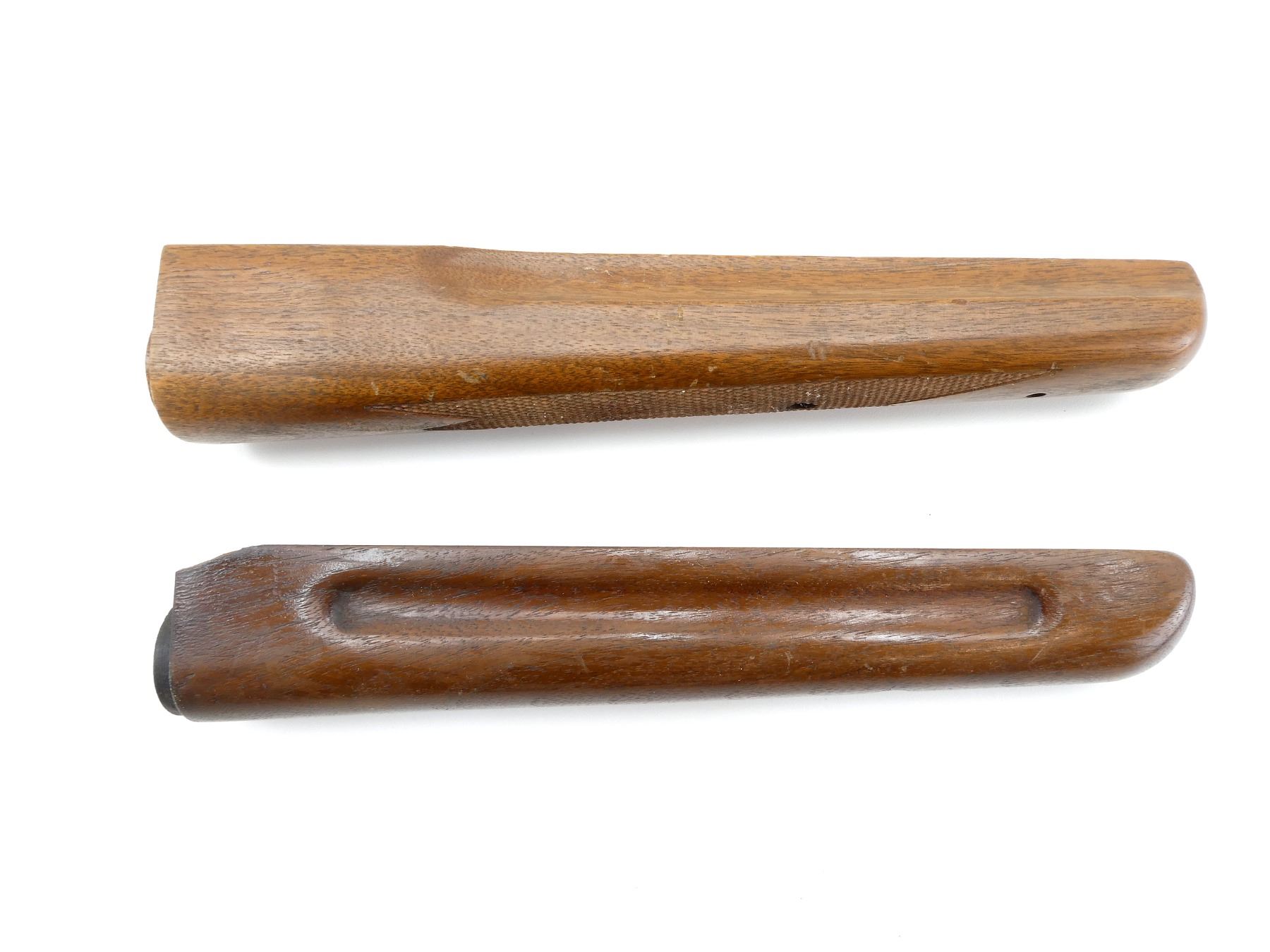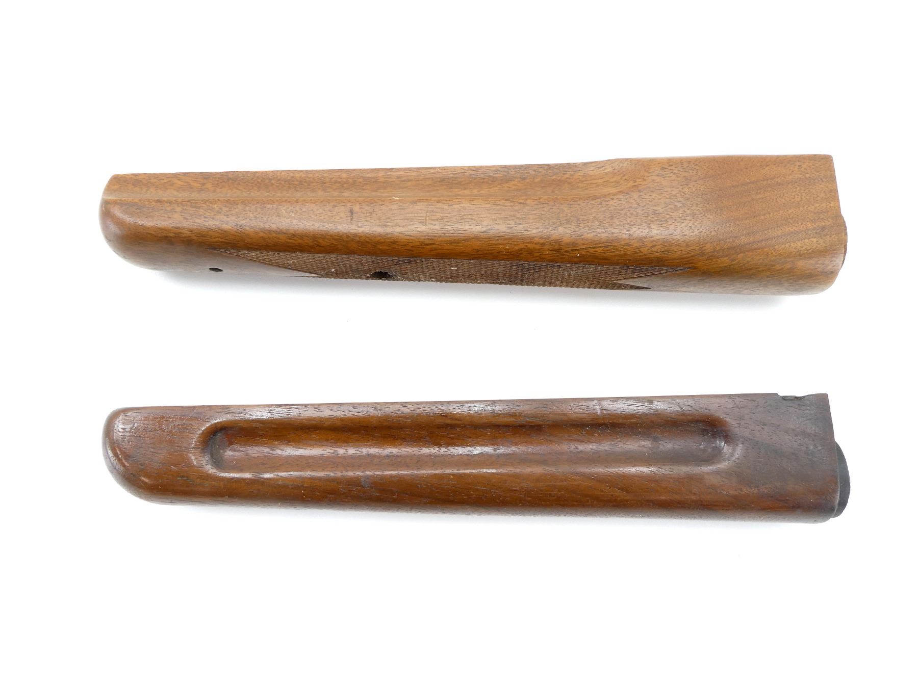 LOT INCLUDES; (1) WOODEN FOREND, SMOOTH, UNMARKED, OVERALL LENGTH APPROX. 10.25" & (1) WOODEN FOREND, CHECKERED, UNMARKED, OVERALL LENGTH APPROX. 10.75. MAY REQUIRE FITTING. SEE PHOTOS.