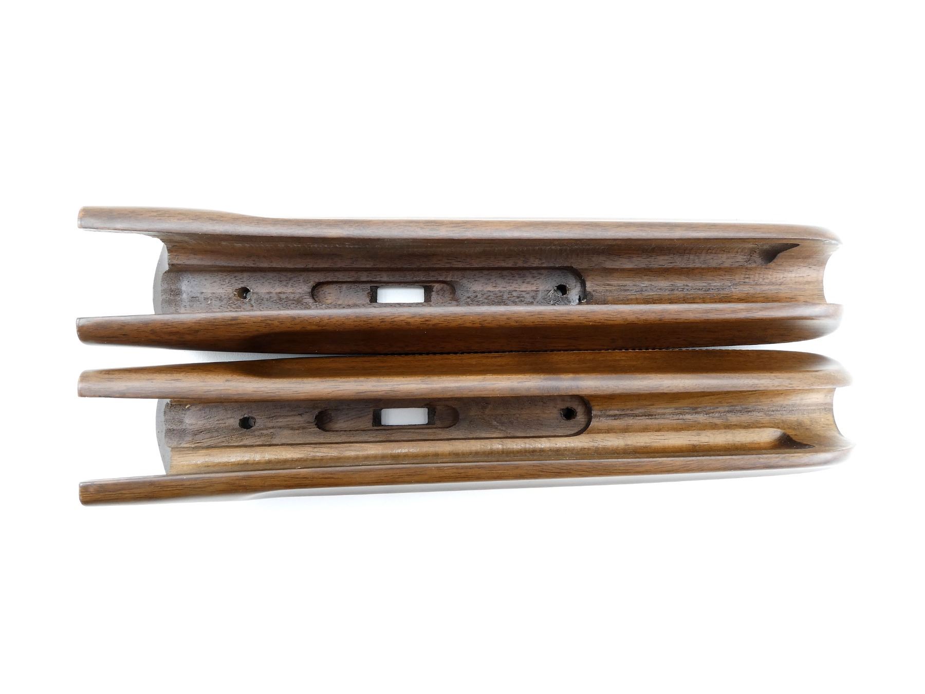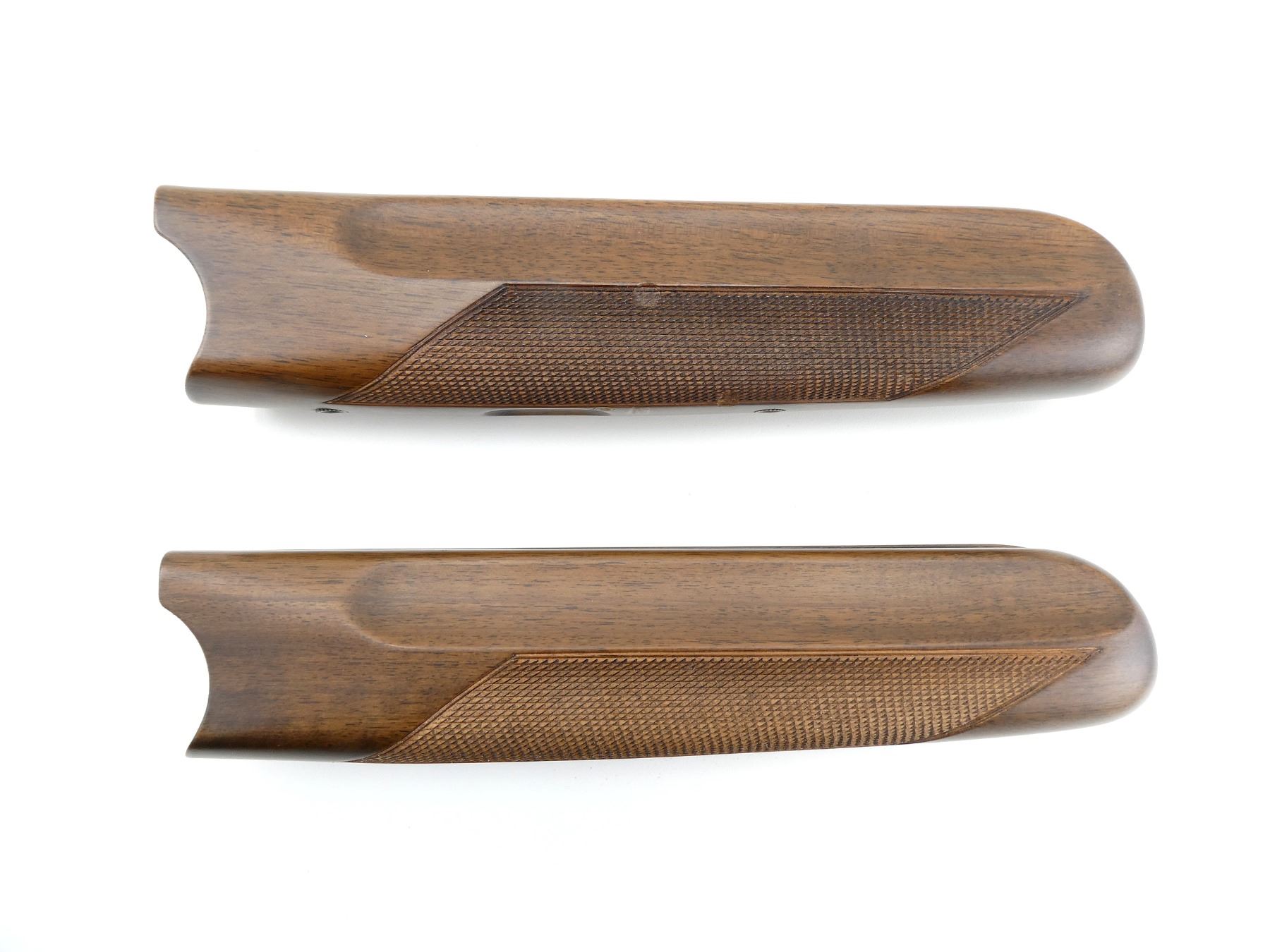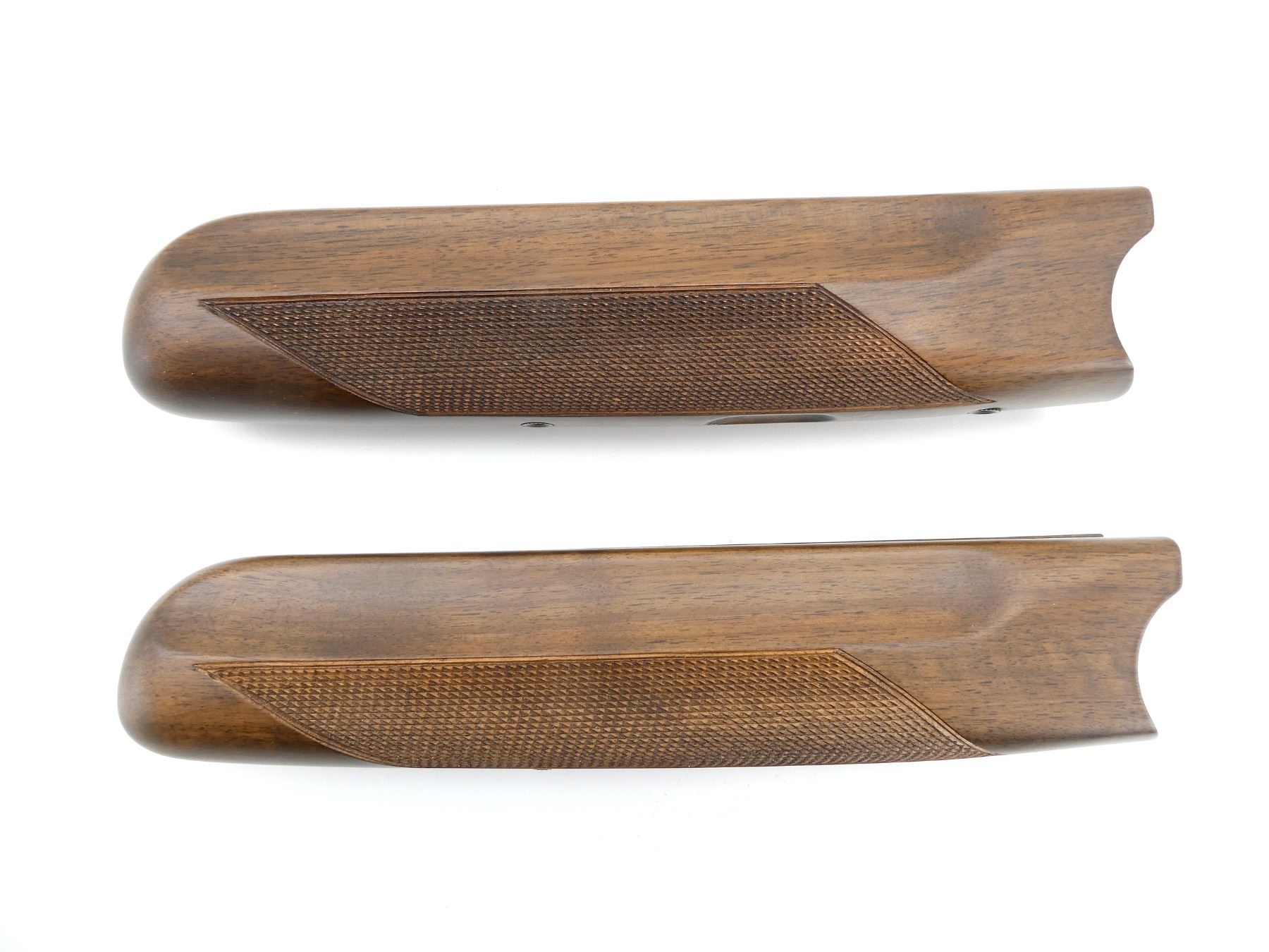 LOT INCLUDES; (2) WOODEN FORENDS, CHECKERED, UNMARKED, CONSIGNOR STATES "O&U", OVERALL LENGTH APPROX. 9.5". MAY REQUIRE FITTING. SEE PHOTOS.