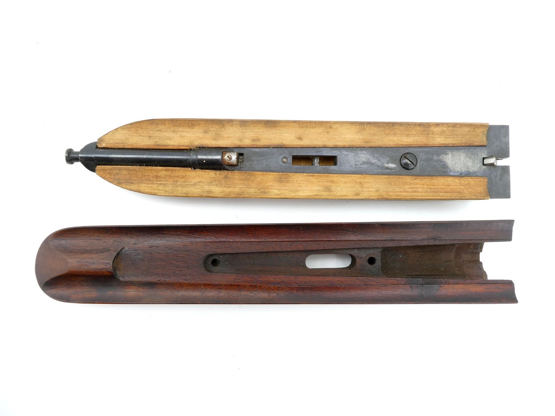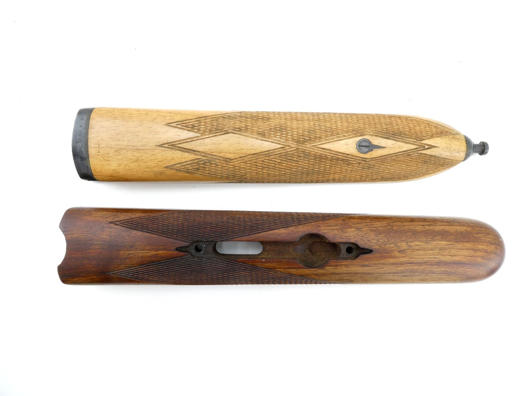 LOT INCLUDES; (1) WOODEN SXS FOREND, CHECKERED, MARKED "62243", OVERALL LENGTH APPROX. 9.25" & (1) WOODEN SXS FOREND, CHECKERED, UNMARKED, OVERALL LENGTH APPROX. 8.75". MAY REQUIRE FITTING. SEE PHOTOS.