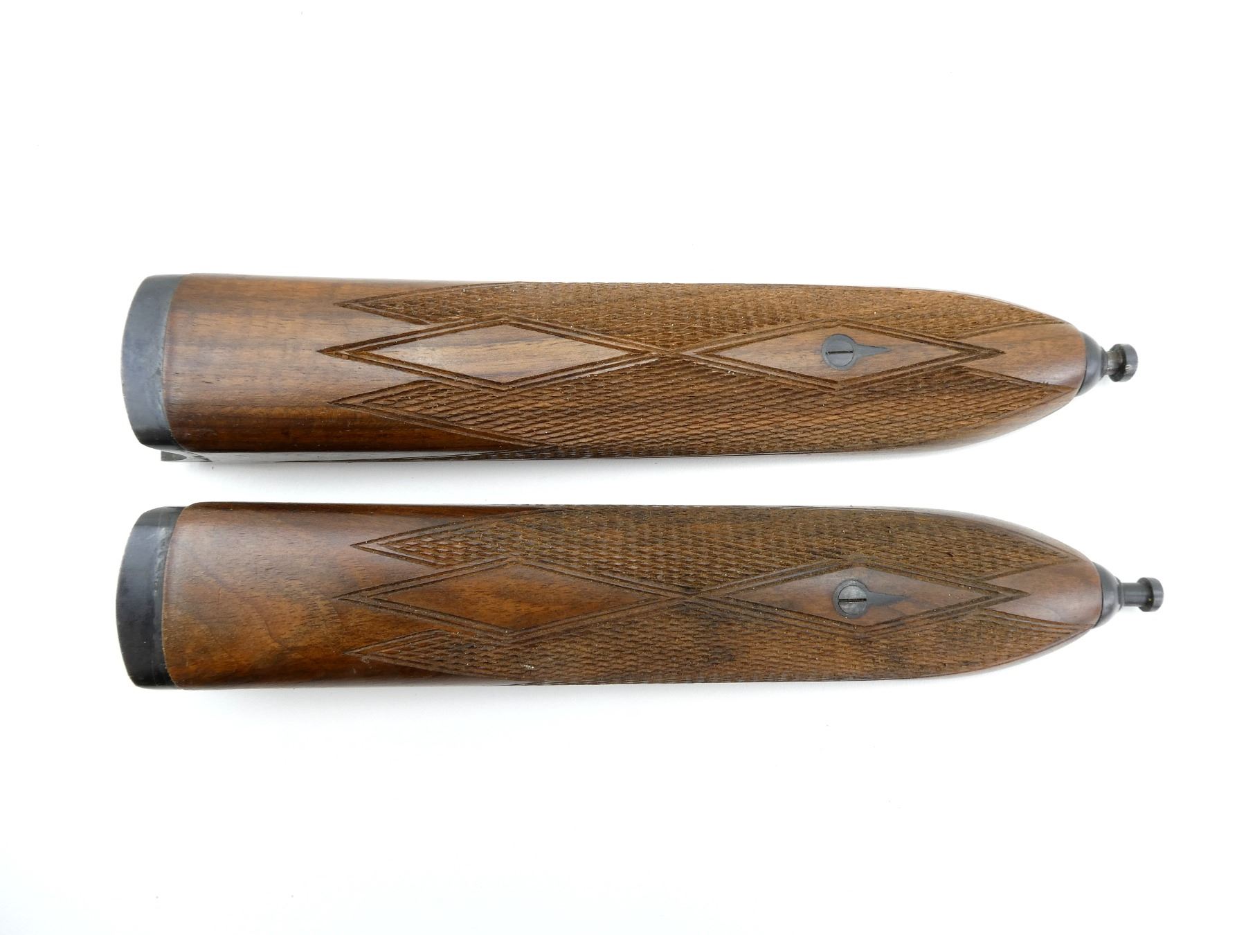 LOT INCLUDES; (2) WOODEN SXS FORENDS, CHECKERED, UNMARKED, OVERALL LENGTH APPROX. 8.75". MAY REQUIRE FITTING. SEE PHOTOS.