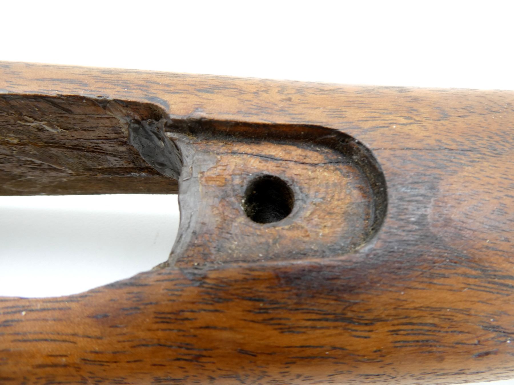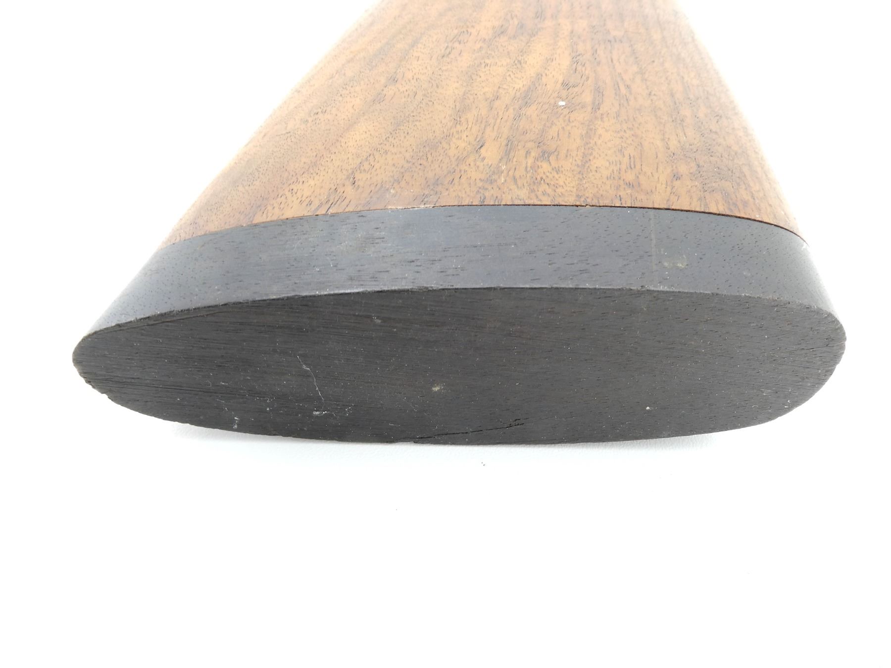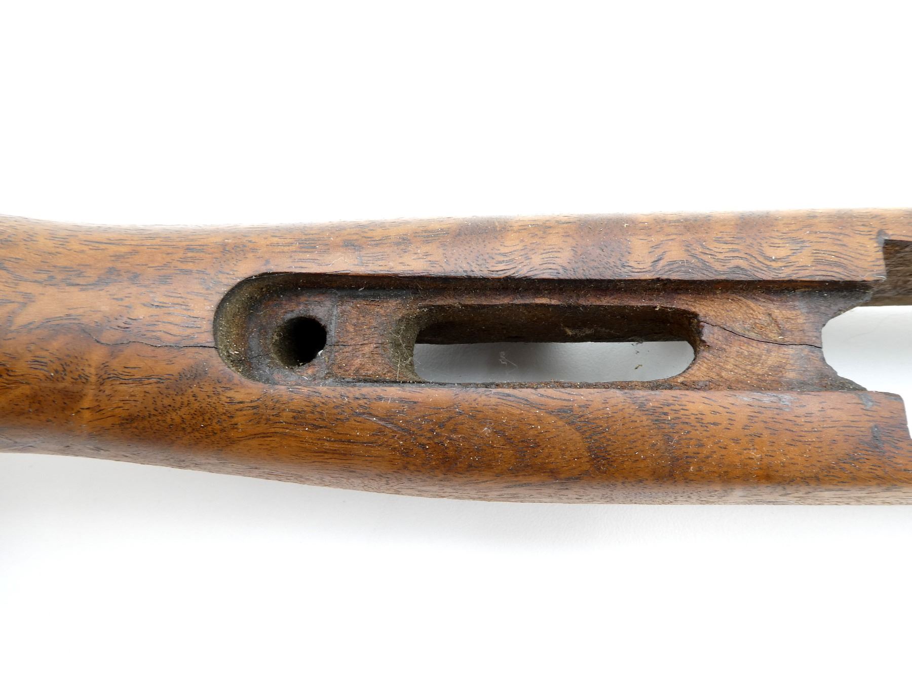 (1) WOODEN STOCK, SMOOTH, UNMARKED, OVERALL LENGTH APPROX. 31 1/8". MAY REQUIRE FITTING. SEE PHOTOS.