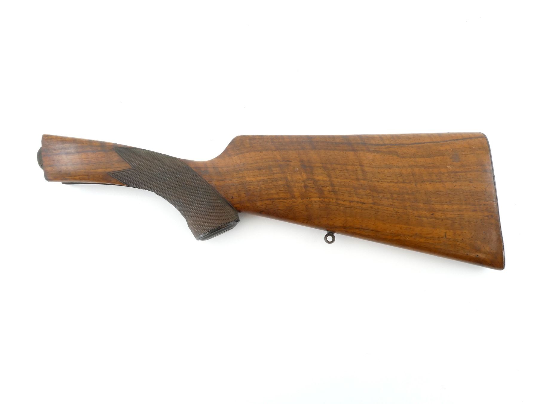 (1) WOODEN BUTT STOCK, CHECKERED, UNMARKED, OVERALL LENGTH APPROX. 16 1/8". MAY REQUIRE FITTING. SEE PHOTOS.