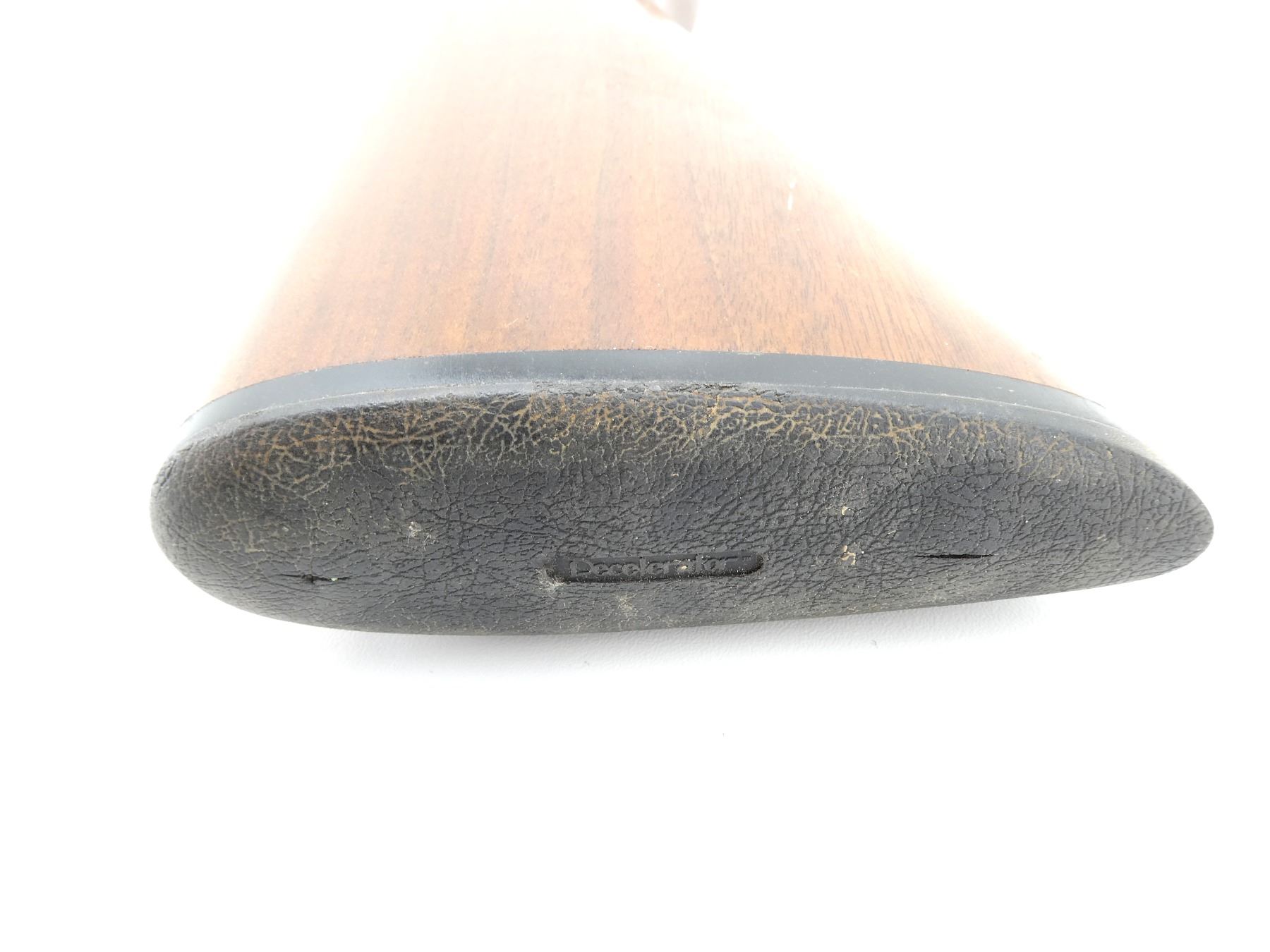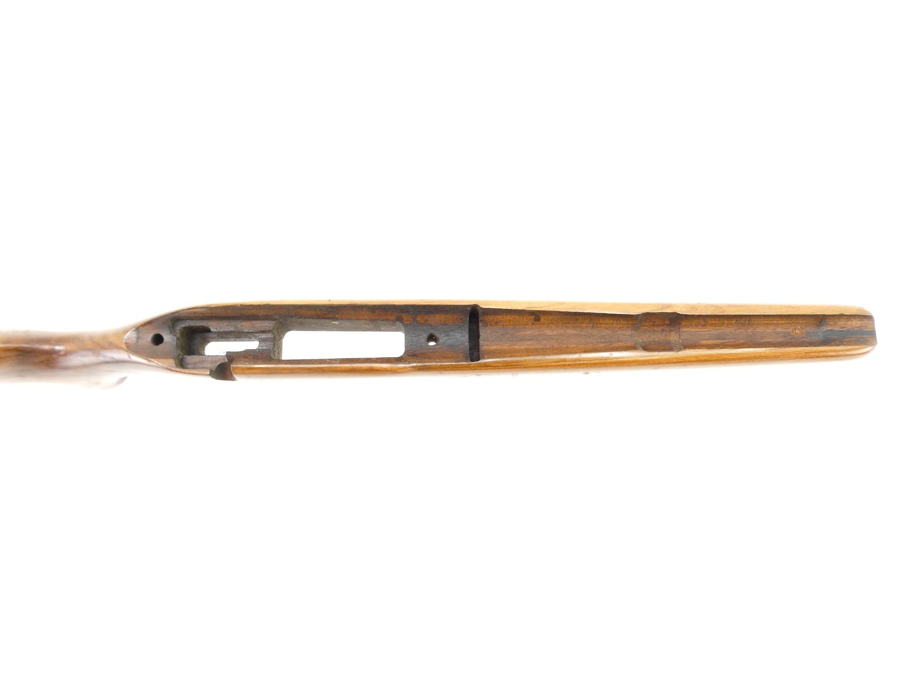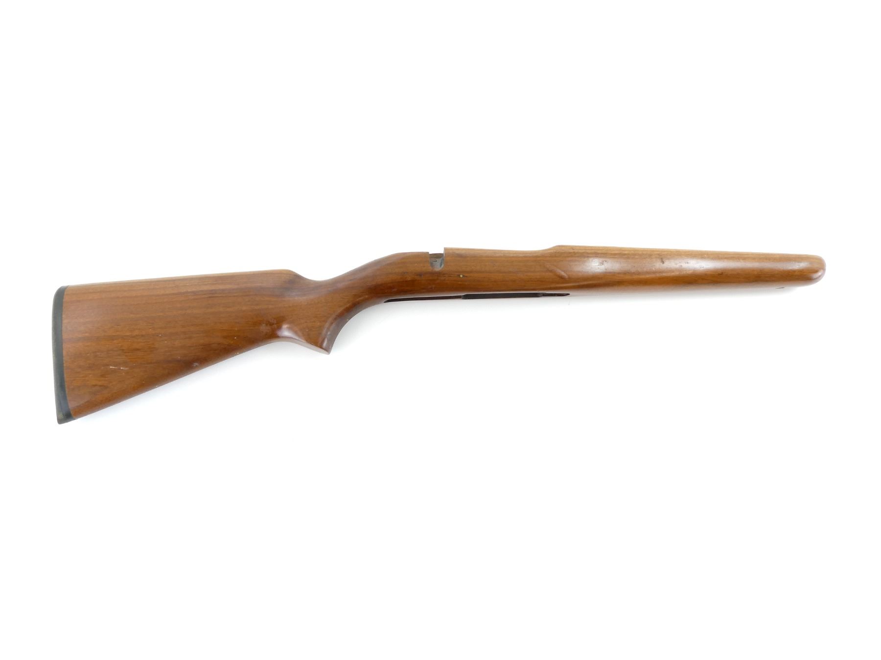 (1) WOODEN STOCK, SMOOTH, UNMARKED, WITH DECELERATOR RECOIL PAD, OVERALL LENGTH APPROX. 29". MAY REQUIRE FITTING. SEE PHOTOS.