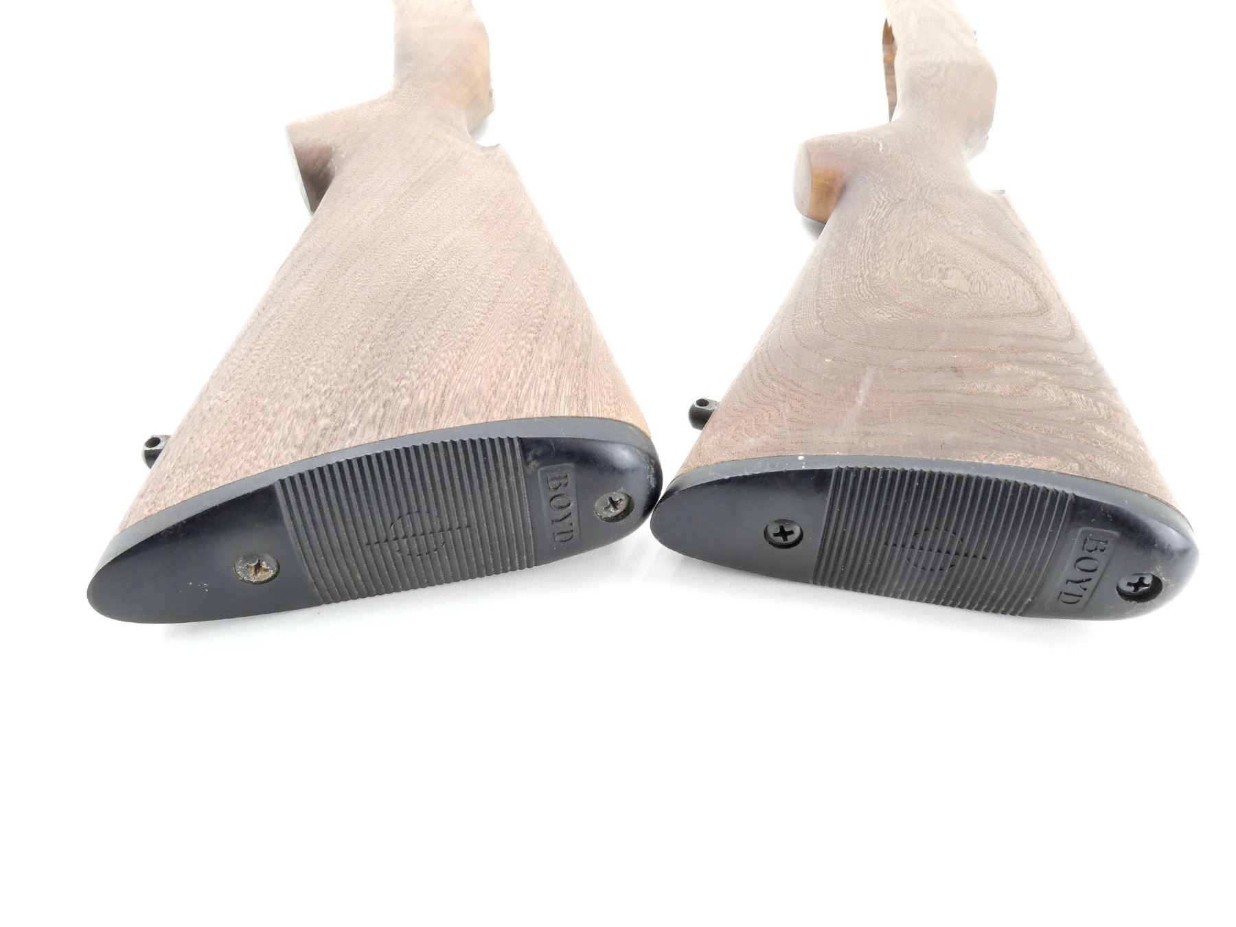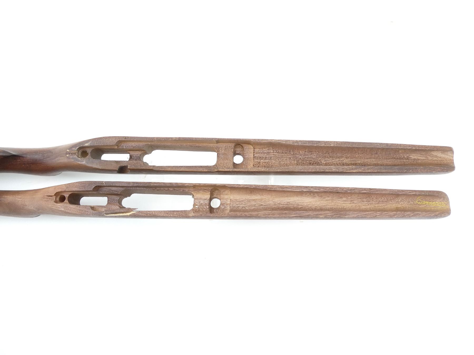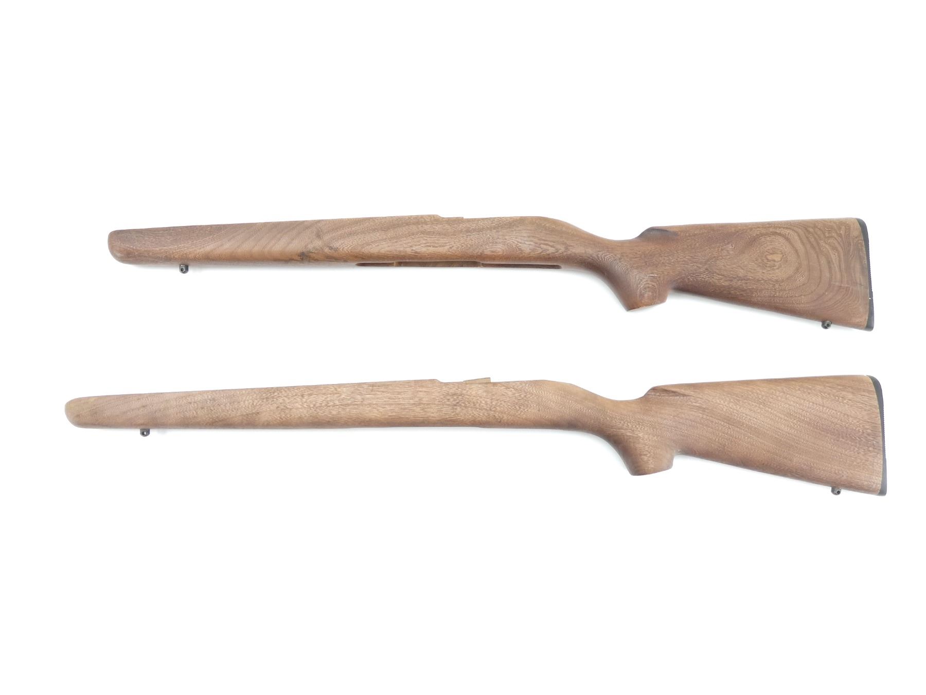 LOT INCLUDES; (2) WOODEN STOCKS, SMOOTH, UNMARKED, REQUIRES FINISHING, MAY HAVE SMALL CRACKS & CHIPS, OVERALL LENGTH APPROX. 31.75" & 32.75". MAY REQUIRE FITTING. SEE PHOTOS.
