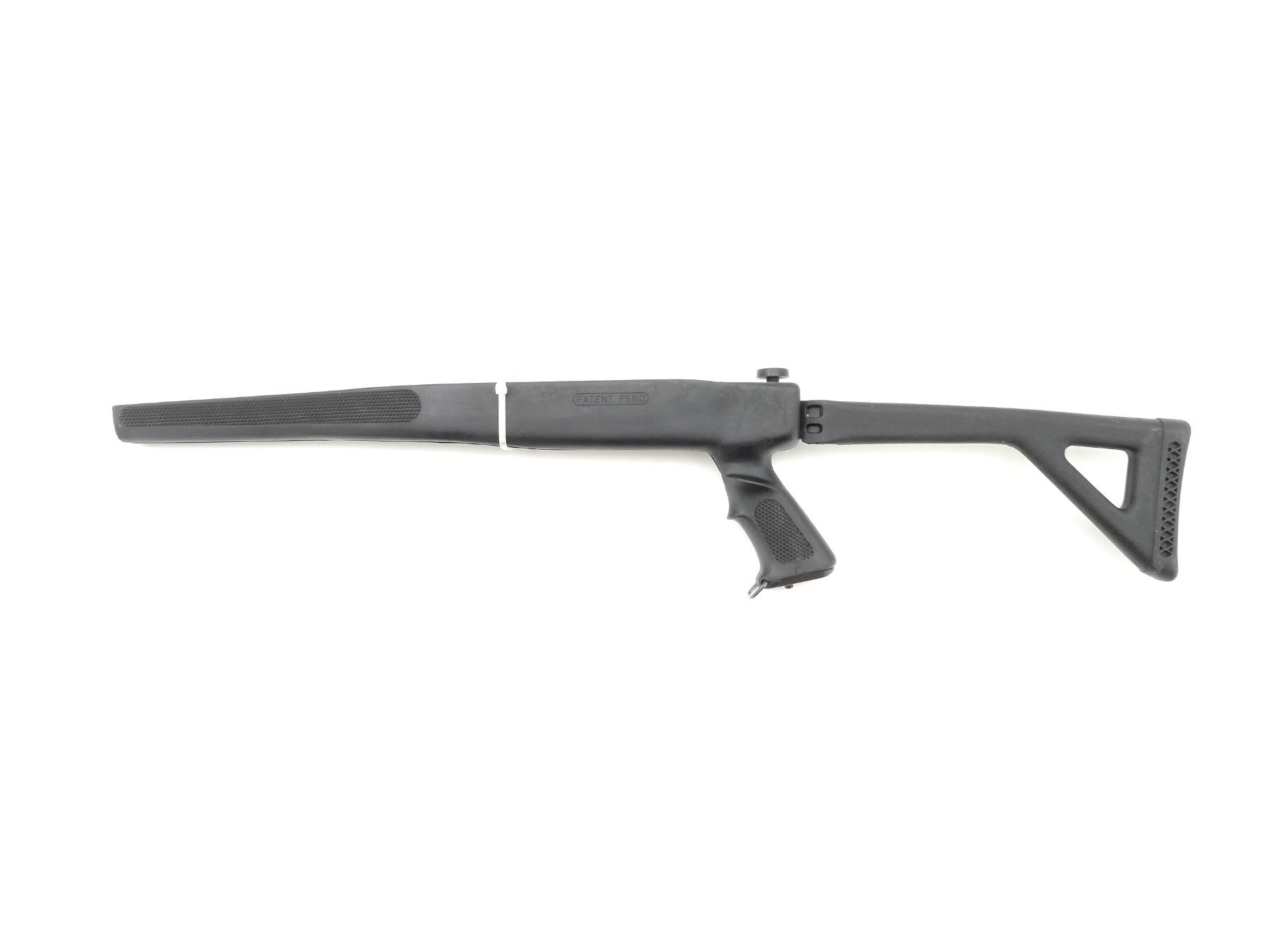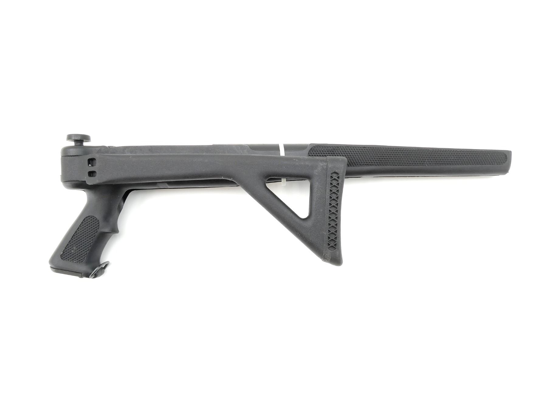 (1) BLACK SYNTHETIC FOLDING STOCK, WITH HAND GUARD, PISTOL GRIP, SLING SWIVEL, ETC., VARIOUS MARKINGS, OVERALL LENGTH APPROX. 31". MAY REQUIRE FITTING. SEE PHOTOS.