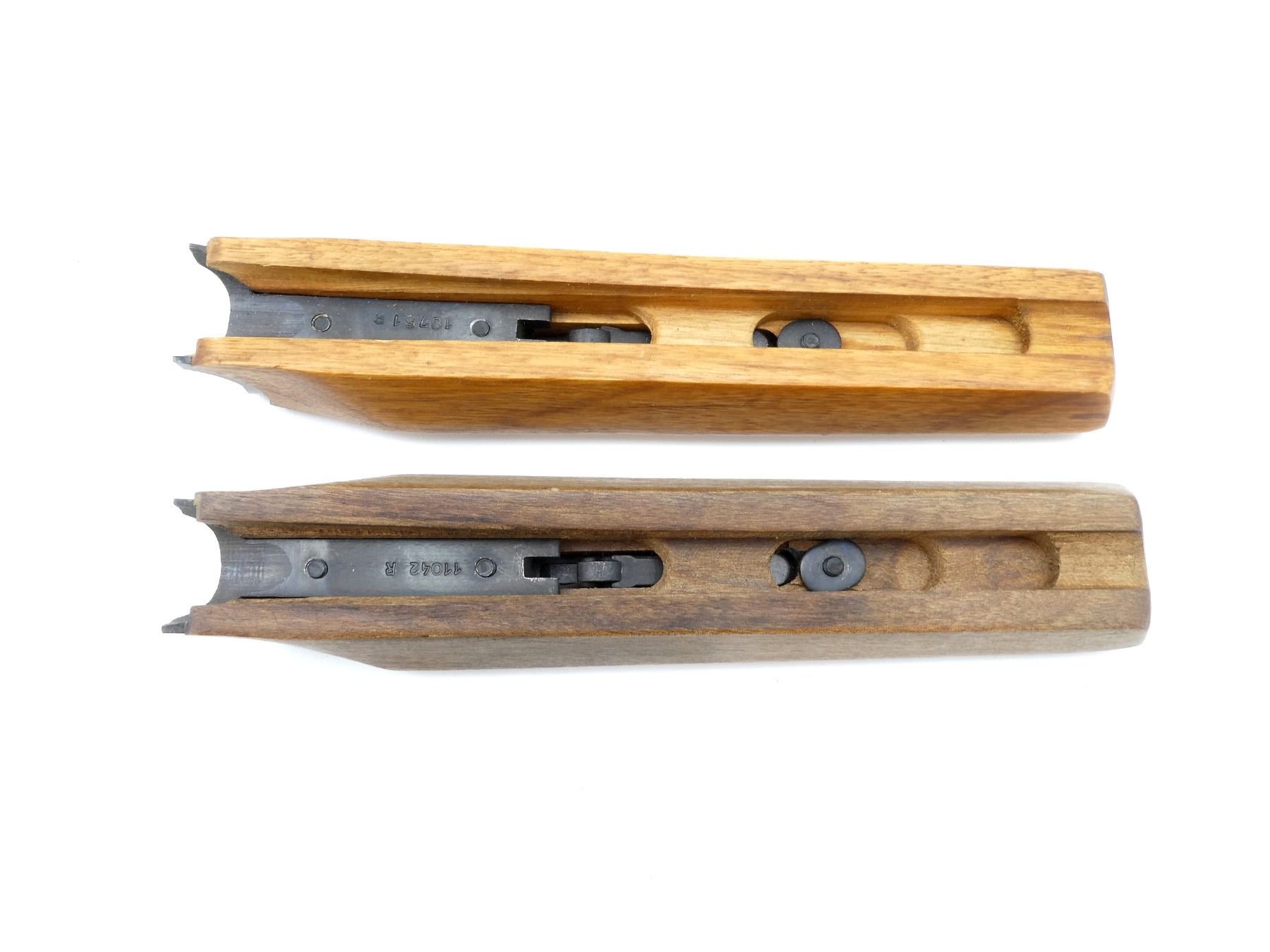 LOT INCLUDES; (2) WOODEN FORENDS, SMOOTH, MARKED: "11042R" & "10761R", MAY HAVE SMALL CRACKS & CHIPS, OVERALL LENGTH APPROX. 9.25". MAY REQUIRE FITTING. SEE PHOTOS.