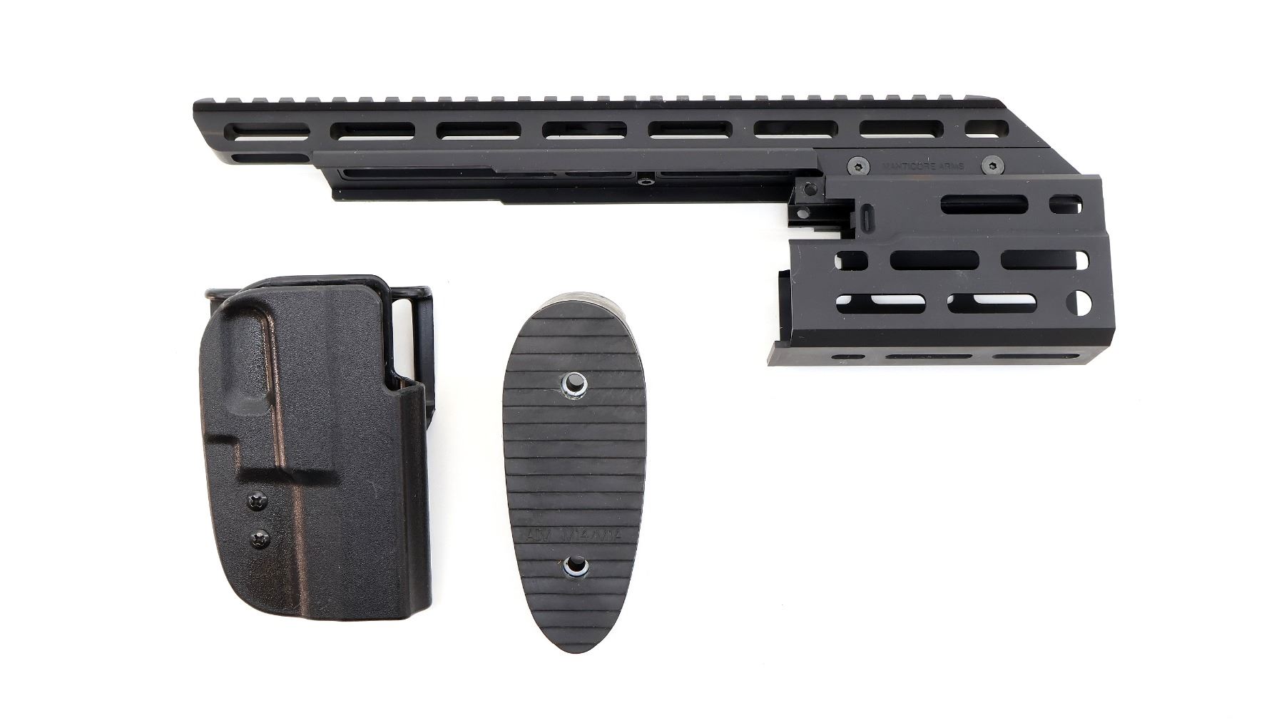 Lot 22591 MANTICORE ARMS X95 SBR CANTILEVER FOREND / M14 BUTT PAD / HOLSTER LOT