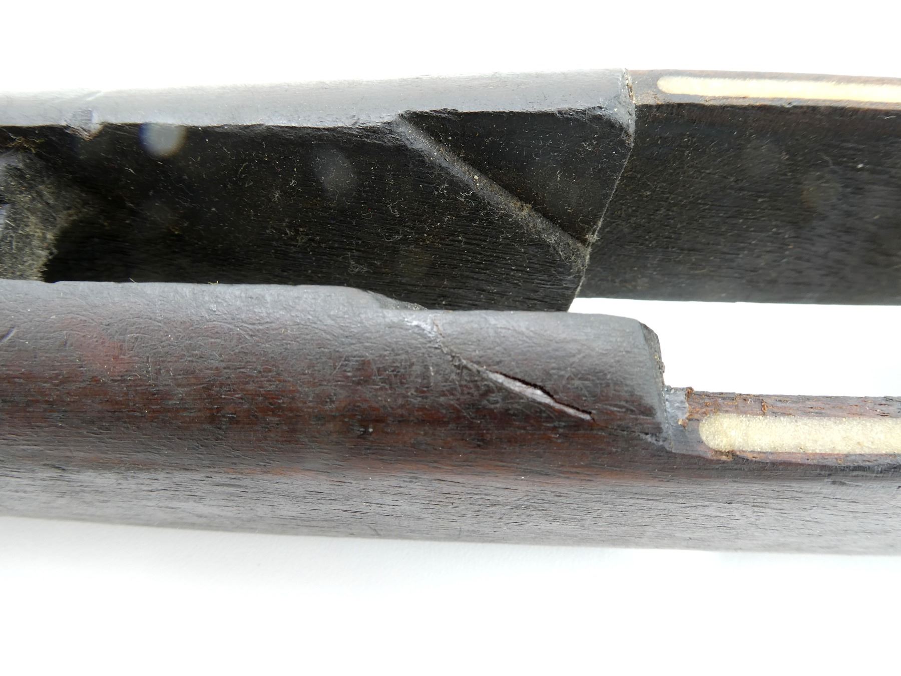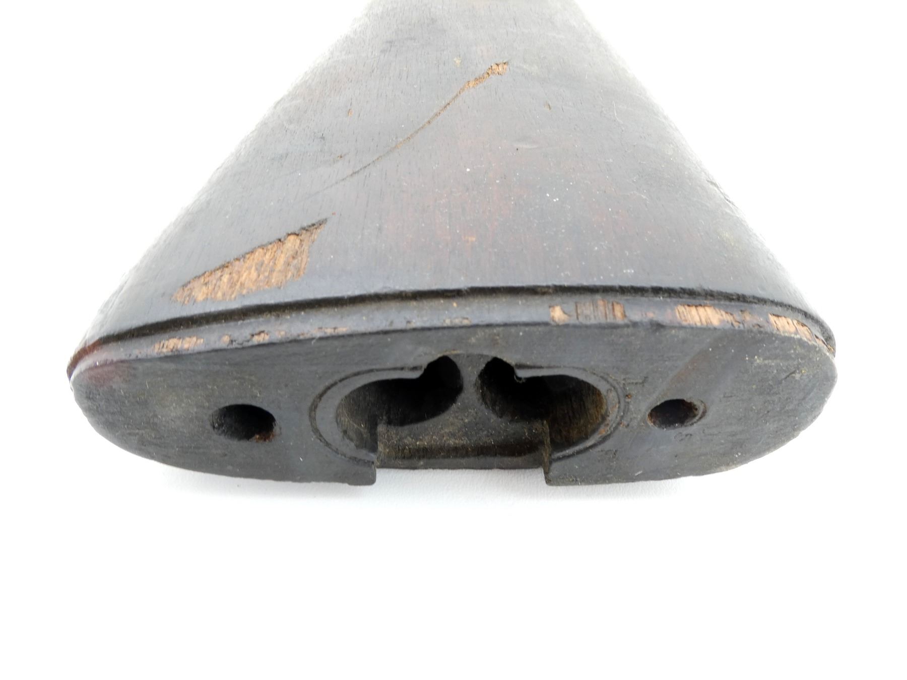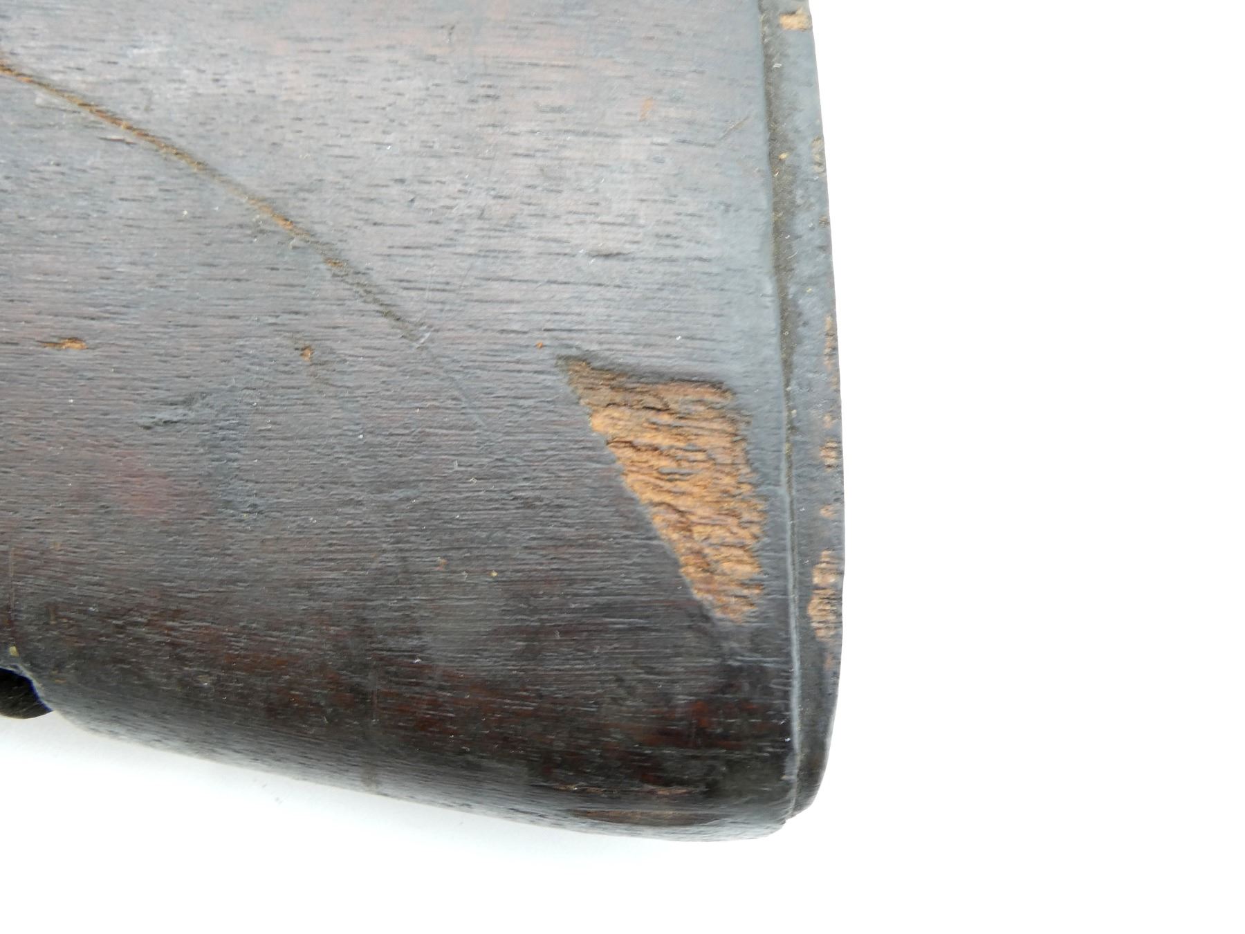 (1) WOODEN CONSTRUCTION, SMOOTH, MARKED "P", WITH FRONT SLING SWIVEL, SHOWS WEAR / TEAR, MAY HAVE SMALL CRACKS / CHIPS, MISSING BUTT PLATE, OVERALL LENGTH APPROX. 29 7/8". MAY REQUIRE FITTING. SEE PHOTOS.