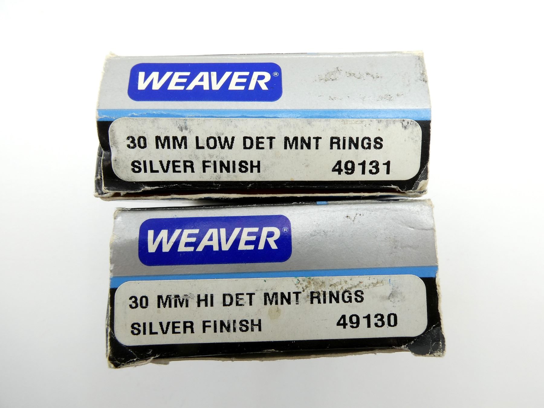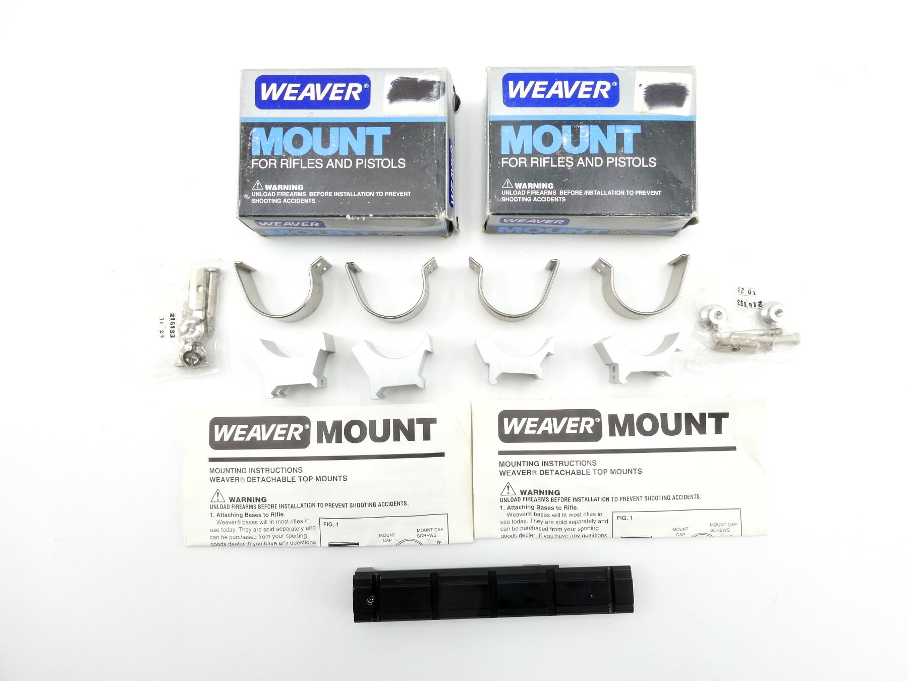 LOT INCLUDES; (1) LEE ENFIELD NO. 1 MK III NO GUNSMITHING MOUNT, SHOWS LIGHT WEAR & TEAR / USE MARKINGS, (1) SET OF WEAVER RINGS, 30MM DIAMETER, HIGH, SILVER, PRODUCT #: 49130, APPEARS NEW OLD STOCK, IN ORIGINAL PACKAGING & (1) SET OF WEAVER RINGS, 30MM DIAMETER, HIGH, SILVER, PRODUCT #: 49131, APPEARS NEW OLD STOCK, IN ORIGINAL PACKAGING. MAY REQUIRE FITTING. SEE PHOTOS.