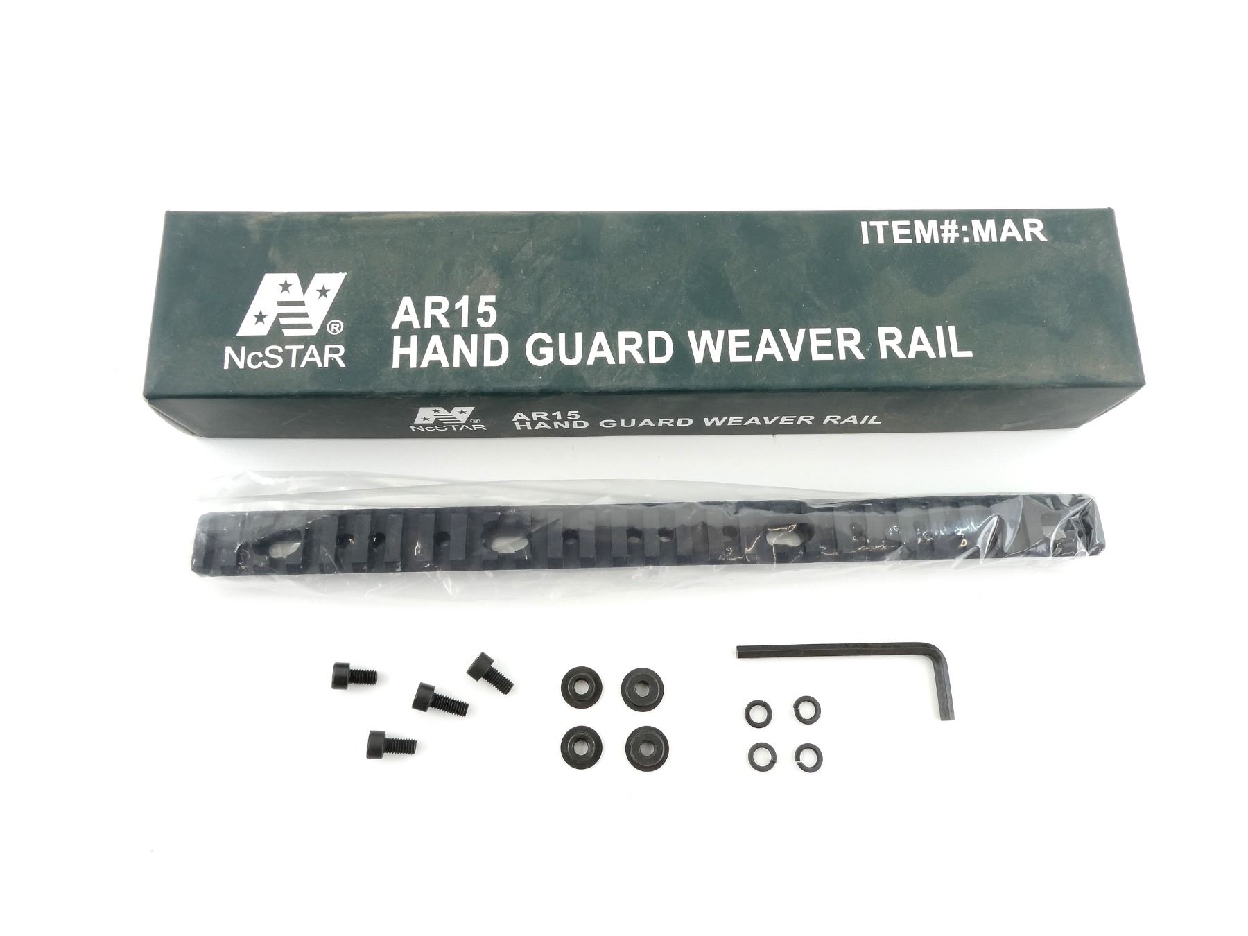 (1) AR15 HAND GUARD WEAVER RAIL, ITEM #: MAR, NEW OLD STOCK, SEALED IN ORIGINAL PACKAGING. MAY REQUIRE FITTING. SEE PHOTOS.