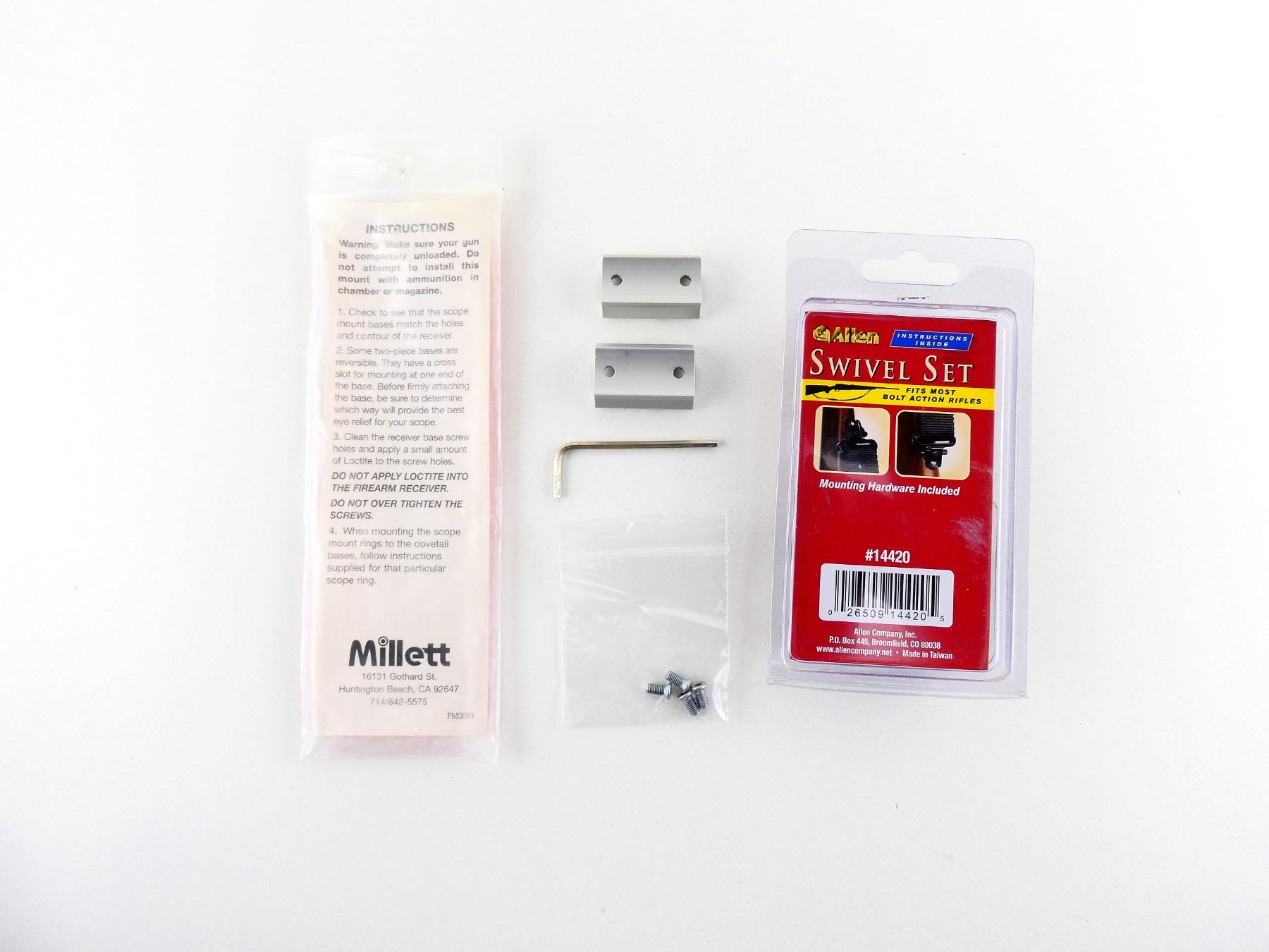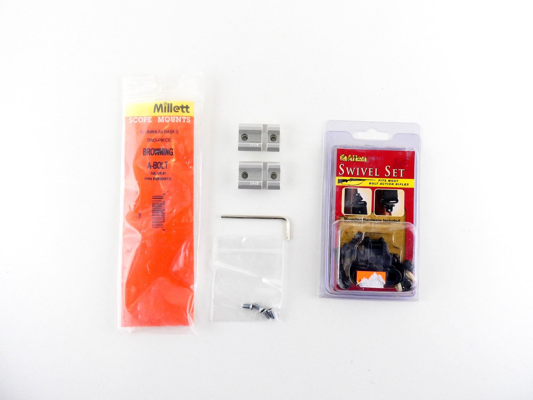 MILLET BROWNING A-BOLT SCOPE BASES AND ALLEN BOLT ACTION RIFLE SLING SWIVELS LOT