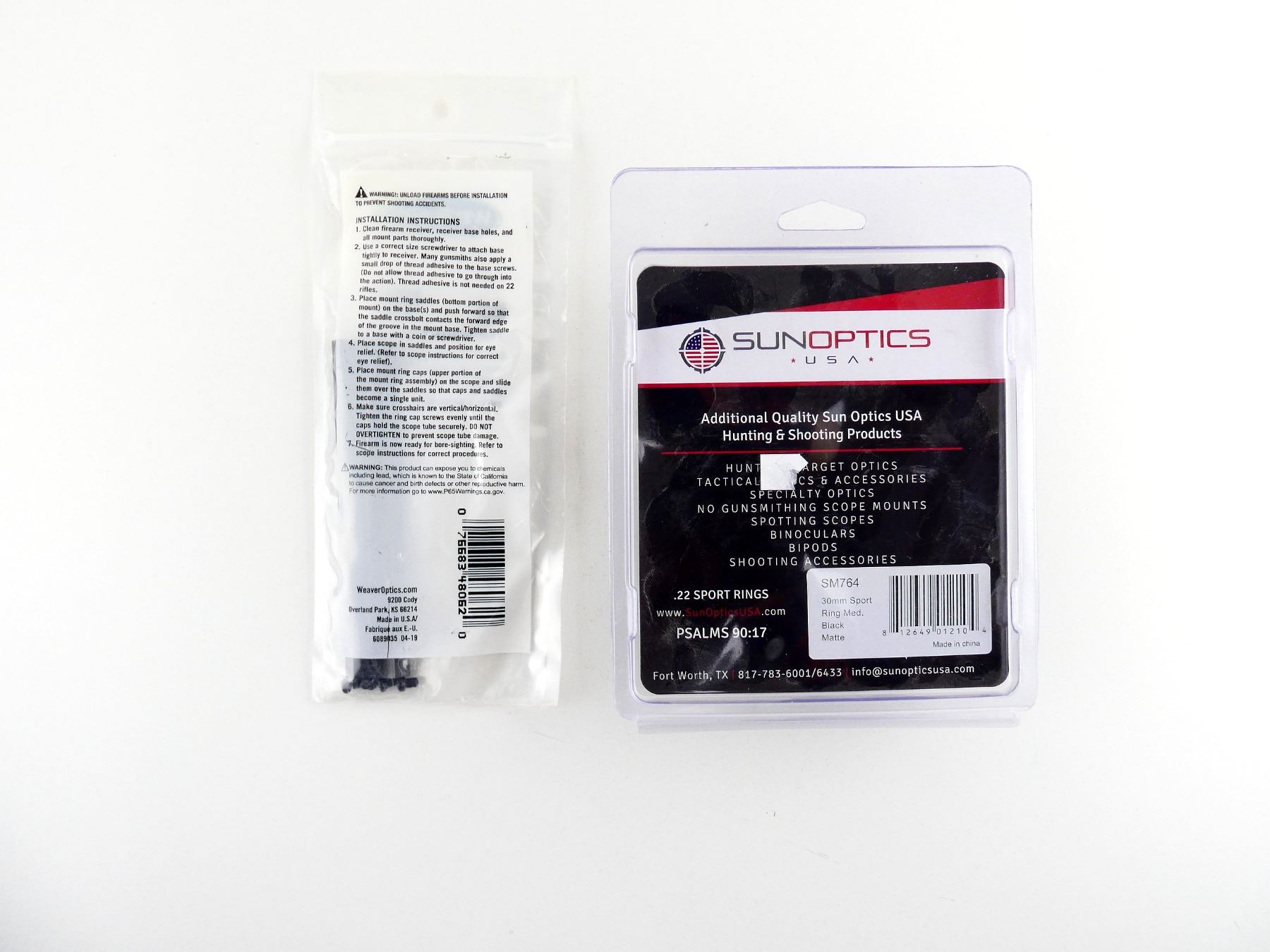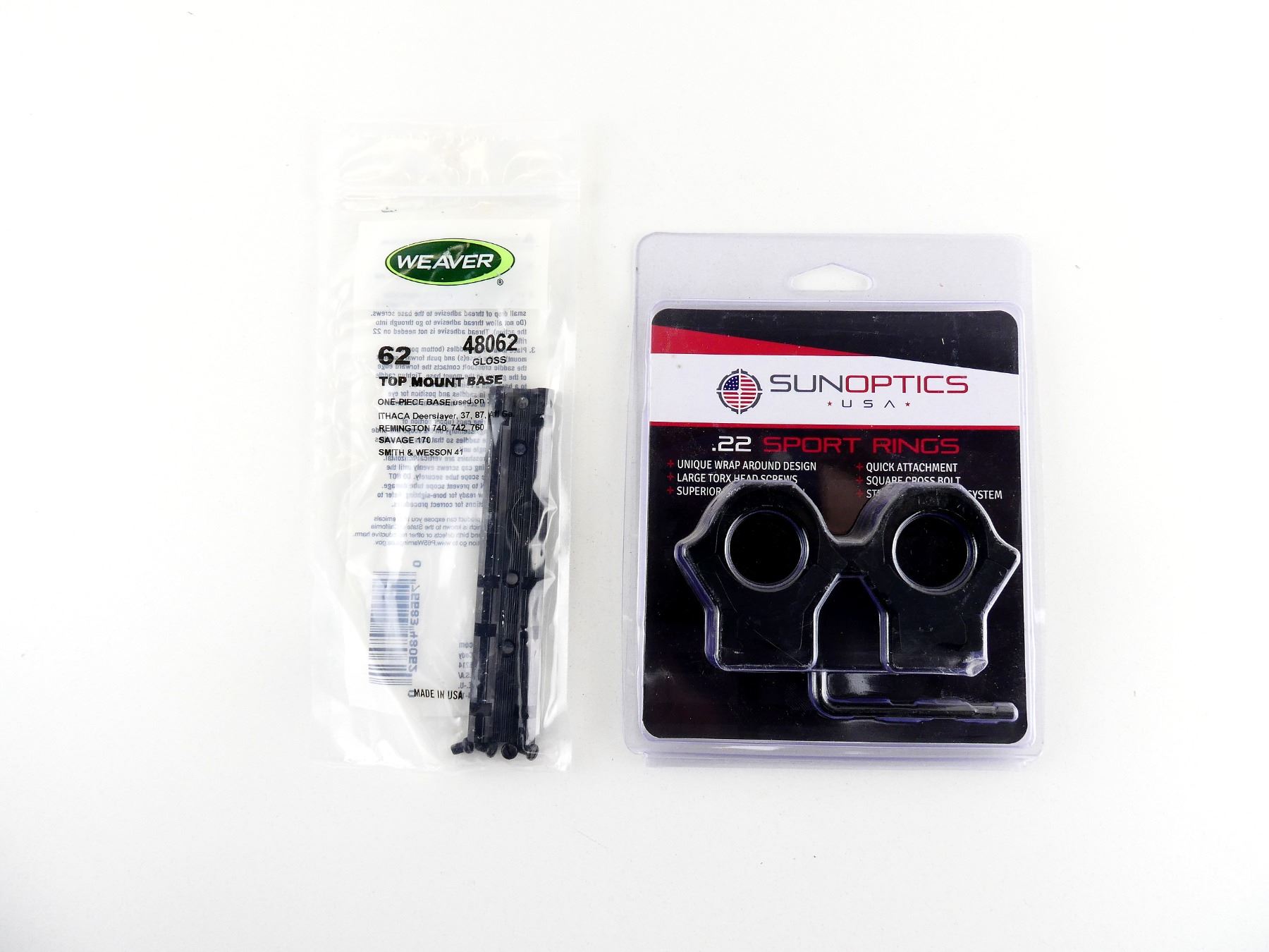 SUNOPTICS .22 SPORT 30MM SCOPE RINGS AND WEAVER SCOPE RAIL LOT