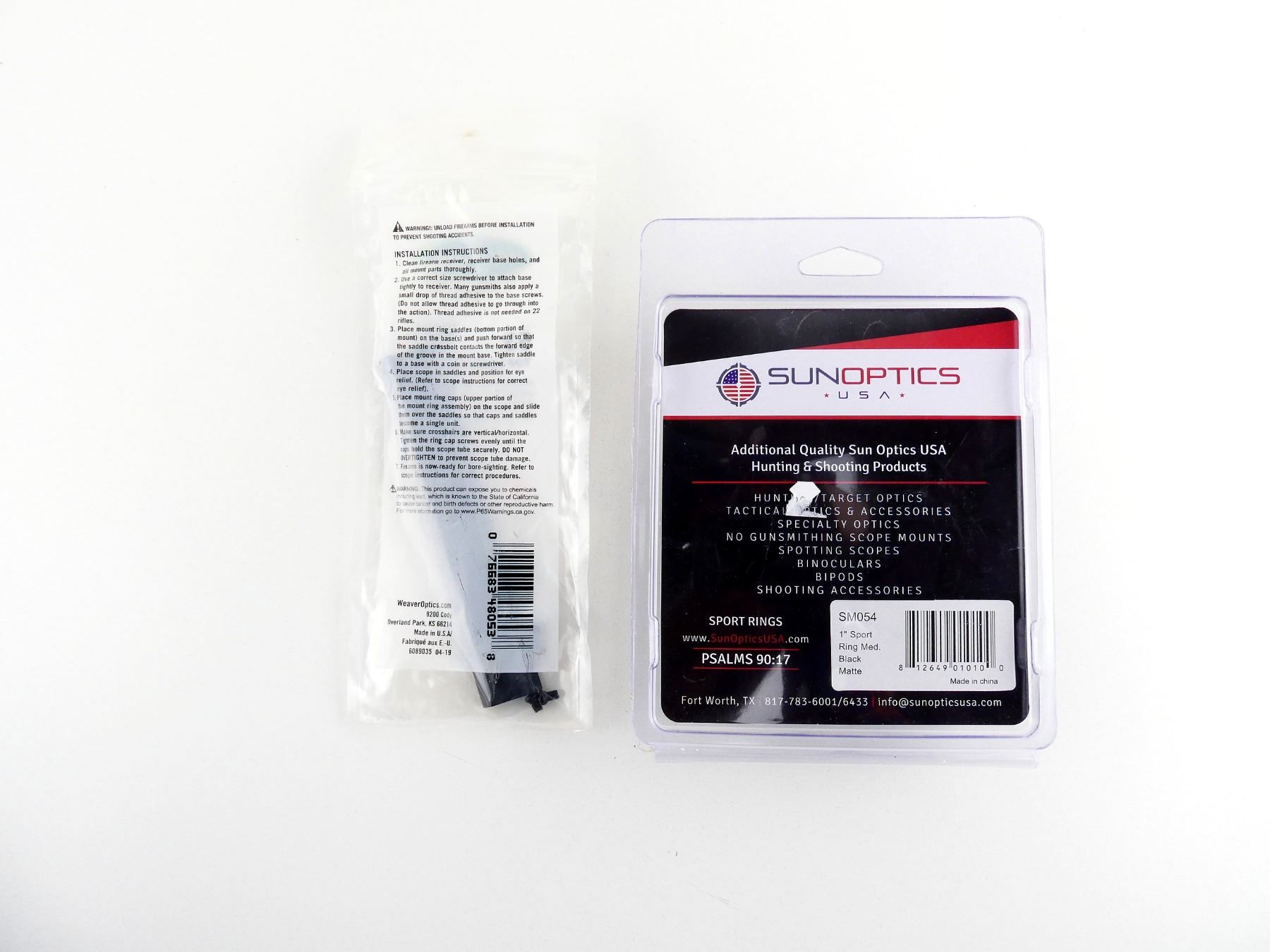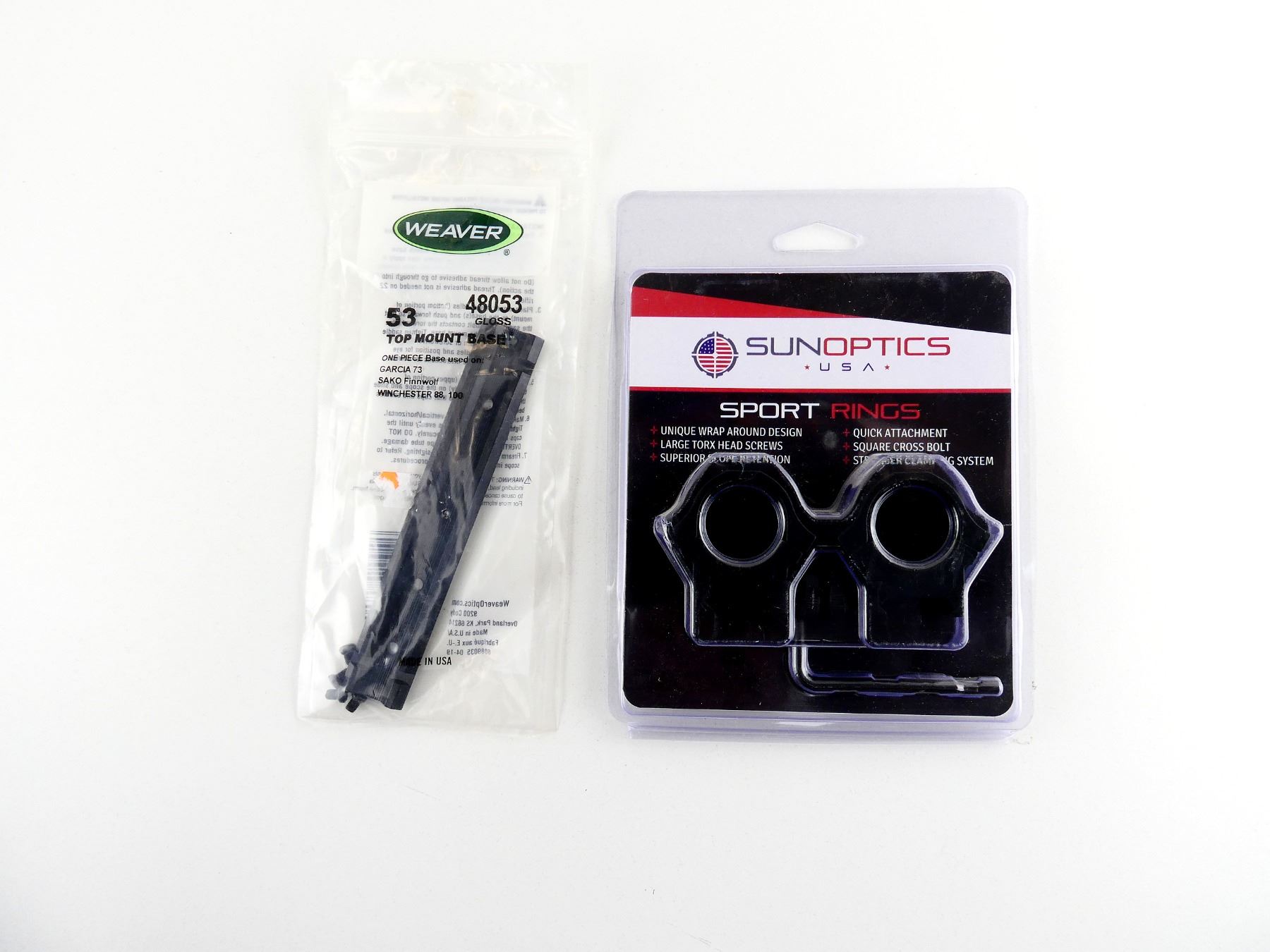 Lot 35064 SUNOPTICS SPORT 1" SCOPE RINGS AND WEAVER SCOPE RAIL LOT