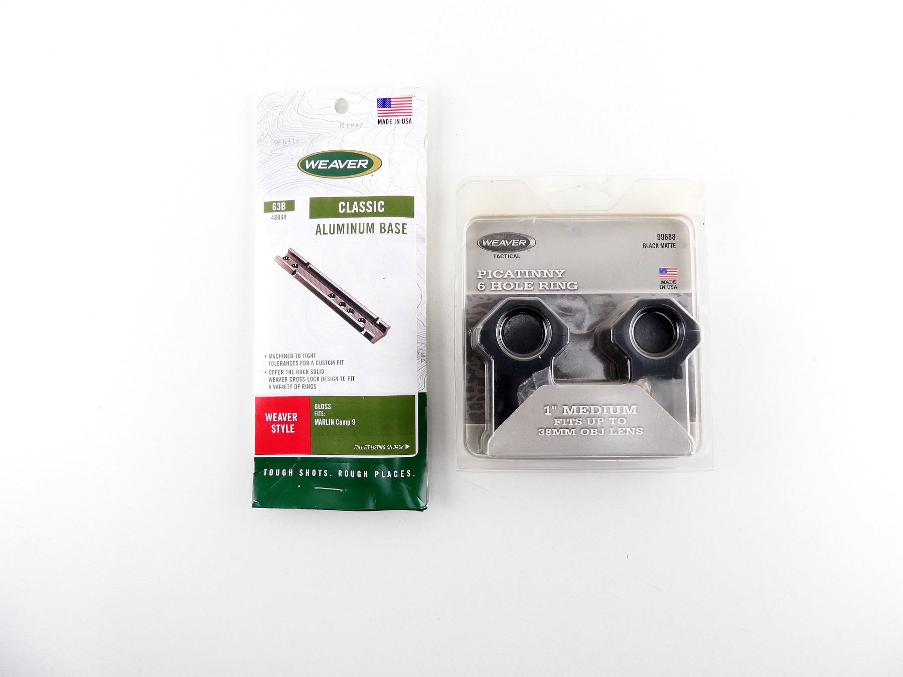 LOT INCLUDES; (1) SET OF TACTICAL 1" PICATINNY SIX HOLE SCOPE RINGS, MATTE BLACK STEEL CONSTRUCTION, MEDIUM, PART #: 99688, APPEARS NEW OLD STOCK IN ORIGINAL PACKAGING, MAY NOT BE COMPLETE & (1) WEAVER SCOPE RAIL, ALUMINIUM CONSTRUCTION, PART #: 48069, NEW OLD STOCK IN ORIGINAL SEALED PACKAGING, MAY NOT BE COMPLETE. MAY REQUIRE FITTING. SEE PHOTOS.