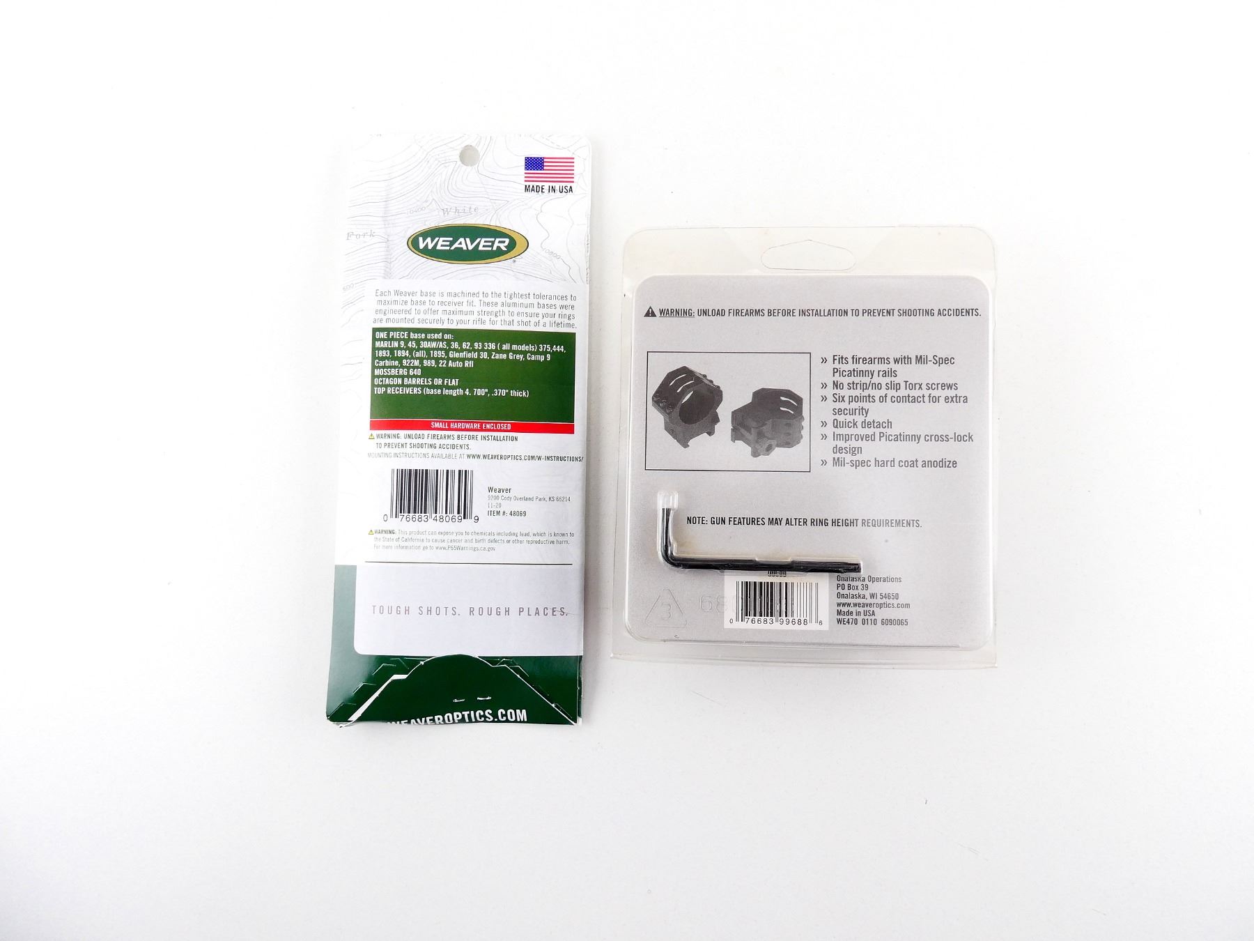 WEAVER TACTICAL 1" PICATINNY SCOPE RINGS AND WEAVER SCOPE RAIL LOT