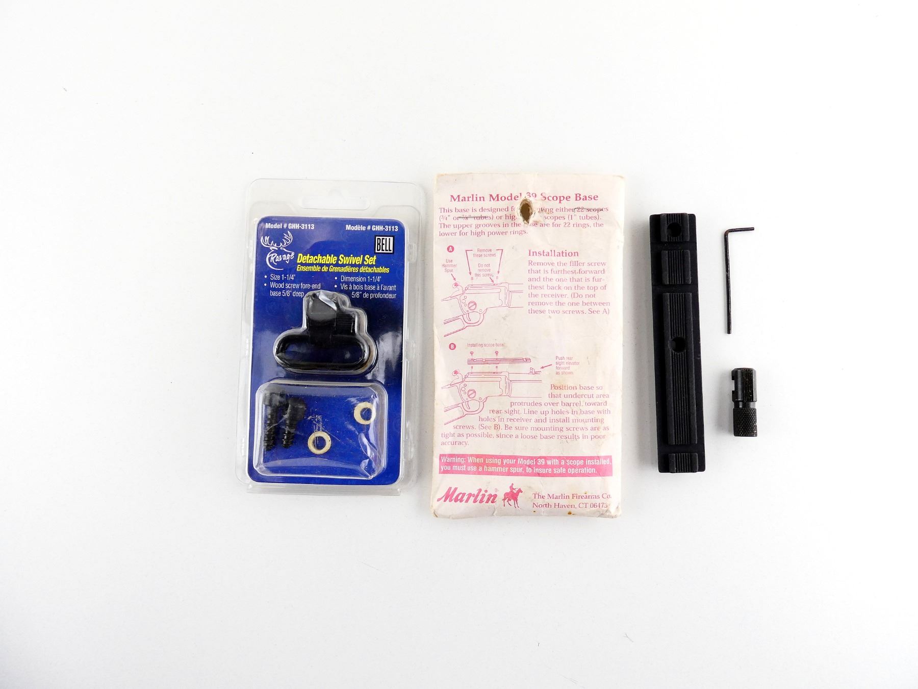 MARLIN MODEL 39 SCOPE BASE RAIL AND RAVAGE RIFLE SLING SWIVELS LOT