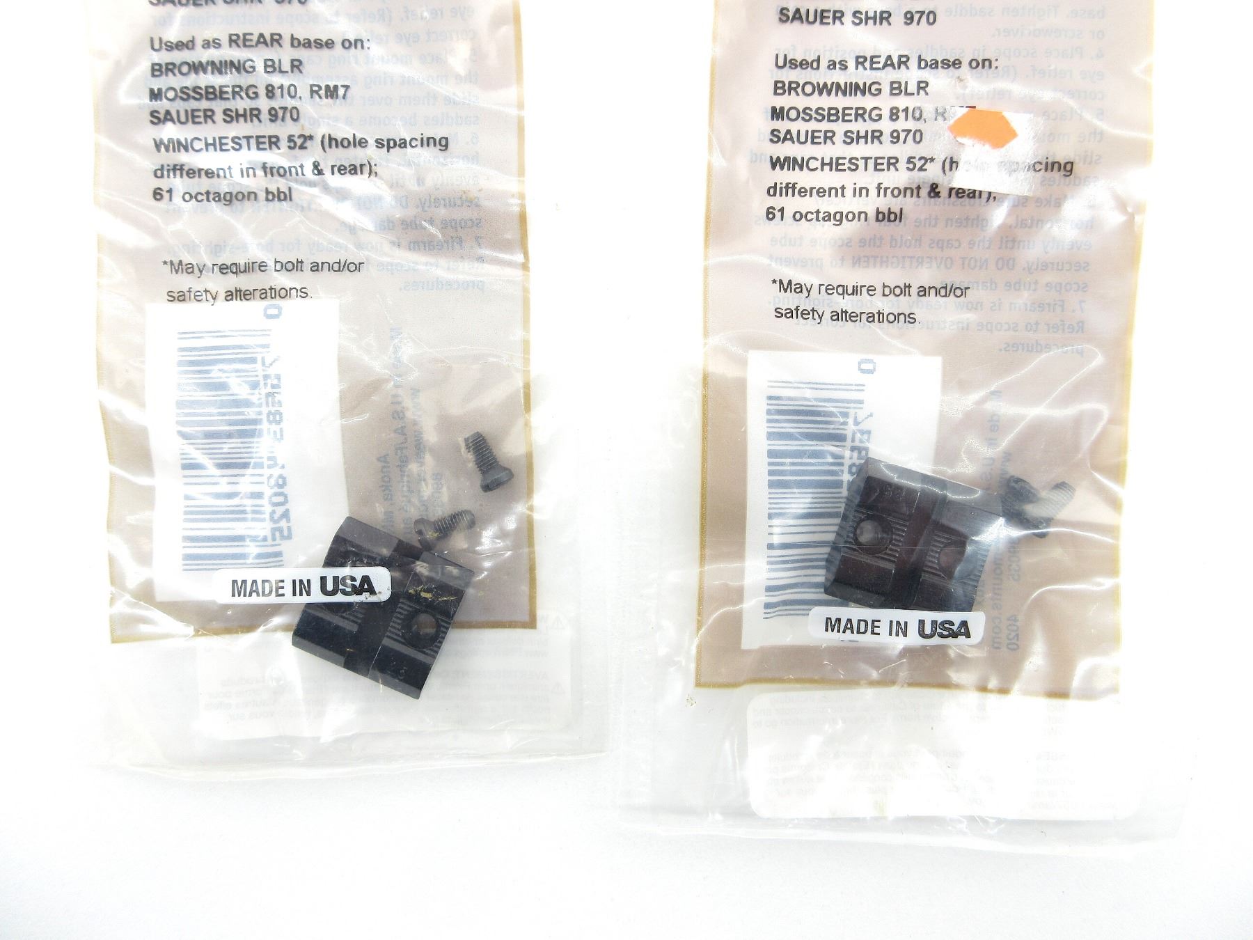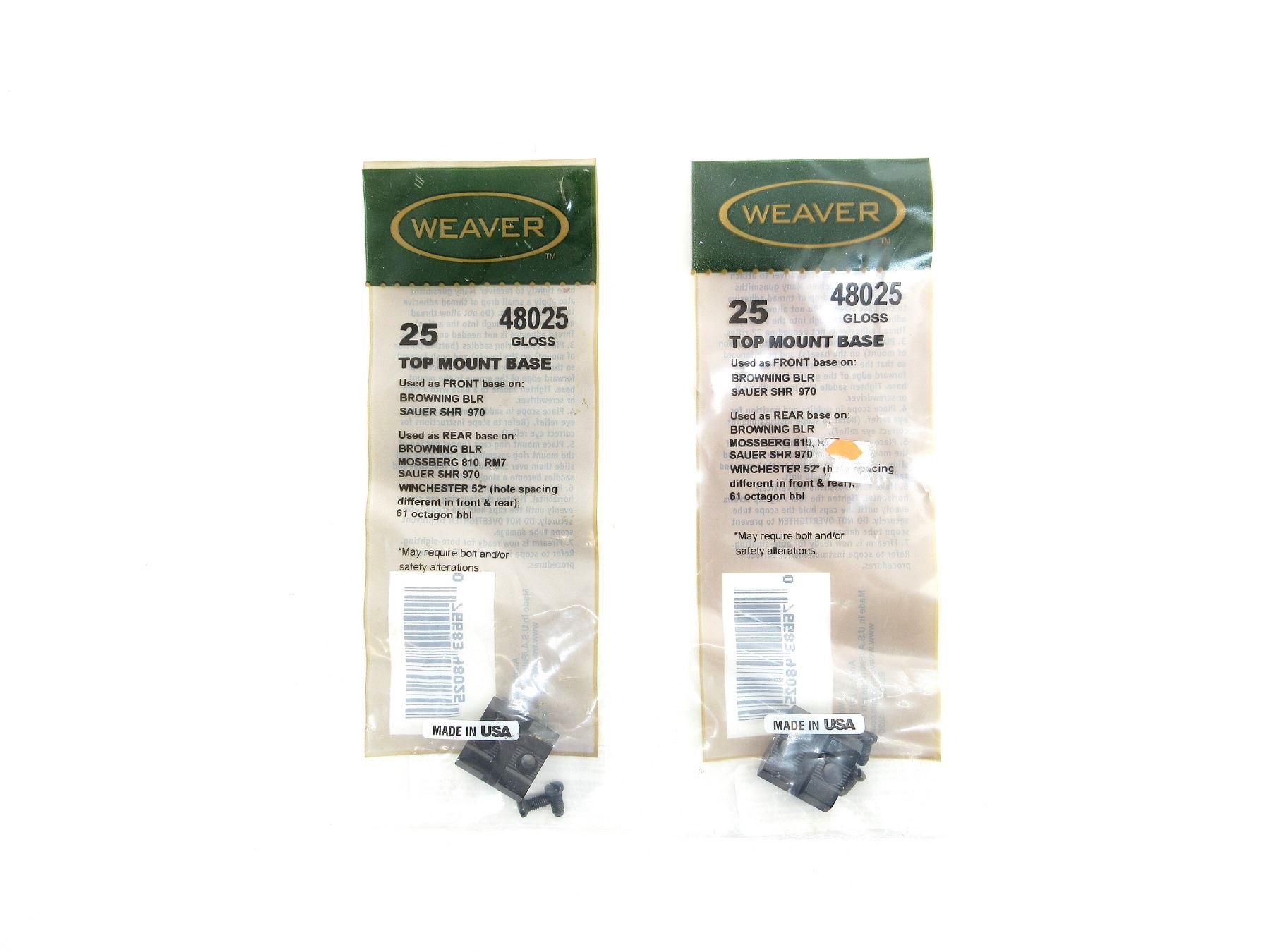 LOT INCLUDES; (2) SCOPE RING BASES, GLOSS BLACK ALLOY CONSTRUCTION, FITS BROWNING BLR / MOSSBERG 810 / WINCHESTER 52" / ETC., PART #: 48025, APPEARS NEW OLD STOCK IN ORIGINAL PACKAGING, MAY NOT BE COMPLETE. MAY REQUIRE FITTING. SEE PHOTOS.