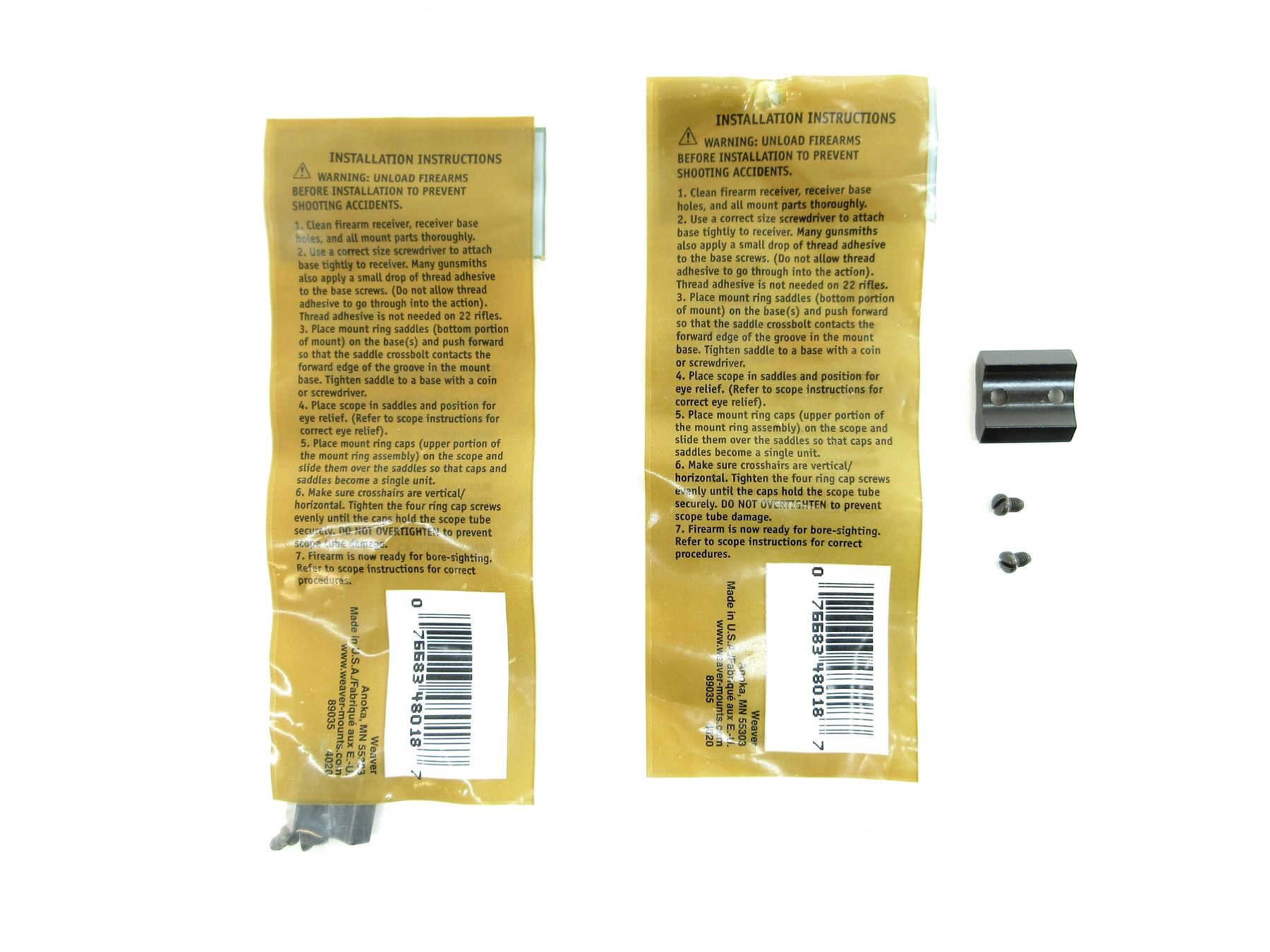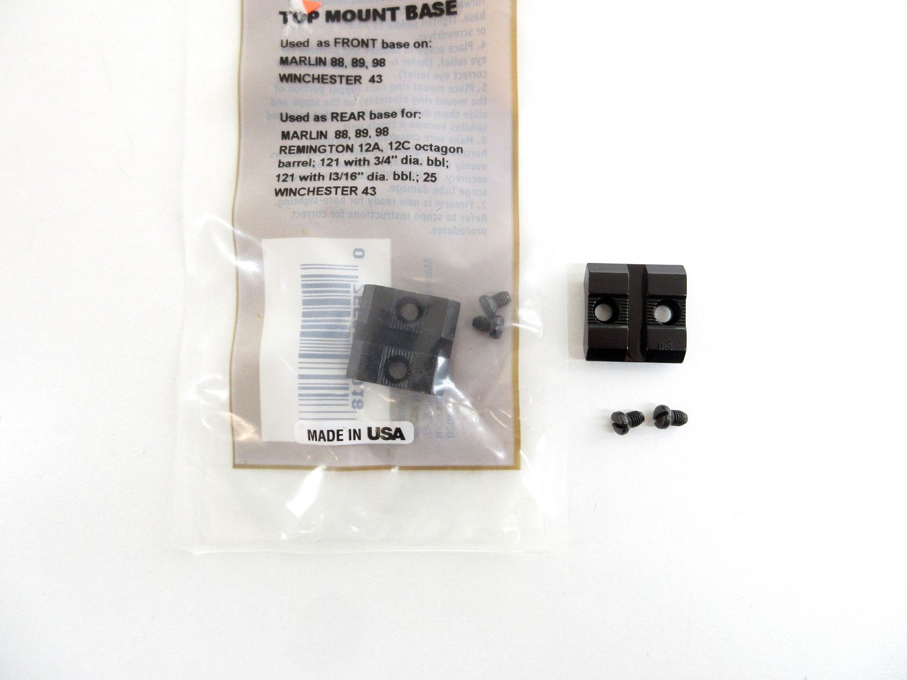 LOT INCLUDES; (2) SCOPE RING BASES, GLOSS BLACK ALLOY CONSTRUCTION, FITS MARLIN 88 / 89 / 98 / WINCHESTER 43 / ETC., PART #: 48018, APPEARS NEW OLD STOCK IN ORIGINAL PACKAGING, MAY NOT BE COMPLETE. MAY REQUIRE FITTING. SEE PHOTOS.