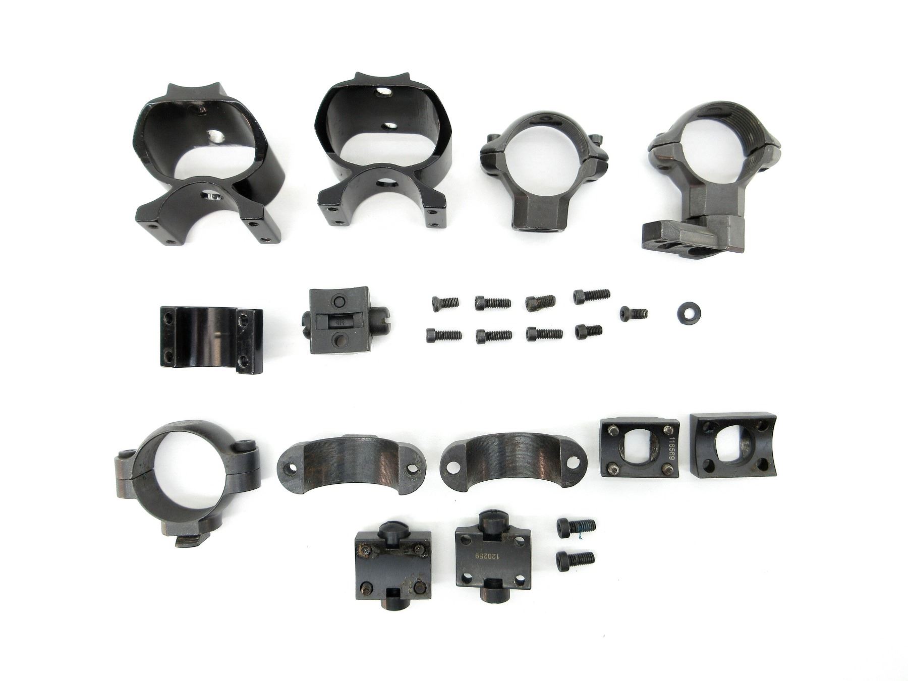 LOT INCLUDES; (1) SET OF 1" SEE-THRU SCOPE RINGS, MAY NOT BE COMPLETE, (1) SET OF BROWNING X-BOLT 30MM SCOPE RINGS, MAY NOT BE COMPLETE & (1) SET OF TURN-IN STYLE 1" SCOPE RINGS WITH BASES, MAY NOT BE COMPLETE. MAY REQUIRE FITTING. SEE PHOTOS.