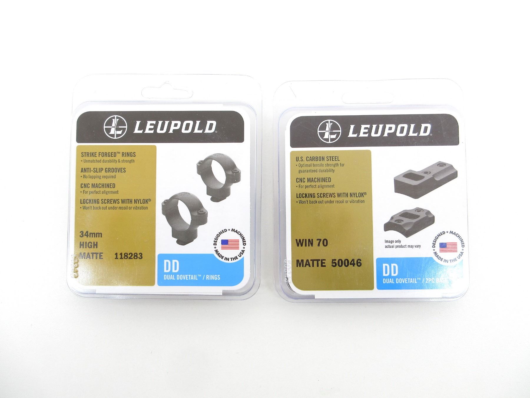 LOT INCLUDES; (1) SET OF 34MM SCOPE RINGS, BLACK MATTE, HIGH, DUAL DOVETAIL, PART #: 118283, APPEARS NEW OLD STOCK IN ORIGINAL PACKAGING & (1) WIN 70 SCOPE BASE, MATTE BLACK STEEL CONSTRUCTION, DUAL DOVETAIL, PART #: 50046, APPEARS NEW OLD STOCK IN ORIGINAL PACKAGING. MAY REQUIRE FITTING. SEE PHOTOS.