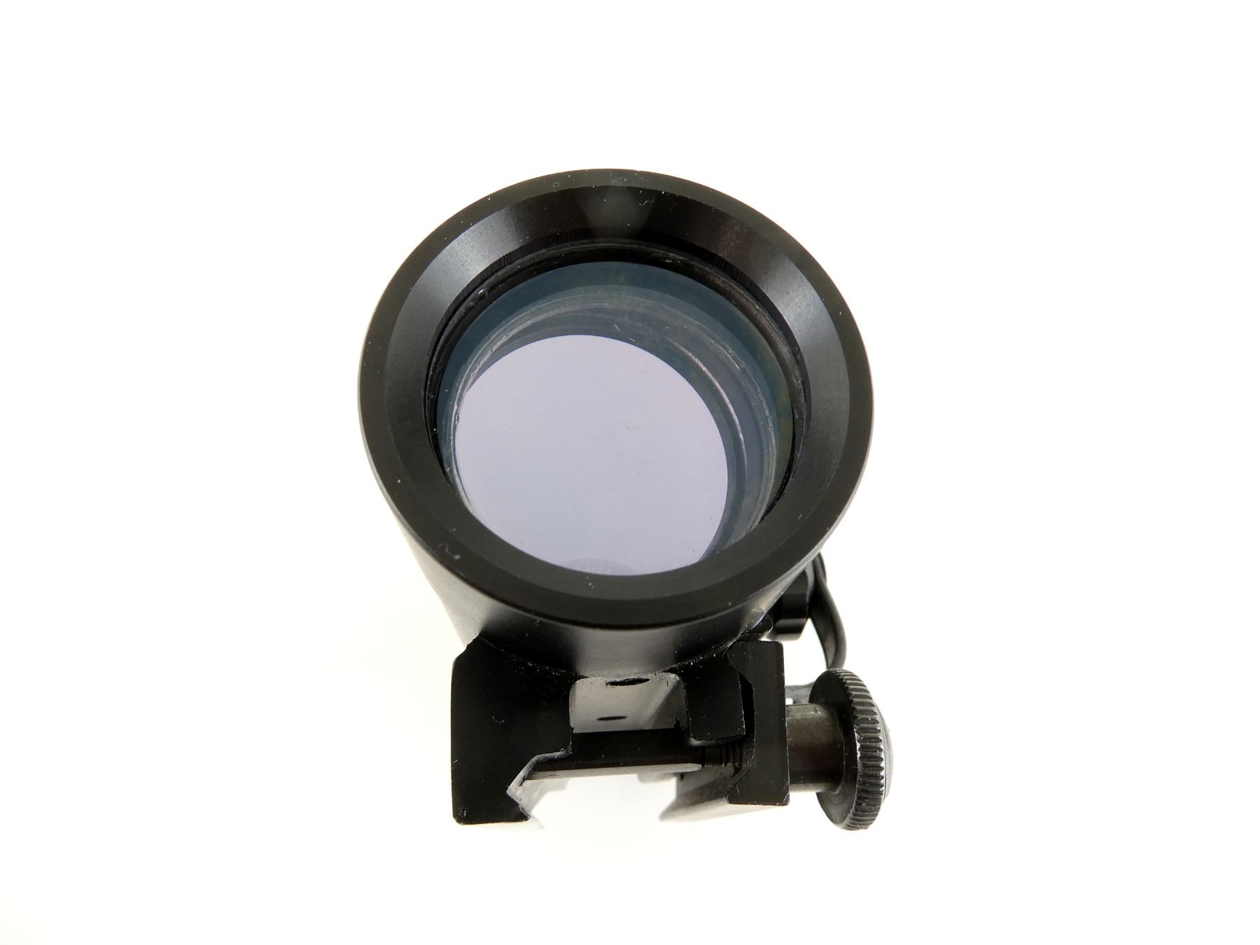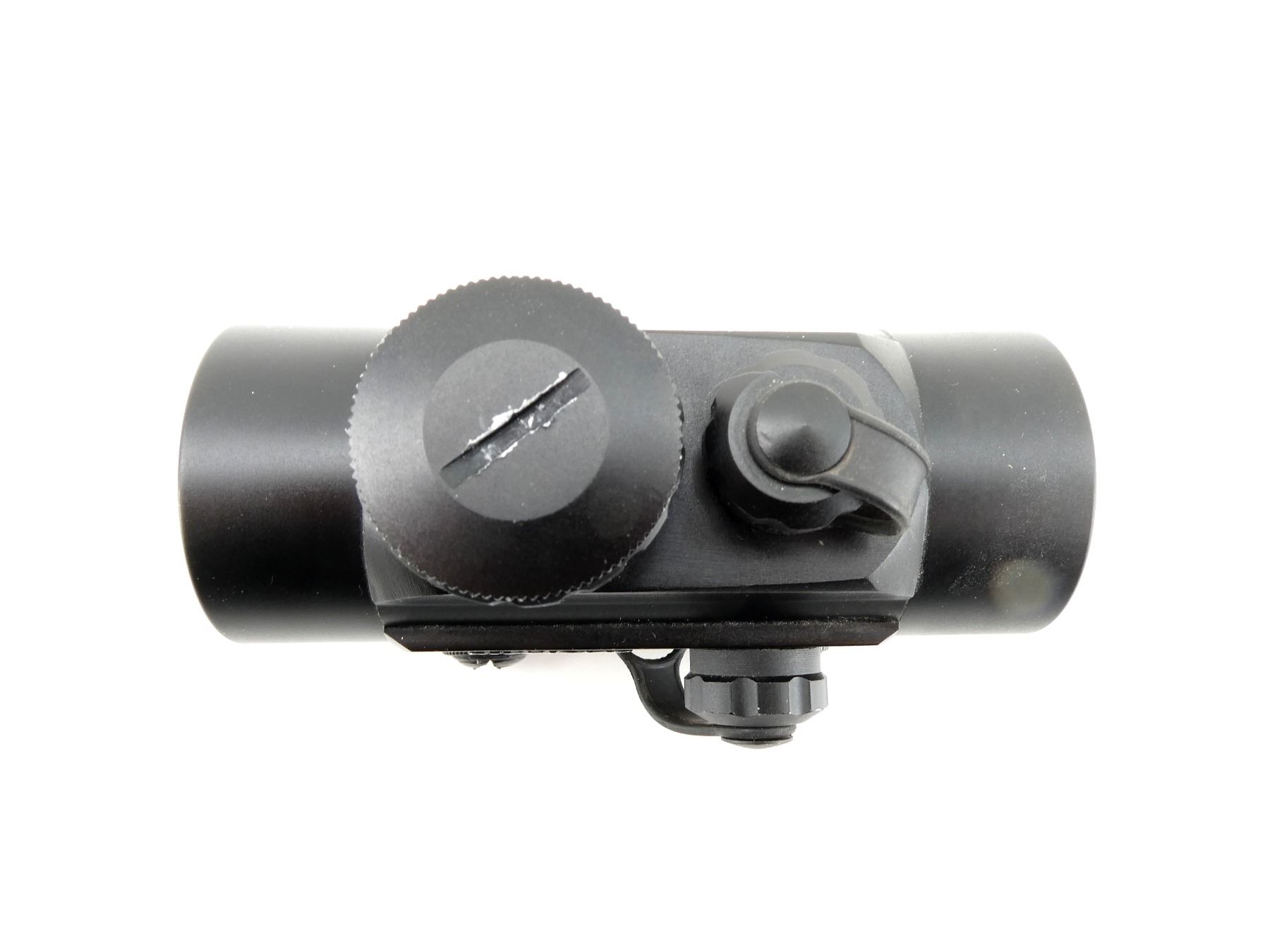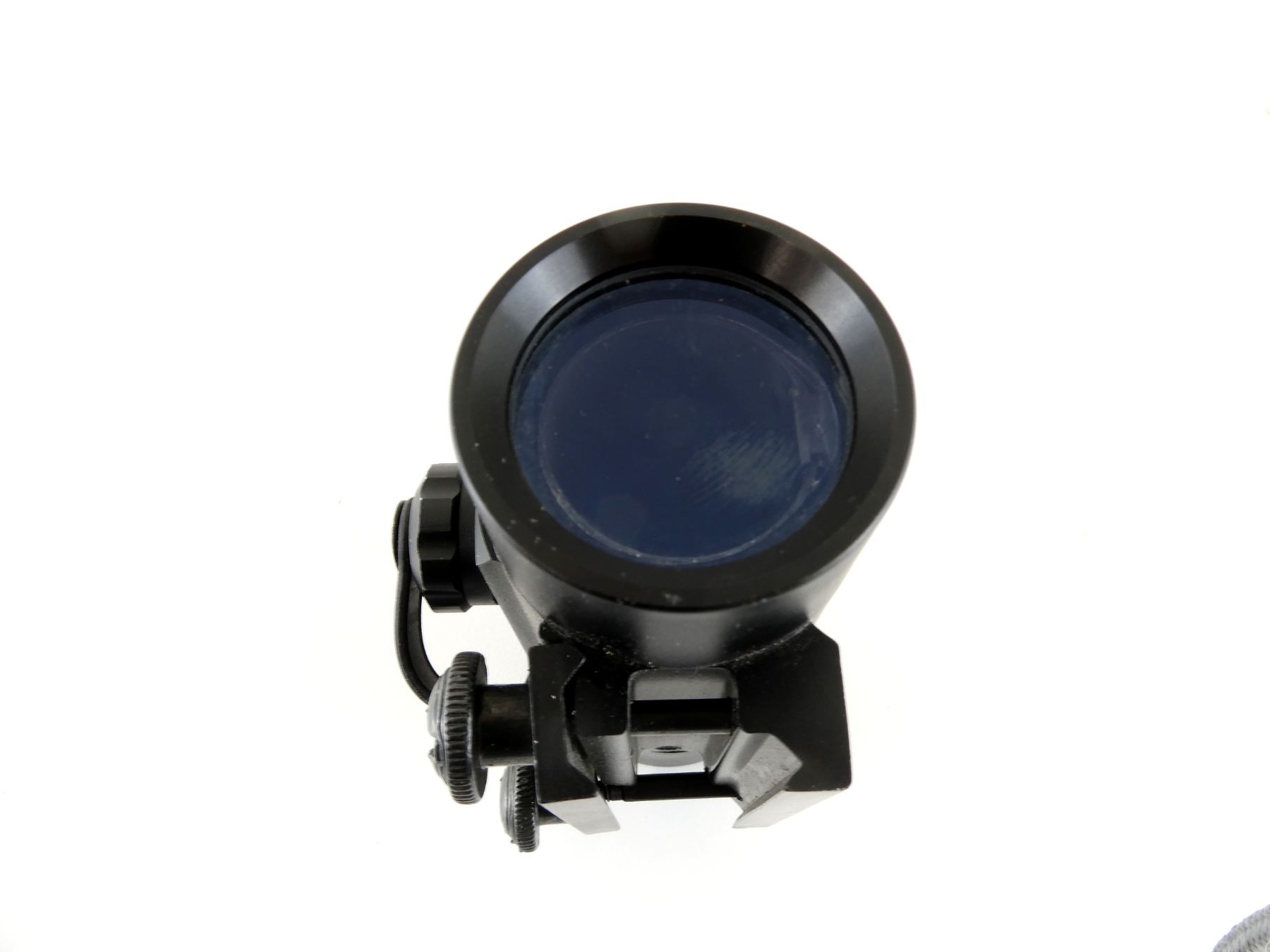 (1) CLEAR OPTICS, WORKING RED / BLUE / GREEN DOT RETICLE, WITH THREE BRIGHTNESS SETTINGS, WINDAGE KNOB TURNS, ELEVATION KNOB SEIZED, MARKED "511304", ETC., SHOWS WEAR & TEAR / USE MARKS. MAY REQUIRE FITTING. SEE PHOTOS.