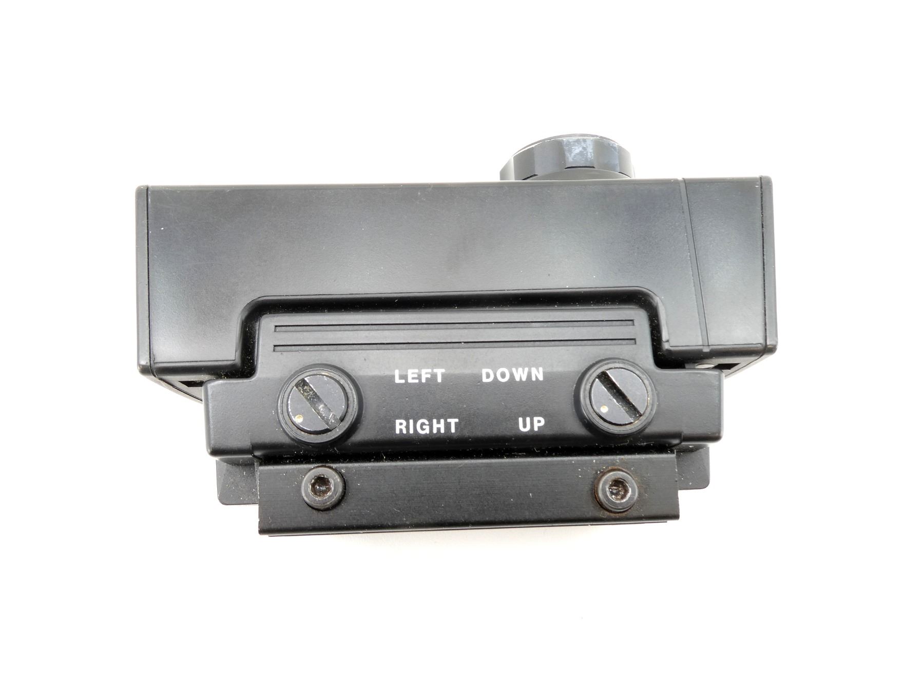 (1) CLEAR OPTICS, WORKING RED DOT RETICLE, WITH VARIOUS BRIGHTNESS SETTINGS, WINDAGE & ELEVATION KNOBS TURN, MARKED "MADE IN JAPAN", ETC., SHOWS WEAR & TEAR / USE MARKS. MAY REQUIRE FITTING. SEE PHOTOS.
