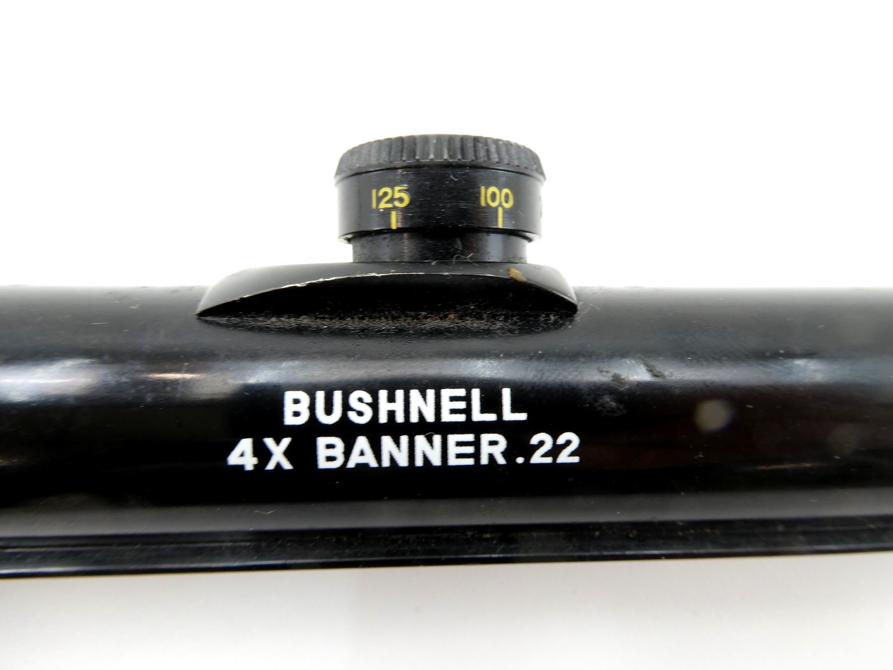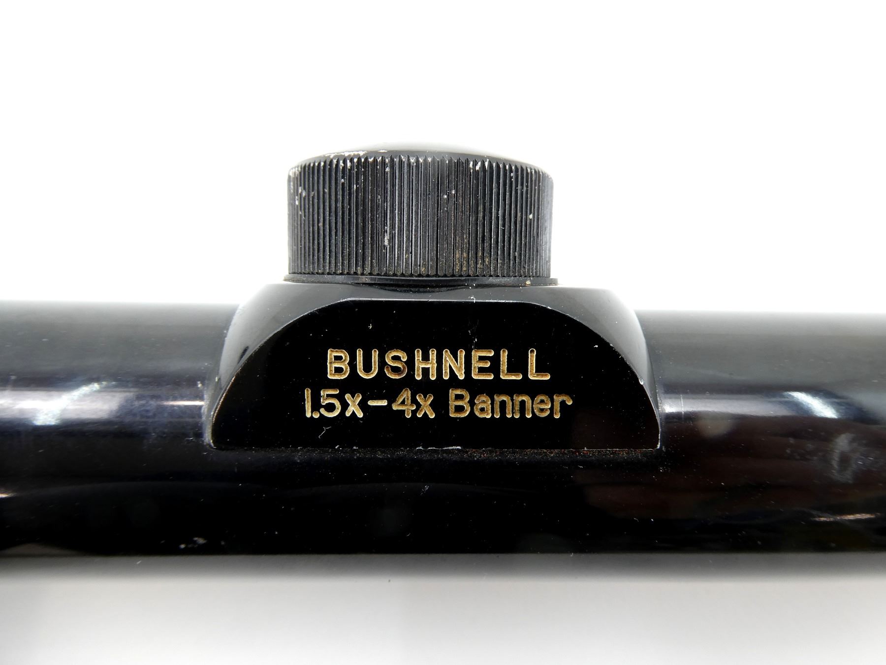 LOT INCLUDES; (1) BUSHNELL 1.5-4 X 20 BANNER RIFLE SCOPE, CLEAR OPTICS, CROSSHAIR RETICLE, 1" TUBE DIAMETER, SEIZED MAGNIFICATION RING, WINDAGE & ELEVATION KNOBS TURN, MARKED "NO. I316740", ETC., SHOWS WEAR & TEAR / USE MARKS, (1) BUSHNELL 4X BANNER .22 RIFLE SCOPE, CLEAR OPTICS, DUPLEX RETICLE, 22MM TUBE DIAMETER, WINDAGE & ELEVATION KNOBS TURN, MARKED "72-3503 X39978", ETC., SHOWS WEAR & TEAR / USE MARKS & (1) SHOTGUN CLEANING KIT, MAY NOT BE COMPLETE / PIECES MAY BE MISSING. MAY REQUIRE FITTING. SEE PHOTOS.