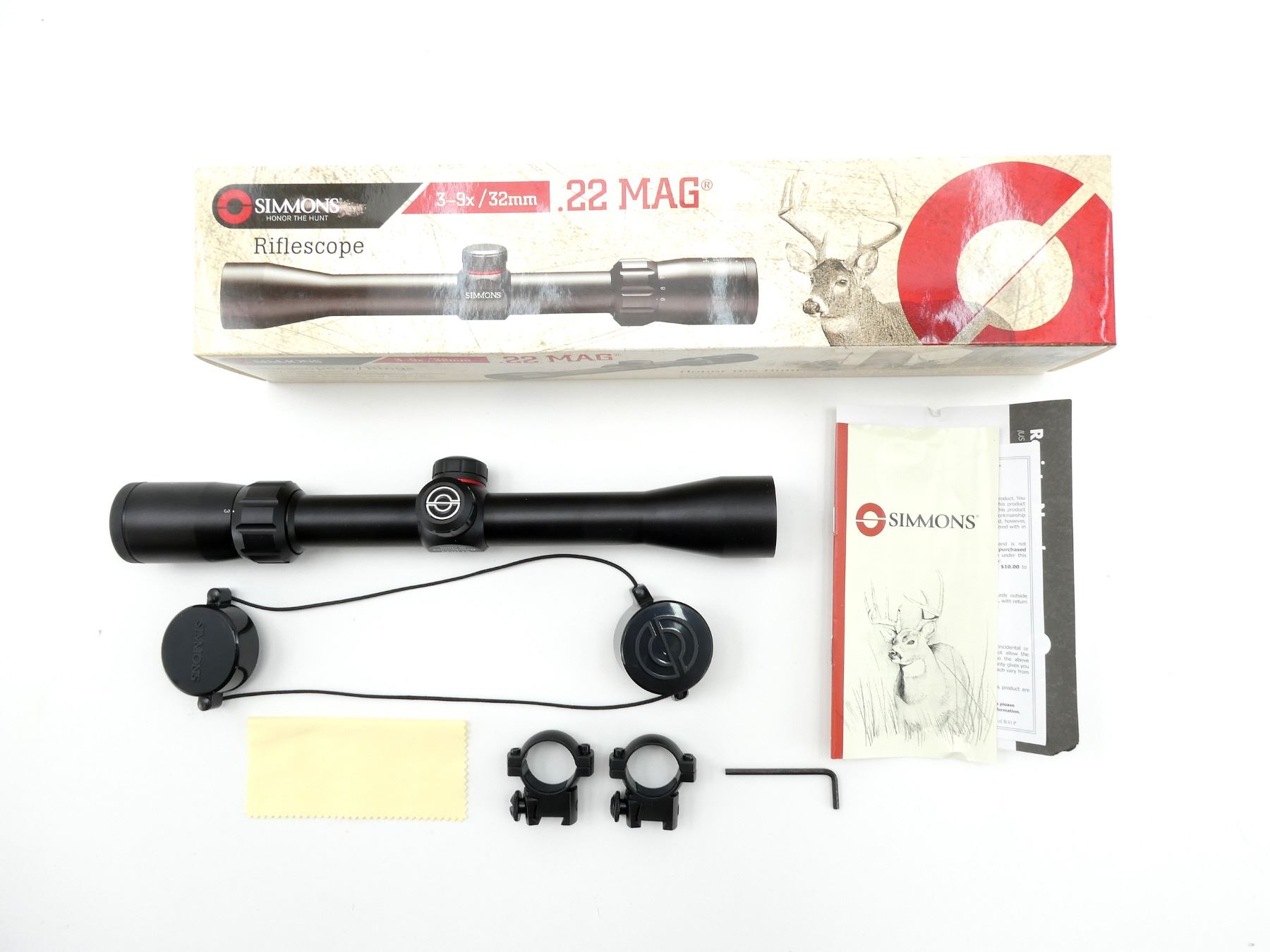 Lot 35323 SIMMONS .22 MAG 3-9 X 32MM RIFLE SCOPE WITH RINGS