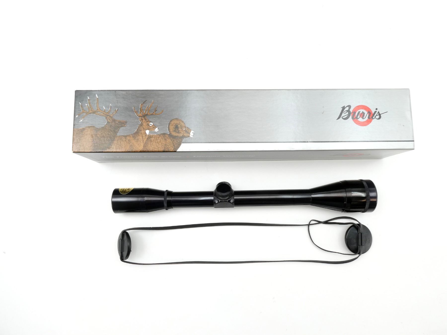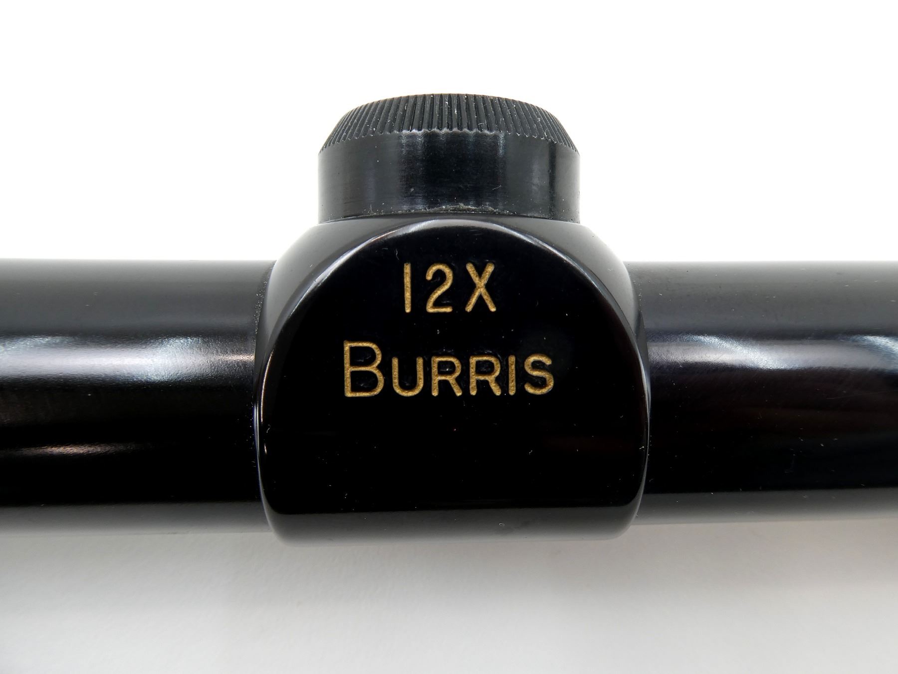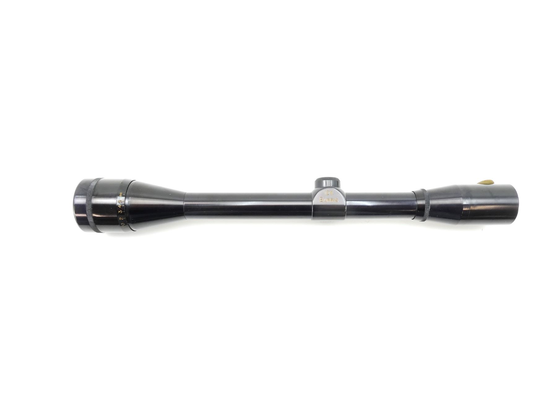 (1) CLEAR OPTICS, CROSS HAIR RETICLE, 1" TUBE DIAMETER, WORKING MAGNIFICATION RING, WINDAGE & ELEVATION KNOBS TURN, MARKED: "12X, BURRIS", ETC., WITH LENS COVERS & ORIGINAL PACKAGING, SHOWS WEAR & TEAR / USE MARKINGS. MAY REQUIRE FITTING. SEE PHOTOS.