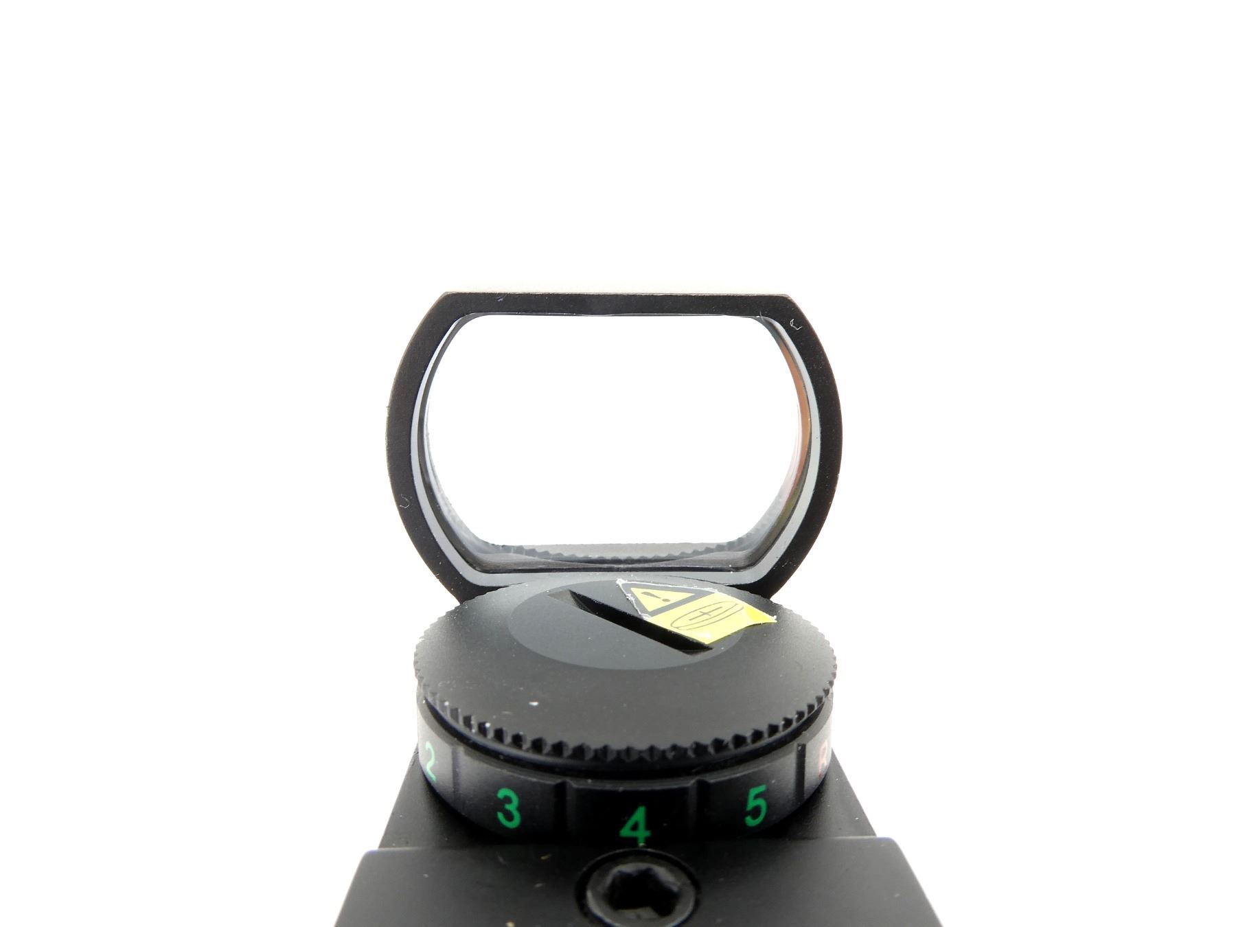 (1) RED / GREEN DOT SIGHT, CLEAR OPTICS, UNTESTED RED / GREEN DOT RETICLE, WITH VARIOUS BRIGHTNESS SETTINGS, 29MM DIAMETER, WINDAGE & ELEVATION KNOBS TURN, SHOWS SOME WEAR & TEAR / USE MARKS, WITH MOUNTING BASE, INSTRUCTIONS & ORIGINAL PACKAGING. MAY REQUIRE FITTING. SEE PHOTOS.
