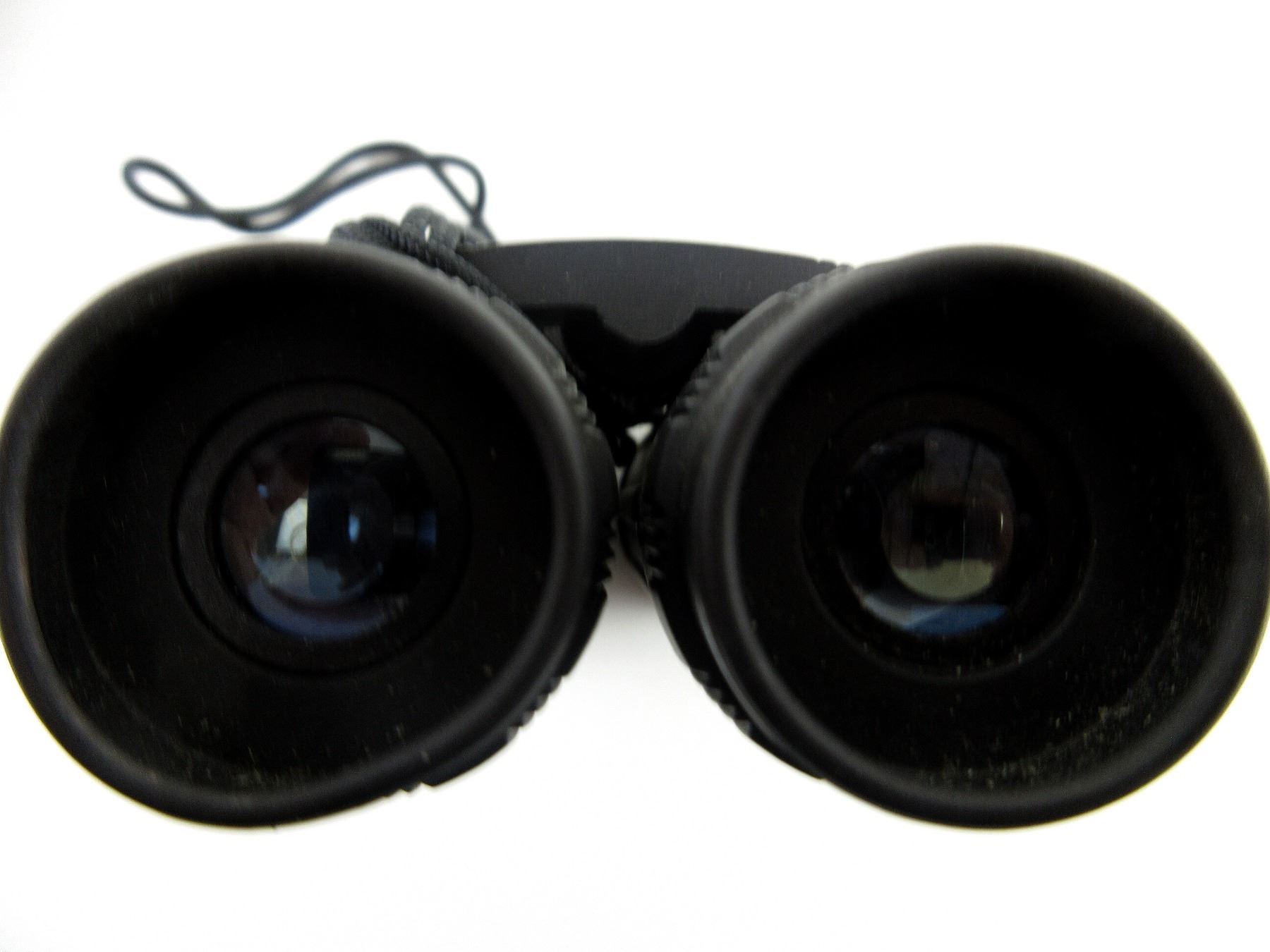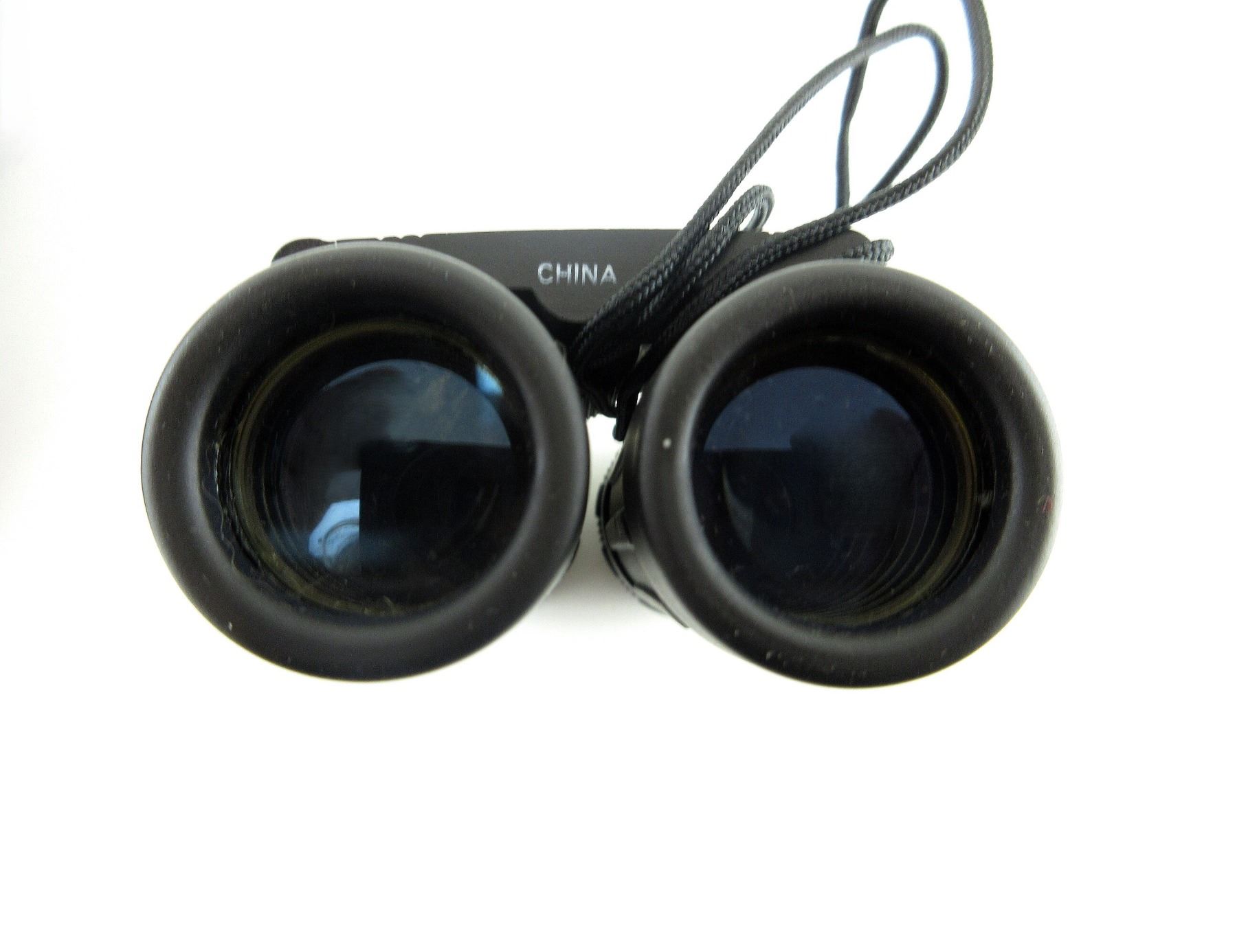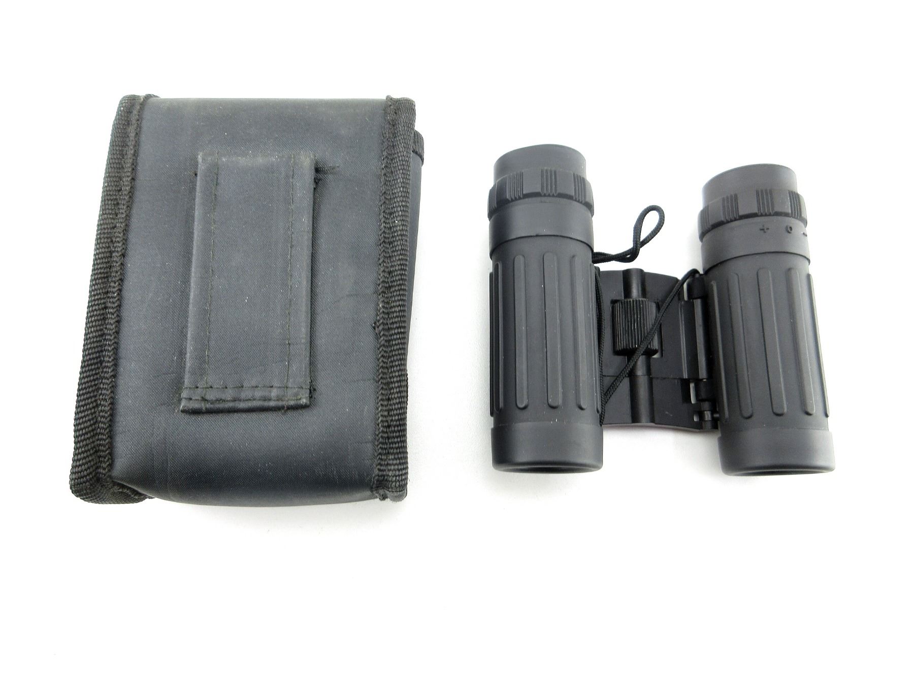 (1) CLEAR OPTICS, WORKING FOCUS DIAL, MARKED "383FT AT 1000YDS", ETC., WITH NECK LANYARD & CARRY CASE, SHOWS WEAR & TEAR / USE MARKINGS. SEE PHOTOS.