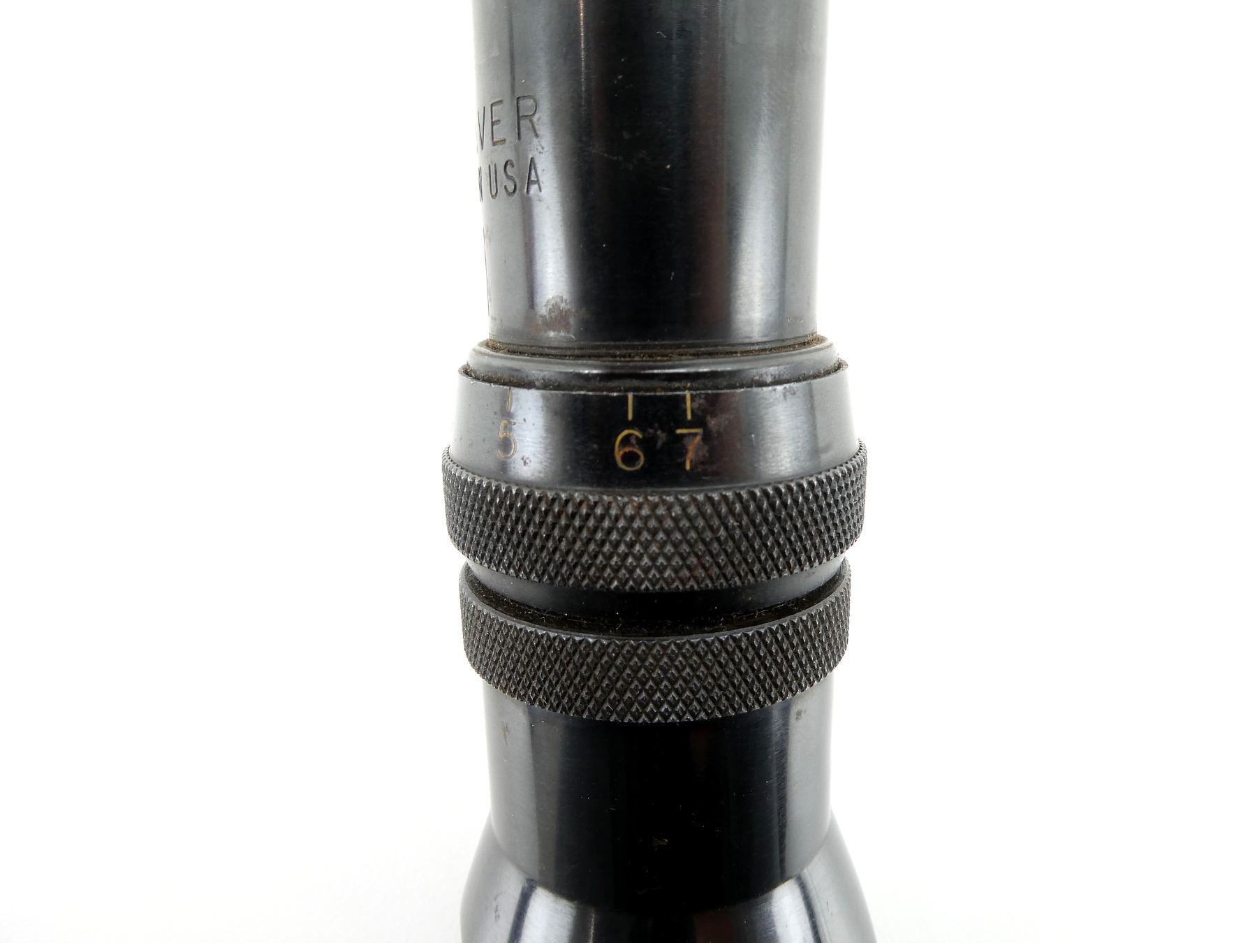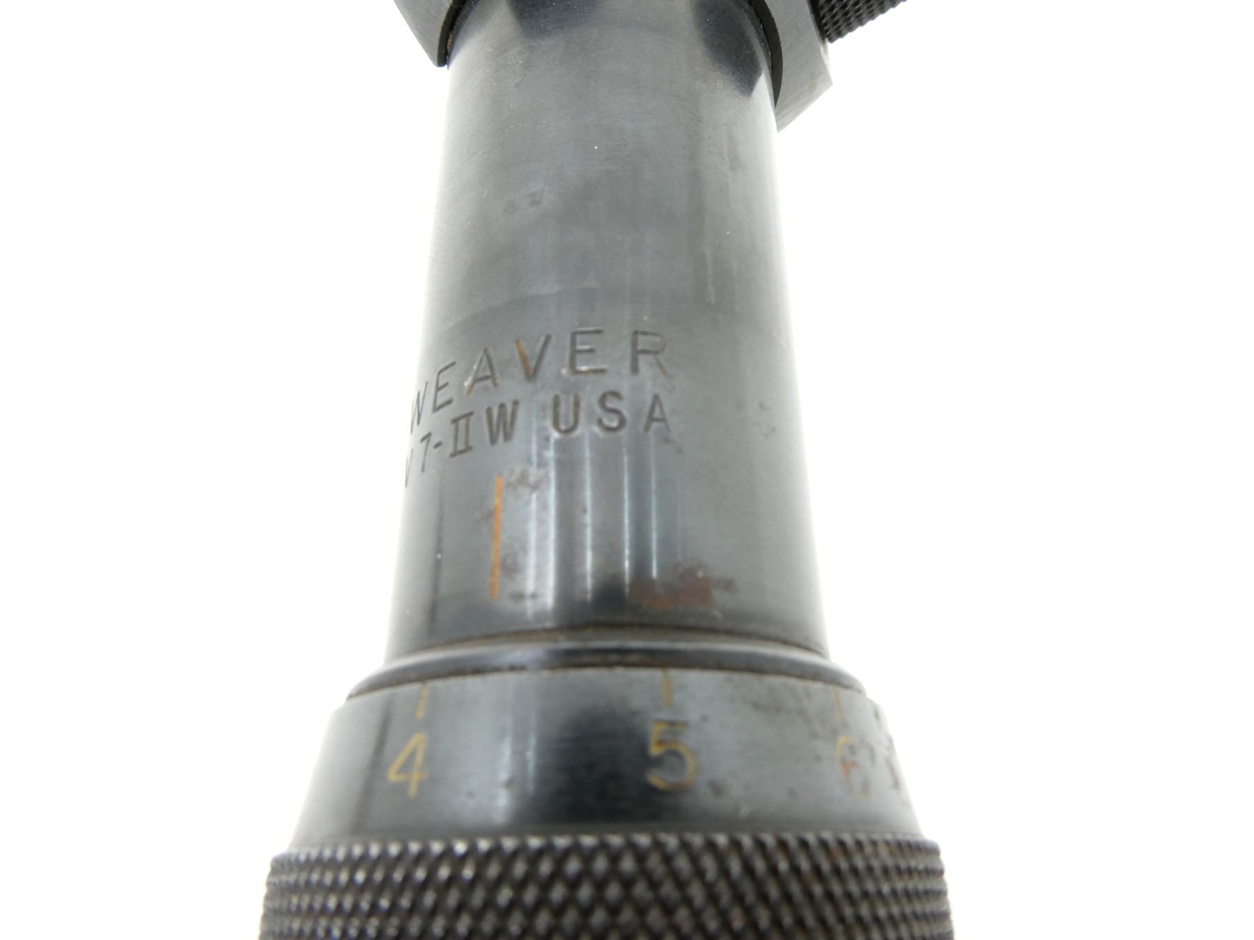 (1) CLEAR OPTICS, DUPLEX RETICLE, 1" TUBE DIAMETER, WORKING MAGNIFICATION RING, WINDAGE & ELEVATION KNOBS TURN, MARKED: "V7-II W USA", ETC., SHOWS WEAR & TEAR / USE MARKS. MAY REQUIRE FITTING. SEE PHOTOS.