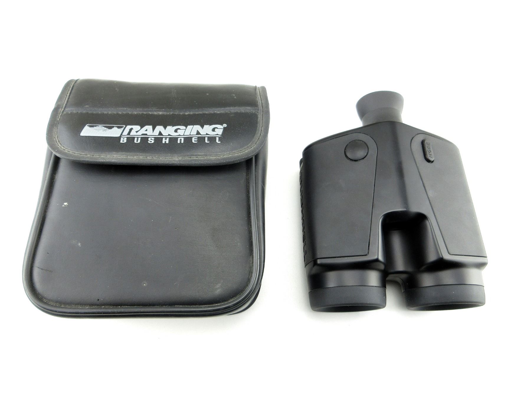 (1) CLEAR OPTICS, MARKED "BUSHNELL CORPORATION", BLACK POLYMER & RUBBER CONSTRUCTION, WORKING CONDITION, NOT FULLY TESTED, WITH PROTECTIVE CARRY CASE, SHOWS WEAR & TEAR / USE MARKINGS. SEE PHOTOS.