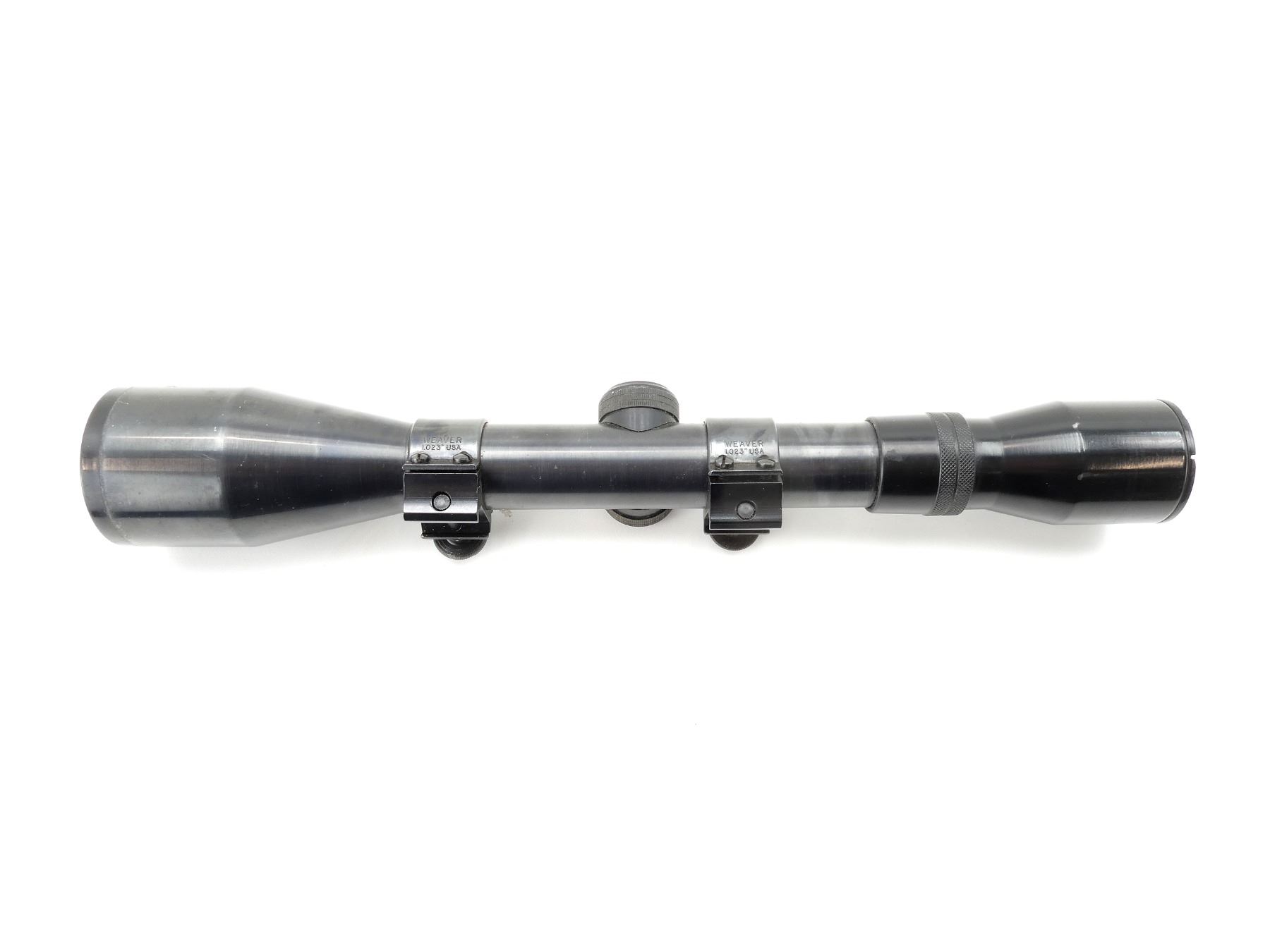 (1) CLEAR OPTICS, CROSS HAIR RETICLE, 26MM TUBE DIAMETER, MARKED: "HELIA 6 S2", "NR. 63597", ETC., WINDAGE & ELEVATION KNOBS TURN, WITH 26MM WEAVER SCOPE RINGS ATTACHED, SHOWS WEAR & TEAR / USE MARKINGS. MAY REQUIRE FITTING. SEE PHOTOS.