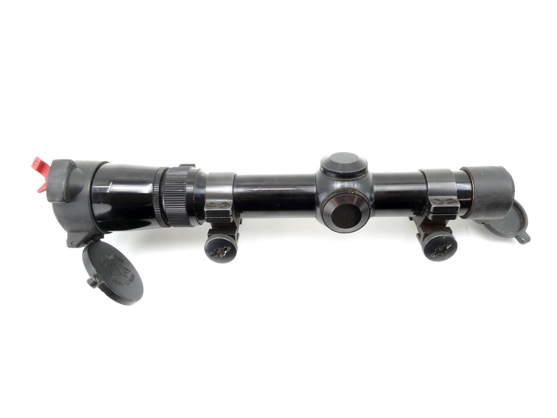 (1) CLEAR OPTICS, DUPLEX RETICLE, 1" TUBE DIAMETER, MARKED "ML76106", WITH LENS COVERS & 1" SCOPE RINGS ATTACHED MARKED: "25?", SHOWS WEAR & TEAR / USE MARKINGS. MAY REQUIRE FITTING. SEE PHOTOS.