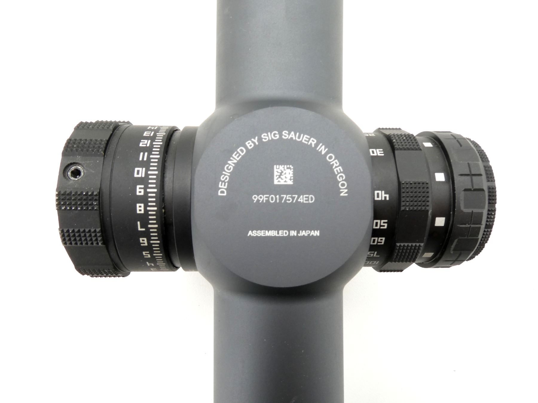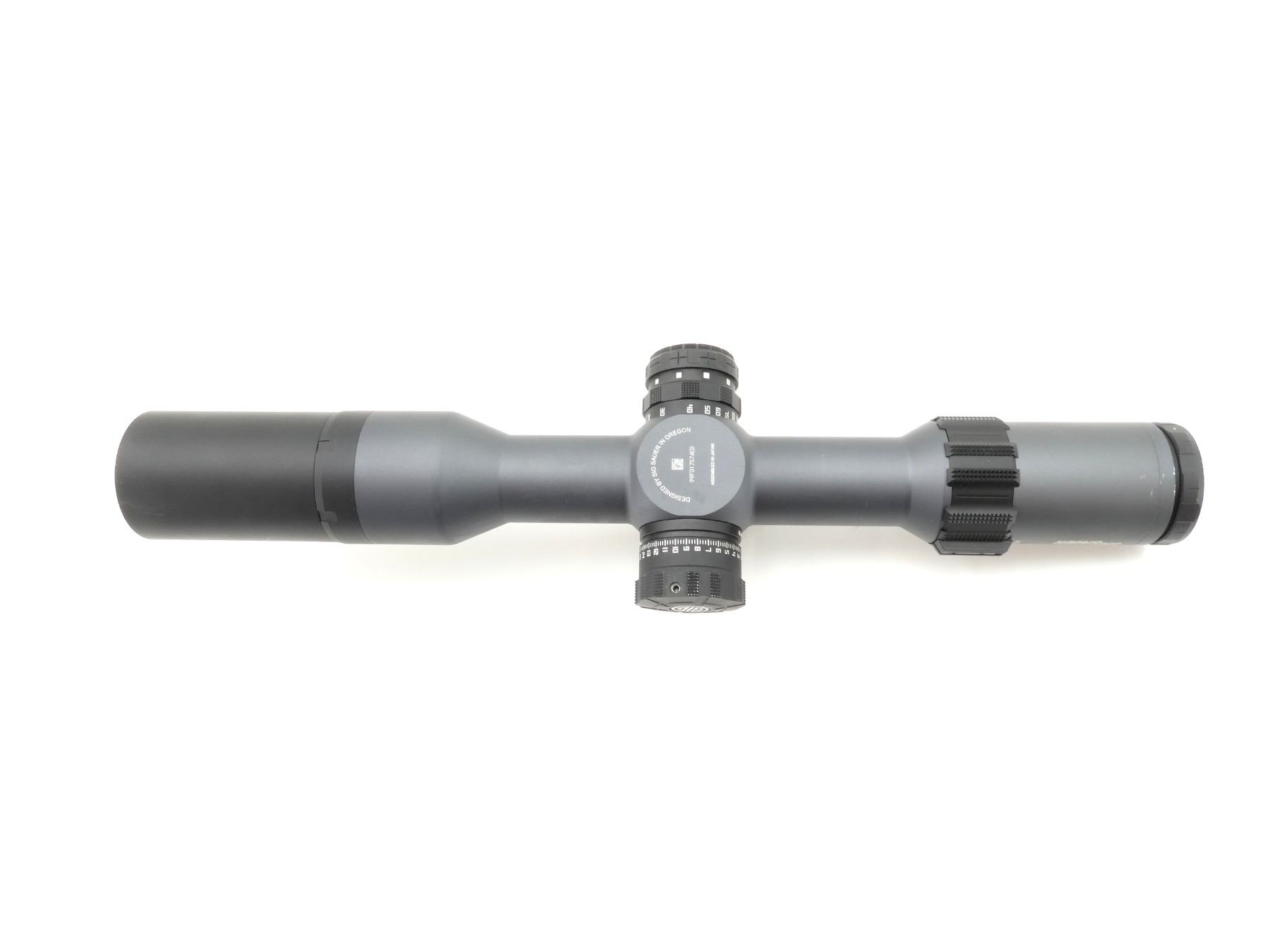(1) CLEAR OPTICS, DEV-L MRAD FIRST FOCAL PLANE ILLUMINATED (WORKS) RETICLE, 34MM TUBE DIAMETER, LEVELPLEX ANTI-CANT SYSTEM, WORKING MAGNIFICATION RING, WINDAGE & ELEVATION KNOBS TURN, MARKED: "SIG", "TANGO6, 3-18-44", ETC., WITH SUNSHADE & LENS COVERS, SHOWS LIGHT WEAR & TEAR / USE MARKINGS. MAY REQUIRE FITTING. SEE PHOTOS.