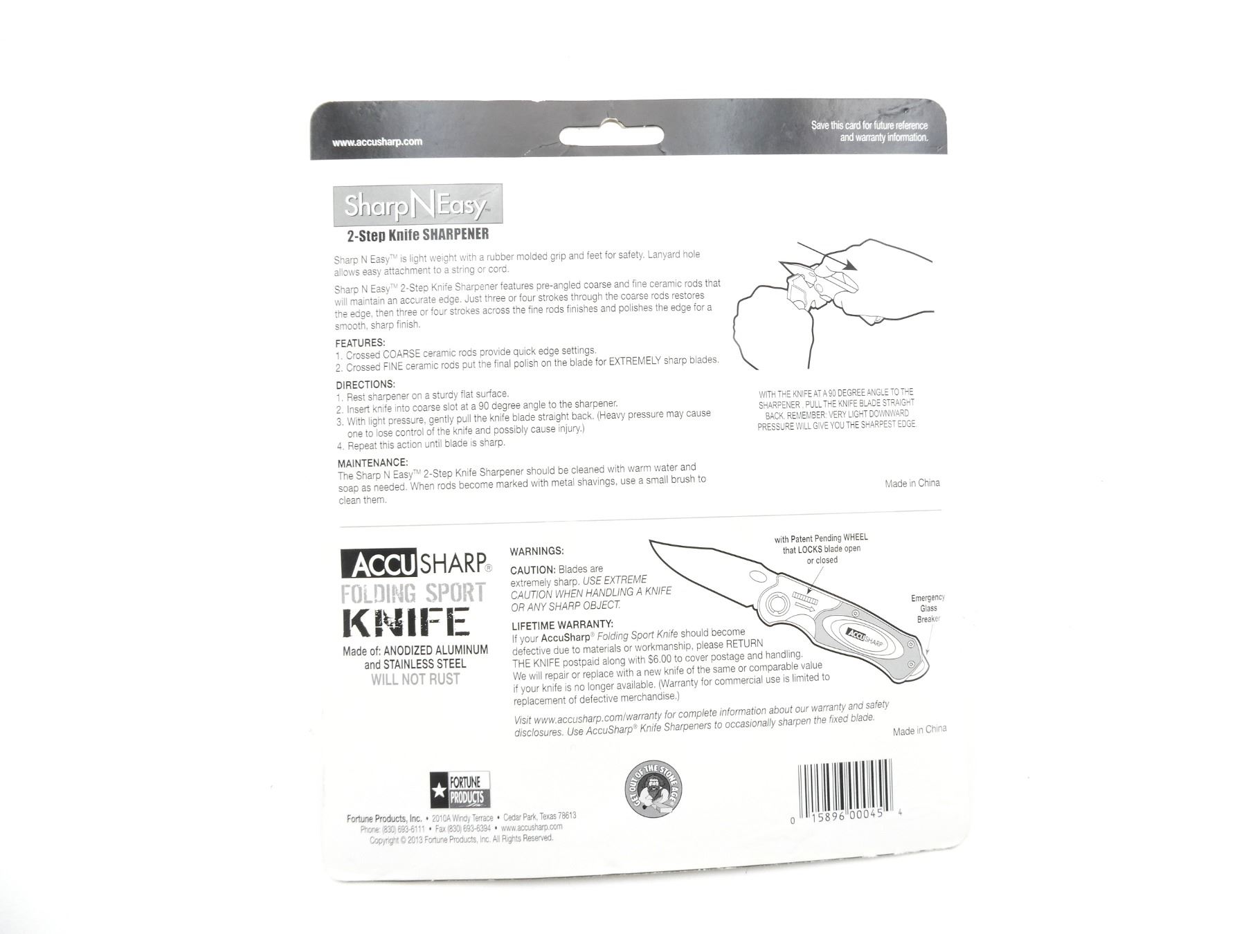 Lot 37015 ACCUSHARP 2-STEP KNIFE SHARPENER AND SPORT KNIFE COMBO PACK
