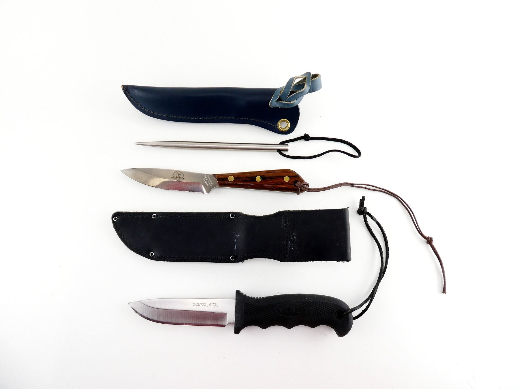 Lot 37044 SCHOONER BLUENOSE FOUNDATION BELT KNIFE WITH MARLIN SPIKE AND CUTCO KNIFE LOT
