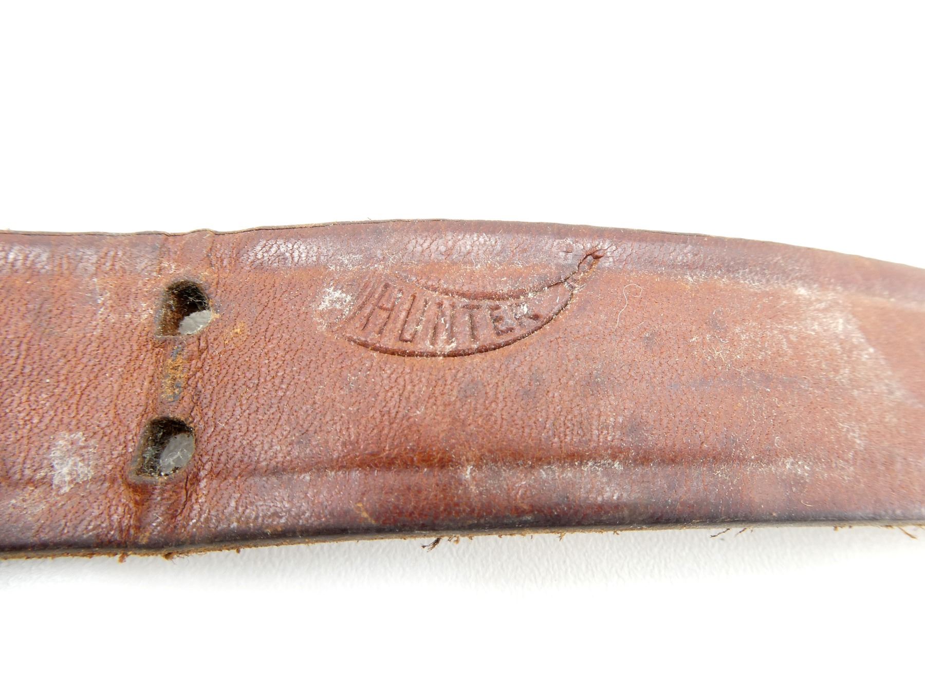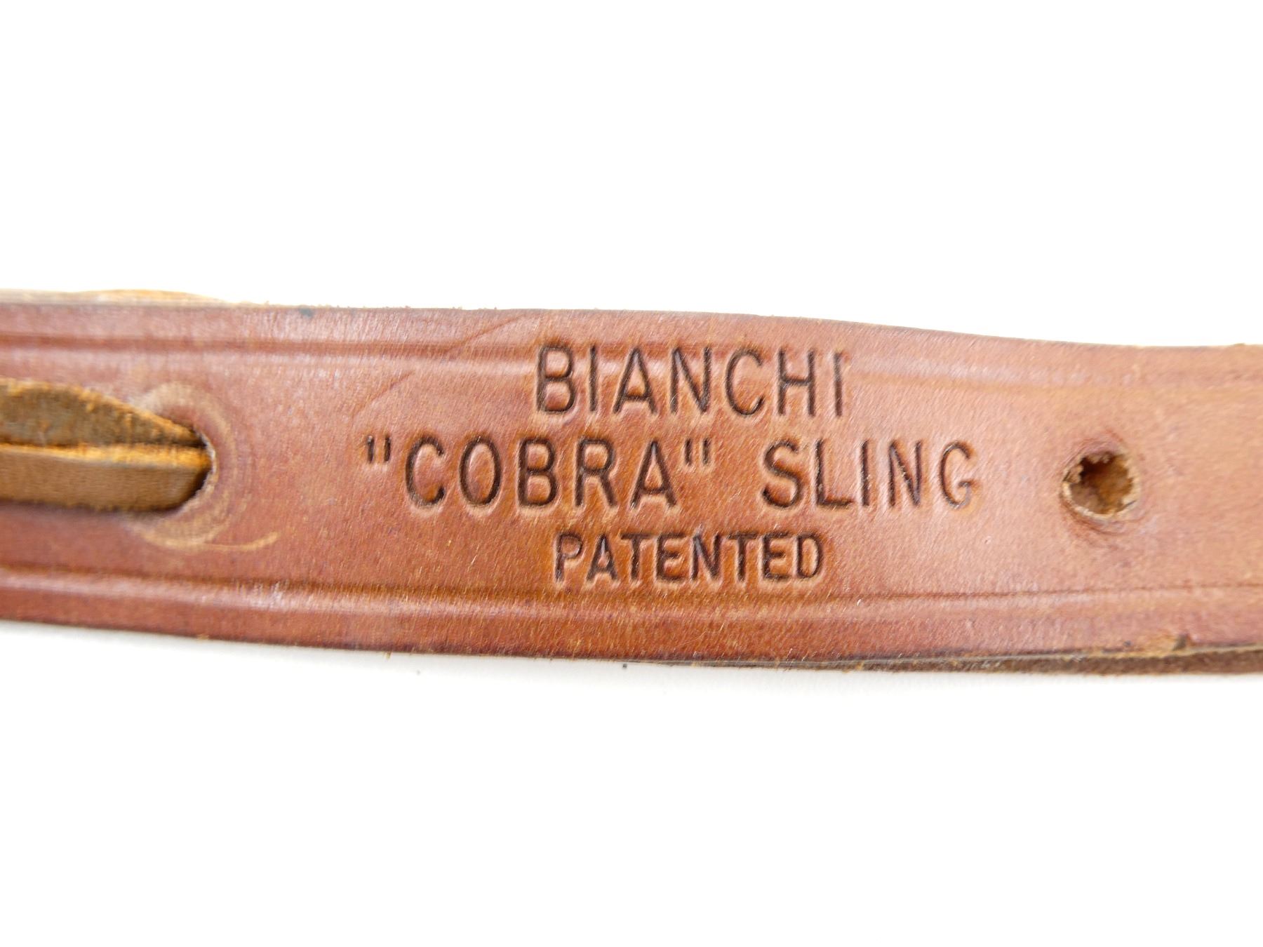 LOT INCLUDES; (1) BIANCHI "COBRA" SLING, BROWN LEATHER WITH SLING SWIVELS, MARKED "BIANCHI", ETC., OVERALL LENGTH APPROX. 31", ADJUSTABLE, (1) HUNTER BROWN LEATHER SLING, MARKED WITH MANUFACTURER'S LOGO, OVERALL LENGTH APPROX. 40.5", ADJUSTABLE, (1) LEVY'S BROWN LEATHER SLING, MARKED WITH MANUFACTURER'S LOGO, OVERALL LENGTH APPROX. 34.5", ETC. & (1) BUCHEIMER BROWN LEATHER HOLSTER, FITS RH, MARKED "A-S55W", ETC. OVERALL LENGTH APPROX. 9.25". SEE PHOTOS.