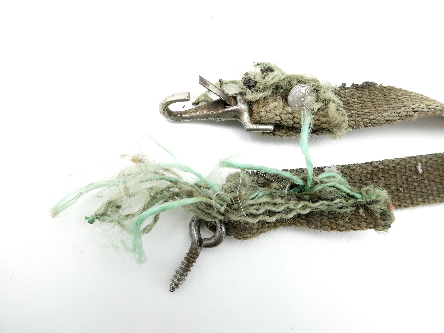 LOT INCLUDES; (1) UNKNOWN BLACK NYLON SLING, UNMARKED, OVERALL LENGTH APPROX. 25.5", ADJUSTABLE, (1) UNKNOWN GREEN NYLON SLING, UNMARKED, OVERALL LENGTH APPROX. 36.5", (1) UNKNOWN BLACK NYLON SLING, UNMARKED, OVERALL LENGTH APPROX. 40.5", ADJUSTABLE, (1) UNKNOWN BLACK NYLON SLING, UNMARKED, OVERALL LENGTH APPROX. 22", ADJUSTABLE, (1) UNKNOWN BLACK NYLON SLING, UNMARKED, OVERALL LENGTH APPROX. 40", ADJUSTABLE & (1) UNKNOWN GREEN NYLON BELT, UNMARKED, OVERALL LENGTH APPROX. 53", ADJUSTABLE, ETC. SEE PHOTOS.