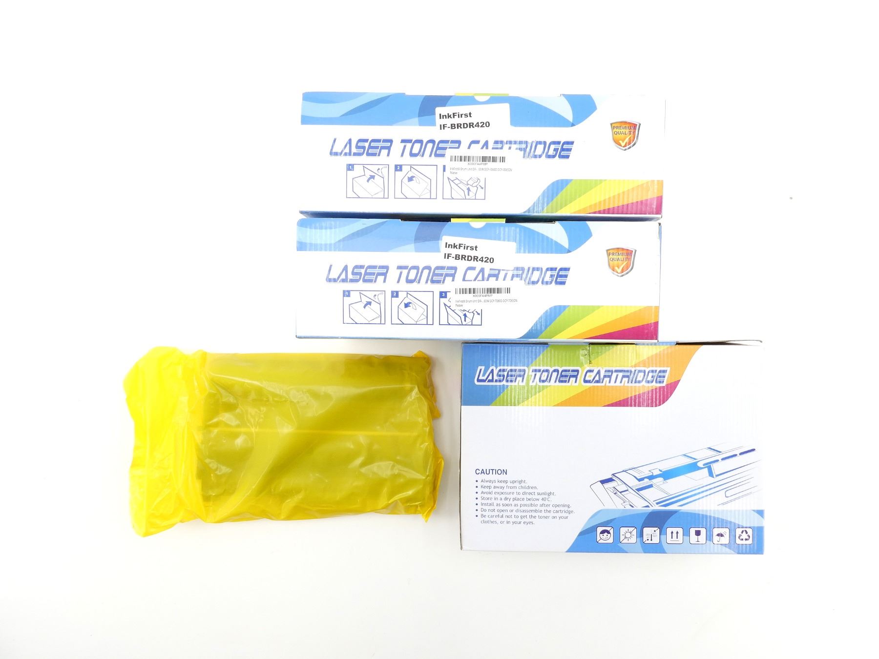 LOT INCLUDES; (3) INKFIRST IF-BRDR420 LASER TONER CARTRIDGE DRUMS, NEW OLD STOCK, IN ORIGINAL PACKAGING. SEE PHOTOS.