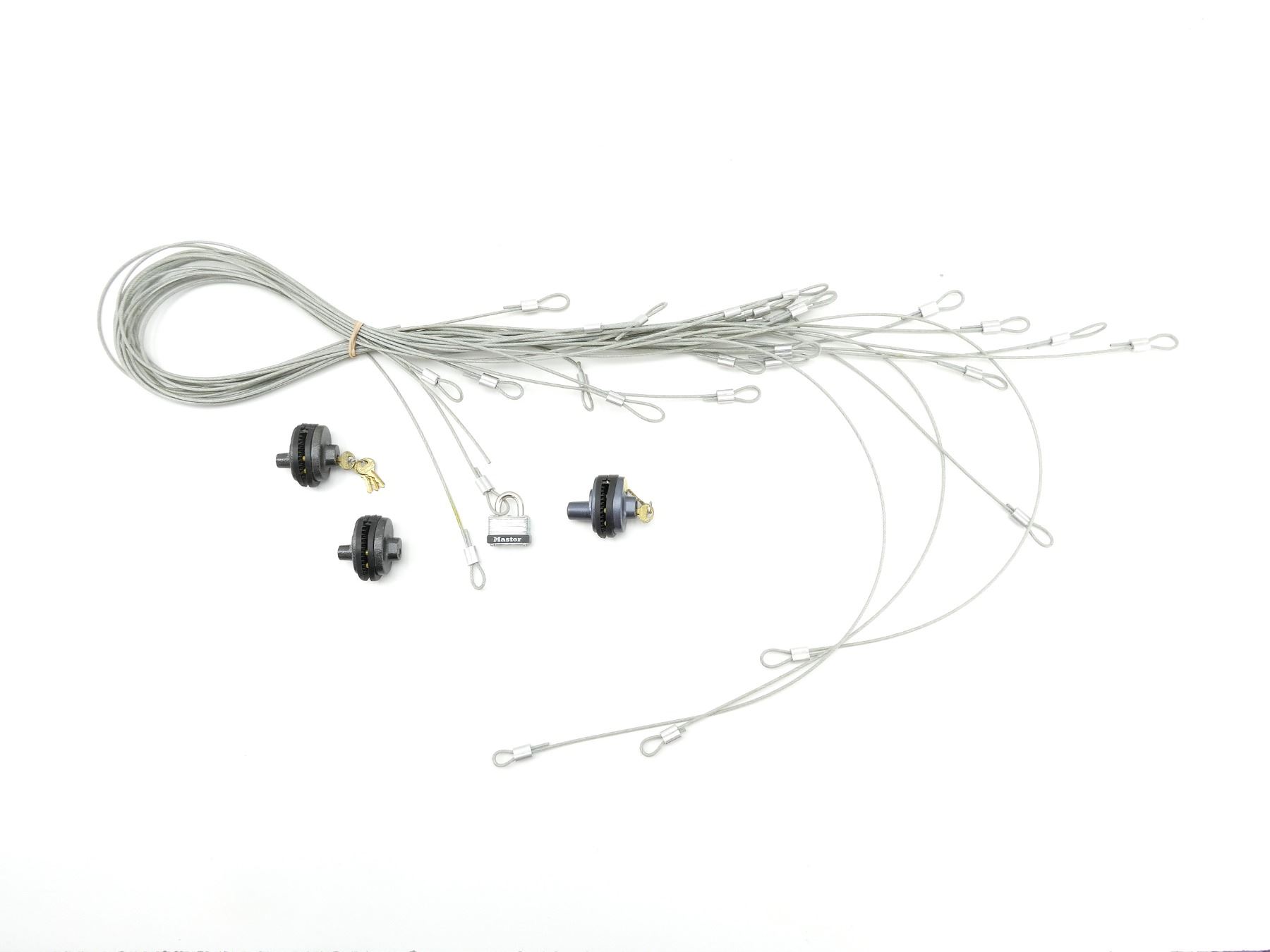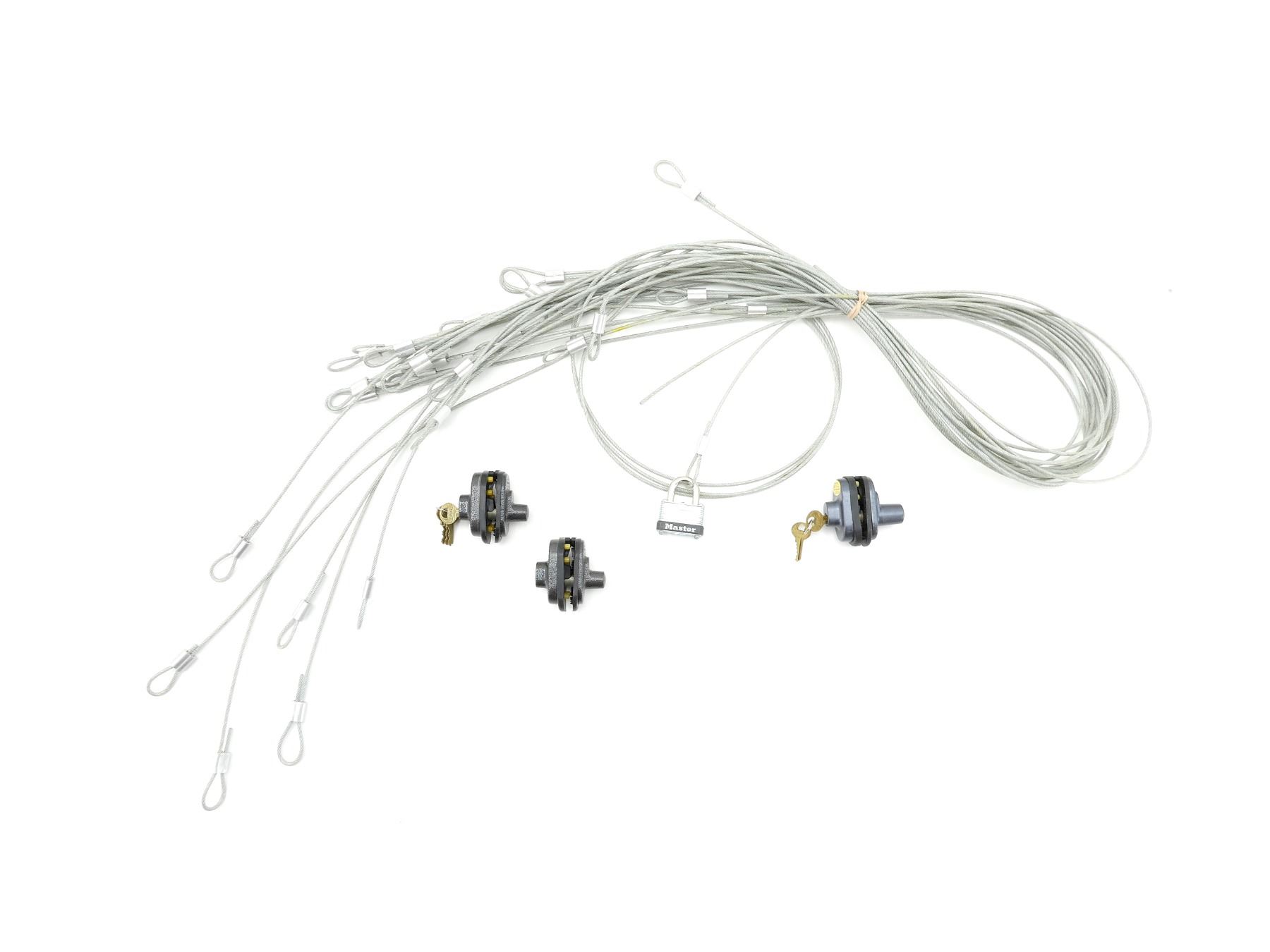 MASTER KEYED TRIGGER LOCK AND CRIMPED GUN LOCKING CABLES LOT
