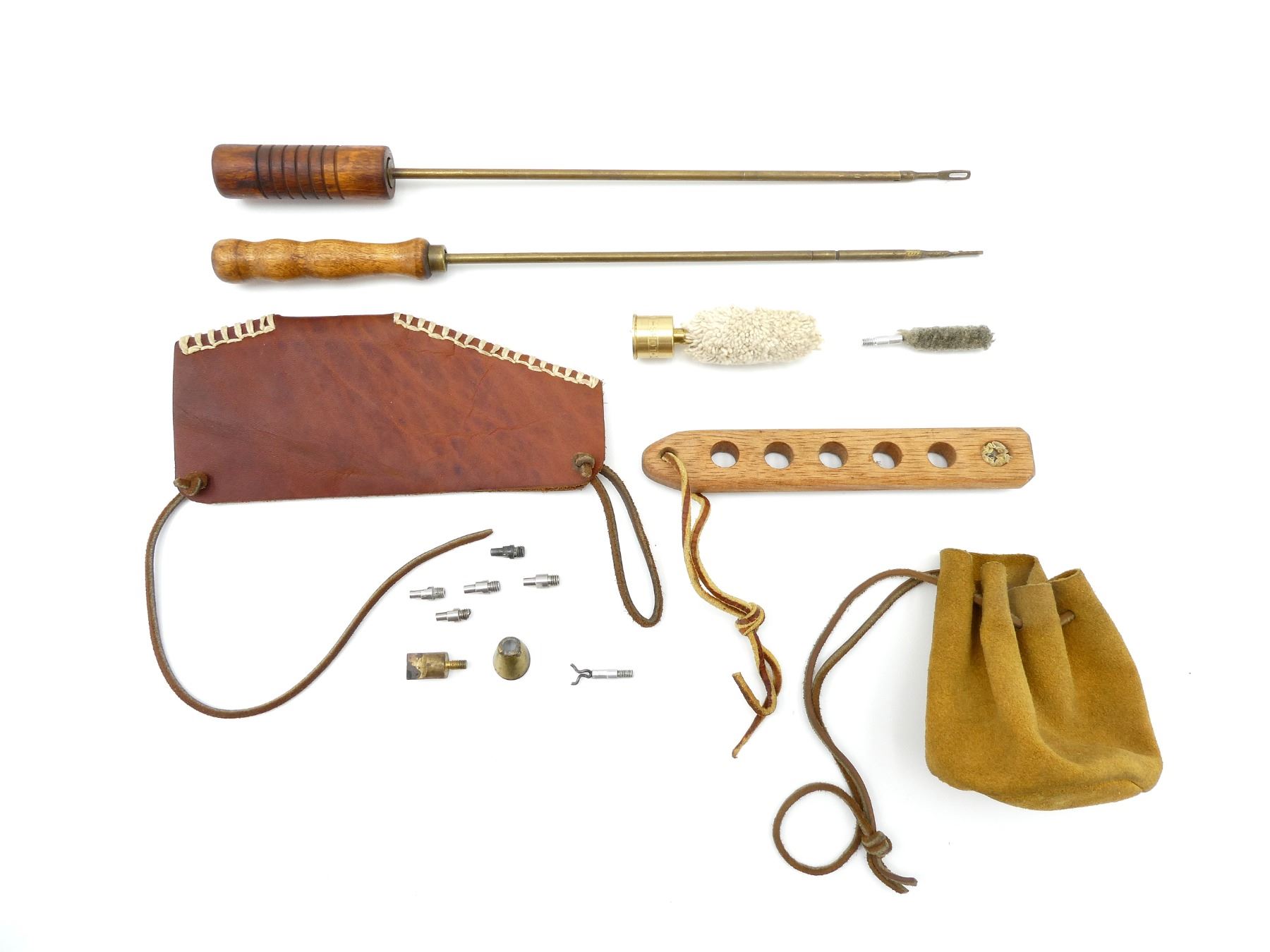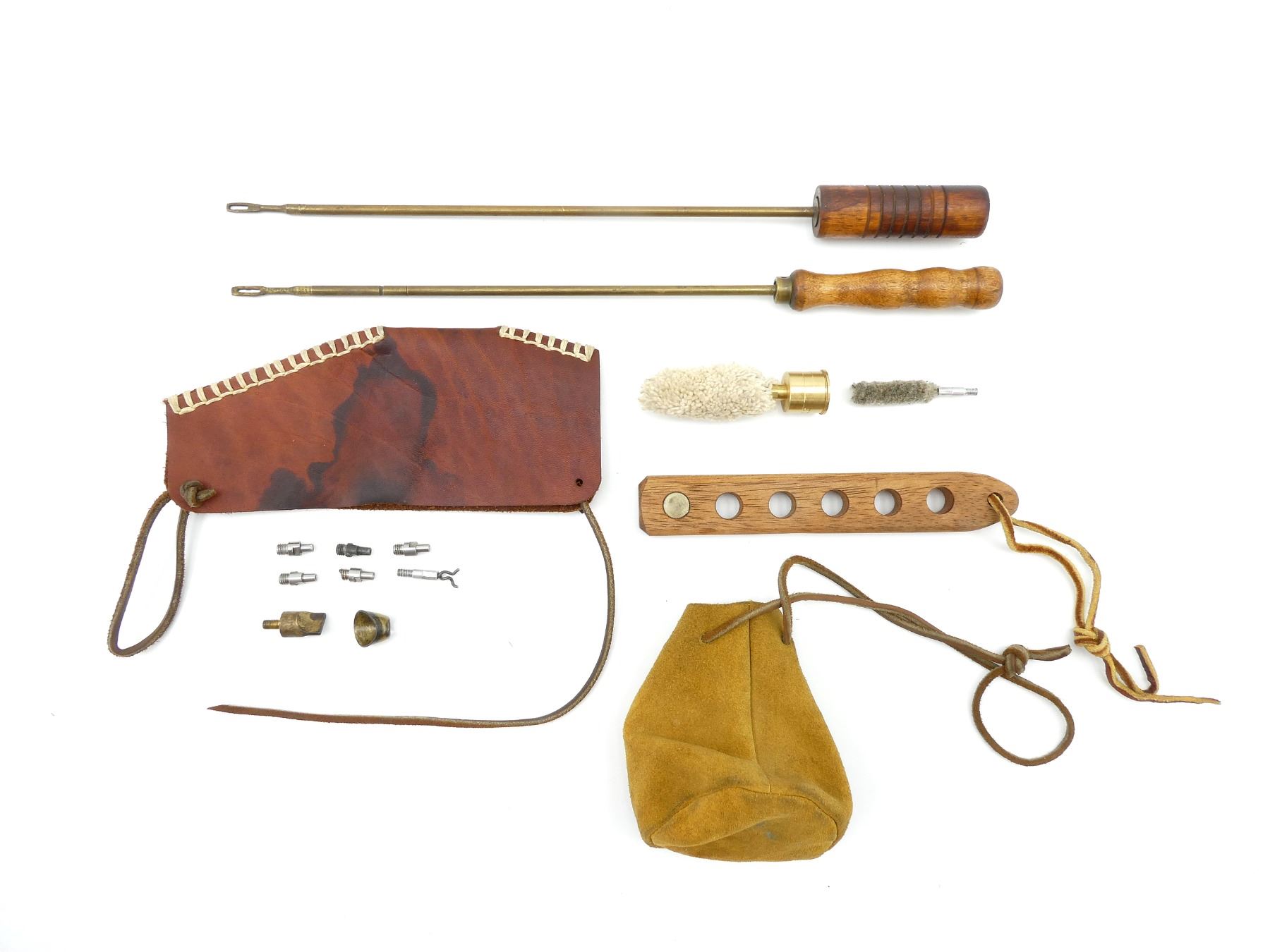 LOT INCLUDES; (2) CLEANING RODS, (2) CLEANING MOPS, (1) LEAD SHOT POUCH, (1) LEATHER BUTT STOCK COVER, ETC. SEE PHOTOS.