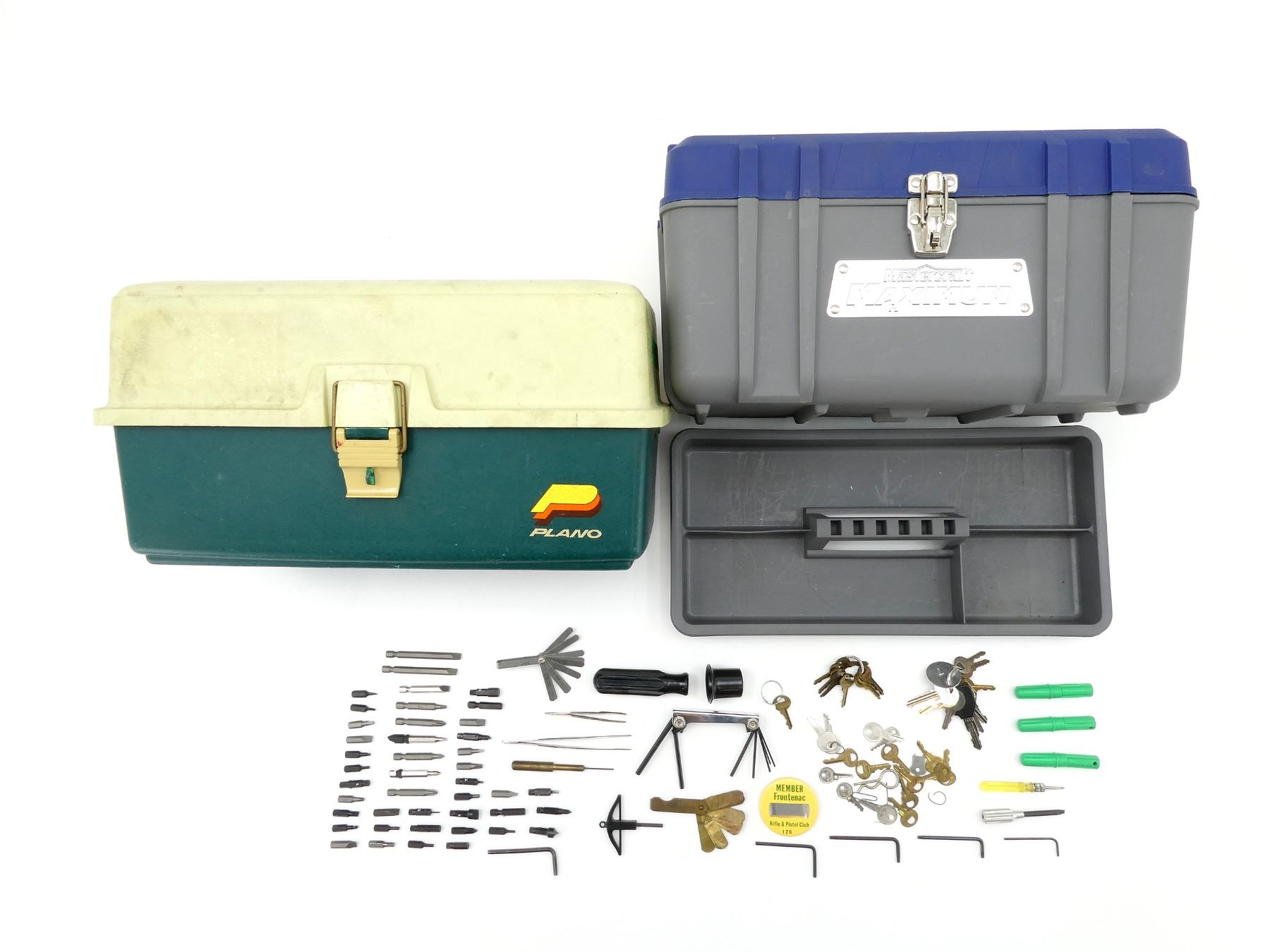 LOT INCLUDES; (1) MASTERCRAFT MAXIMUM TOOL BOX, POLYMER CONSTRUCTION, WITH LIFT-OUT TRAY & ASSORTED TOOLS ETC. INSIDE, LATCH CLOSURE WITH CARRY HANDLE, OVERALL LENGTH APPROX. 16" X 8" X 8.5" & (1) PLANO FISHING TACKLE BOX, POLYMER CONSTRUCTION, WITH PULL-OUT TRAY, LATCH CLOSURE WITH CARRY HANDLE, OVERALL LENGTH APPROX. 16.5" X 8.5" X 9". SEE PHOTOS.
