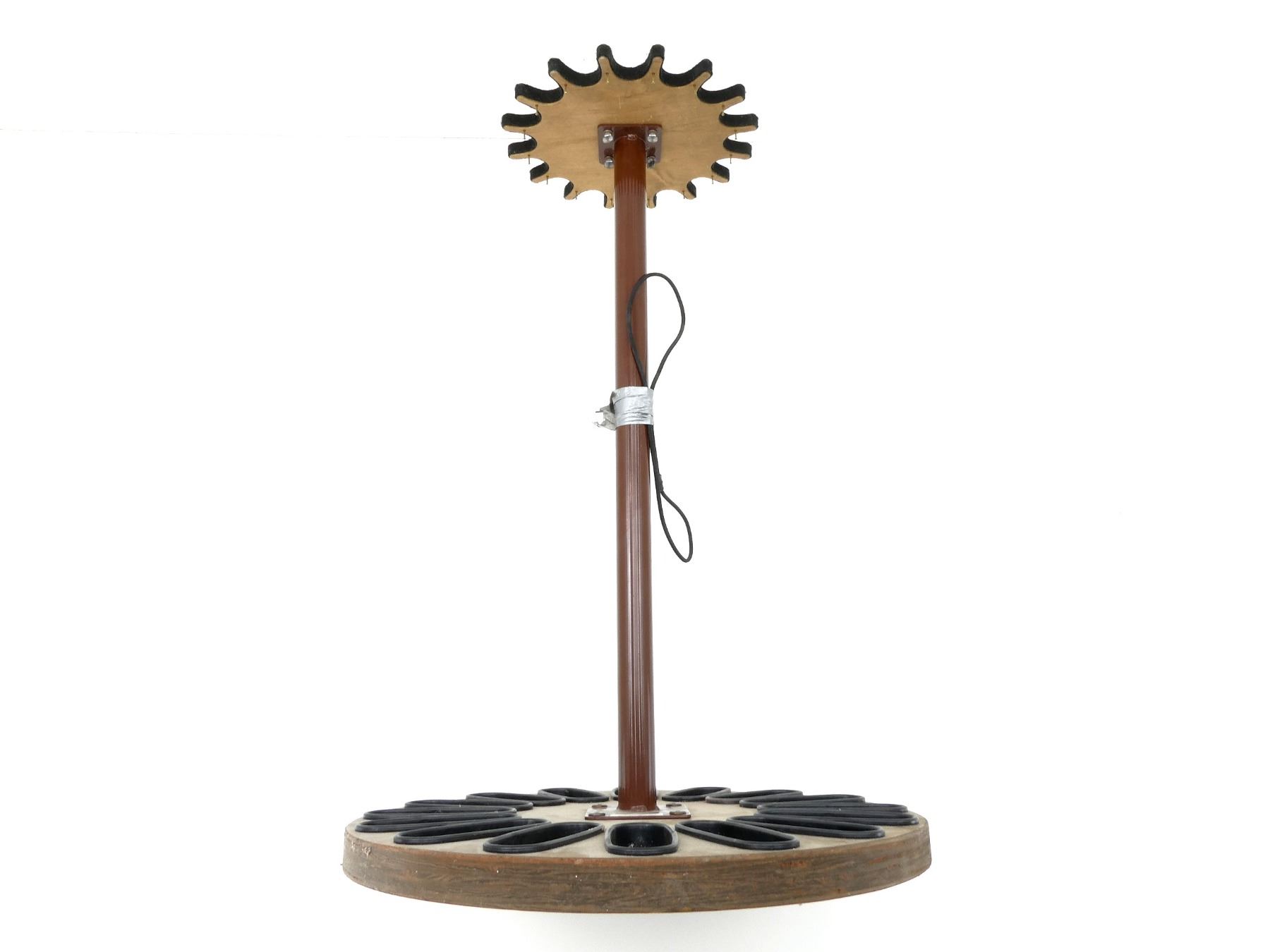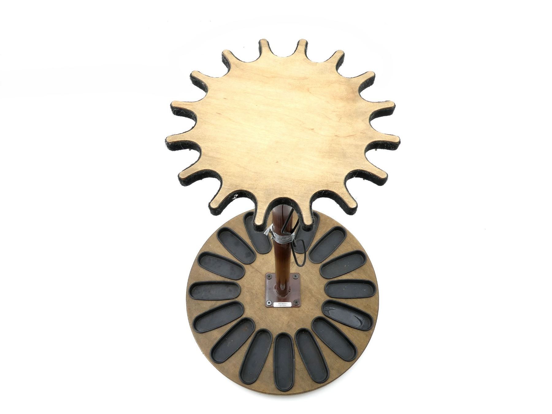 (1) 16-RIFLE FLOOR STAND GUN RACK, WOOD / METAL / POLYMER CONSTRUCTION, APPROX. 22" DIA. & OVERALL HEIGHT APPROX. 32.25". SEE PHOTOS. *MAY REQUIRE ADDITIONAL SHIPPING CHARGES*
