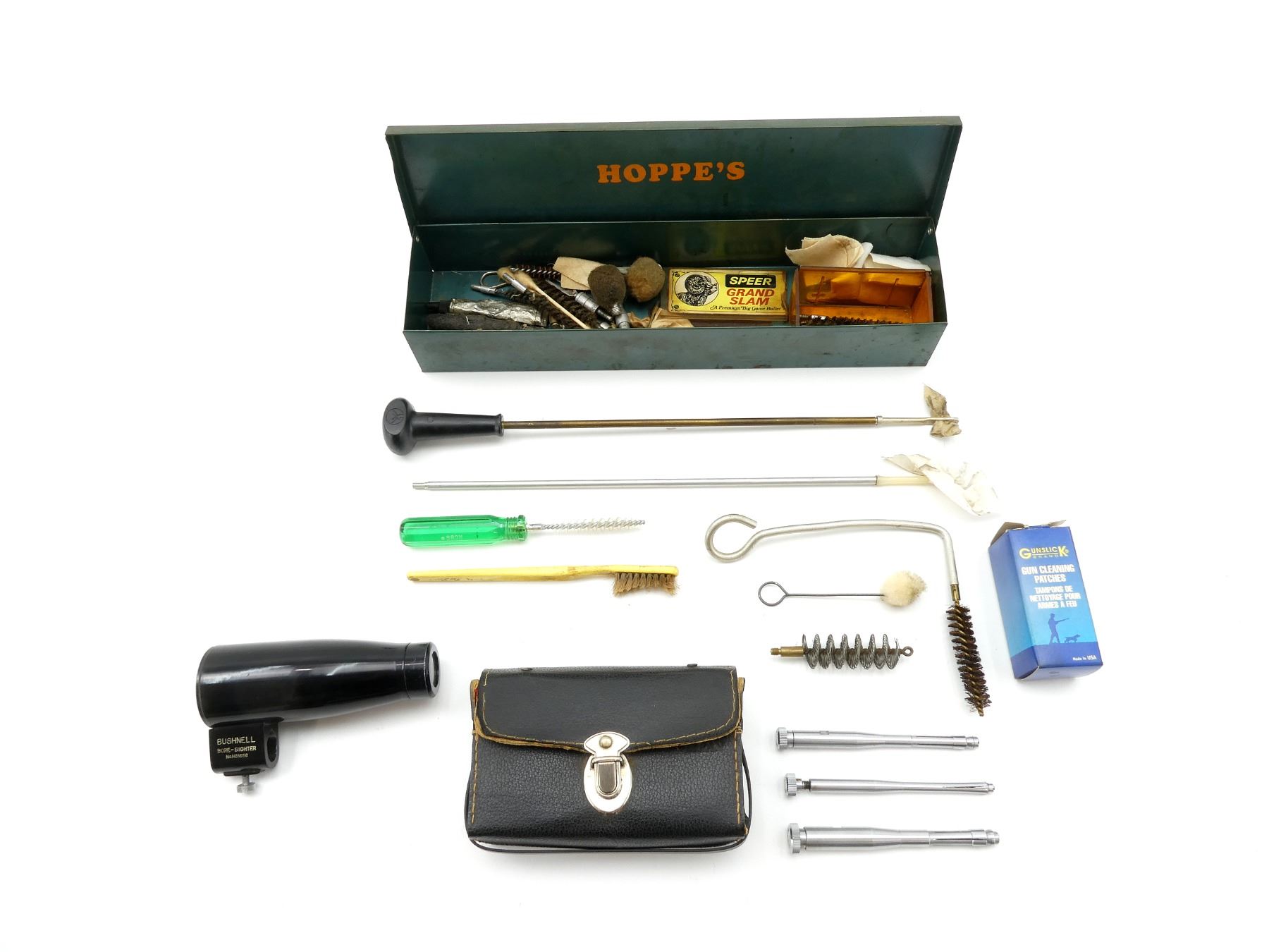 Lot 40152 BUSHNELL BORE SIGHTER AND ASSORTED GUN CLEANING ACCESSORIES